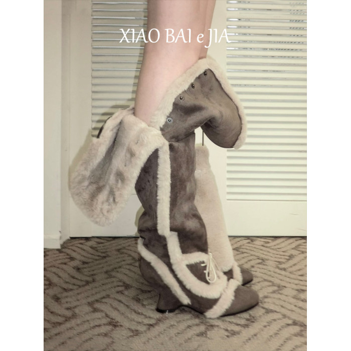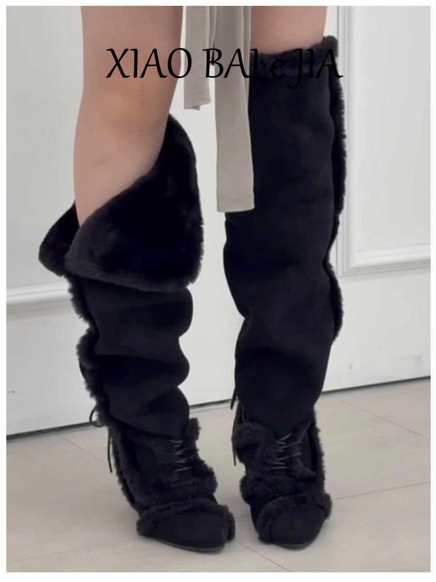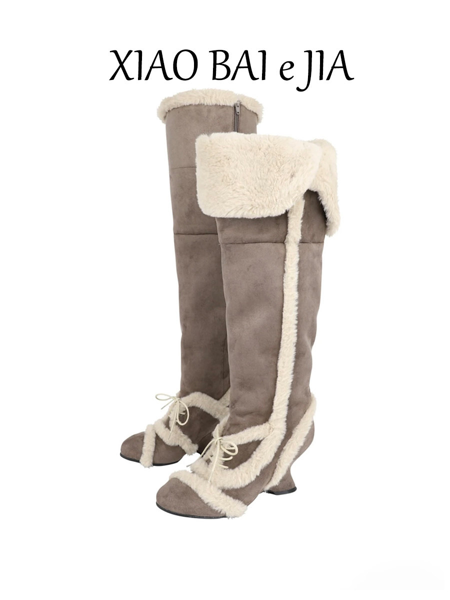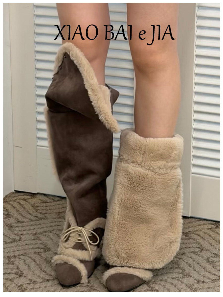 韓國小衆新品!加厚羊皮毛一體雪地靴女2026冬季新款坡跟保暖棉靴