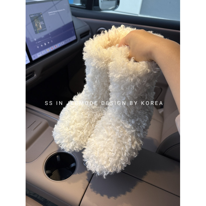 小池在首爾冬季新款加厚保暖厚底舒適卷卷毛絨雪地靴可愛毛絨棉靴
