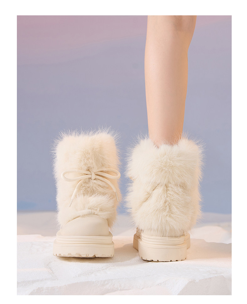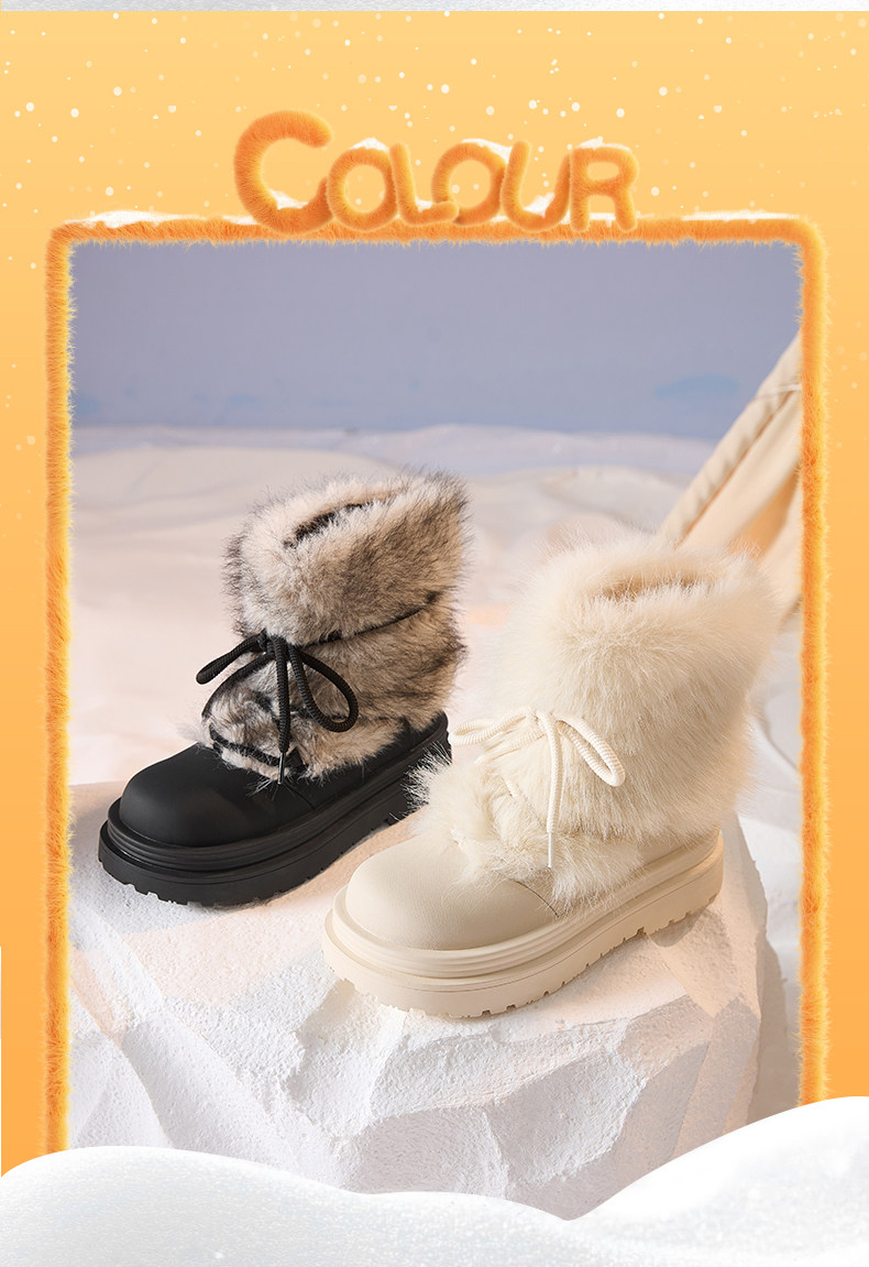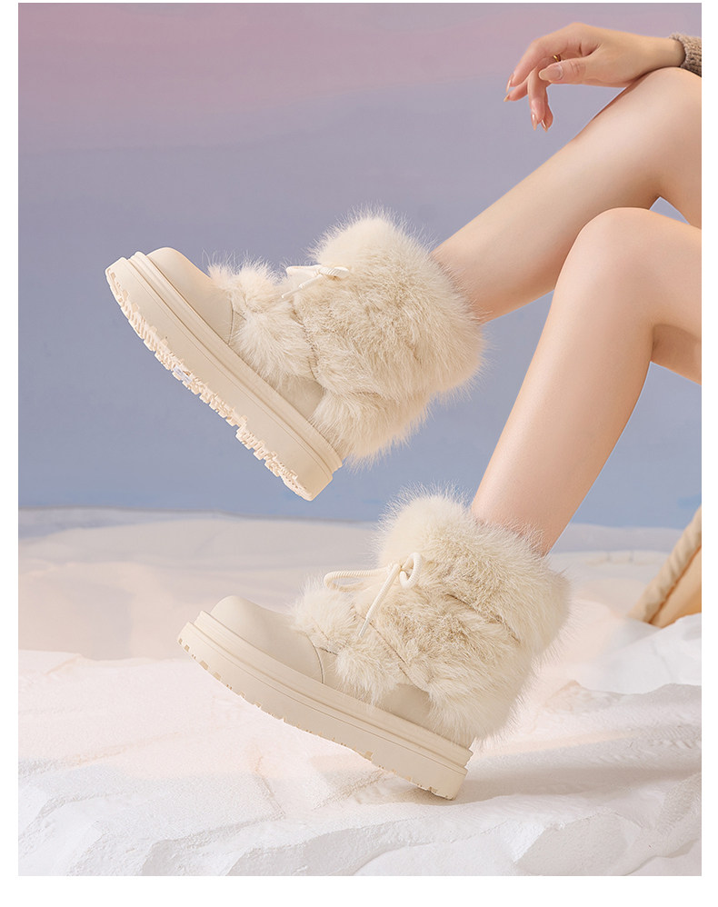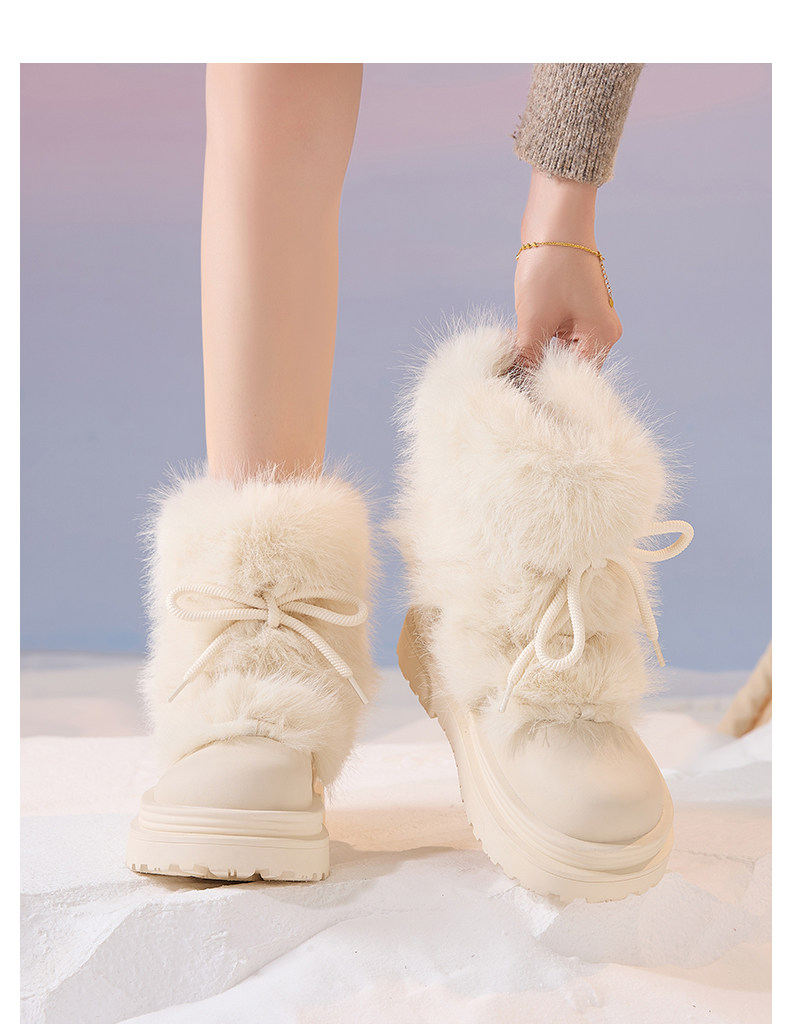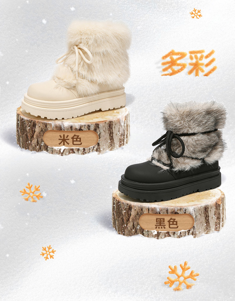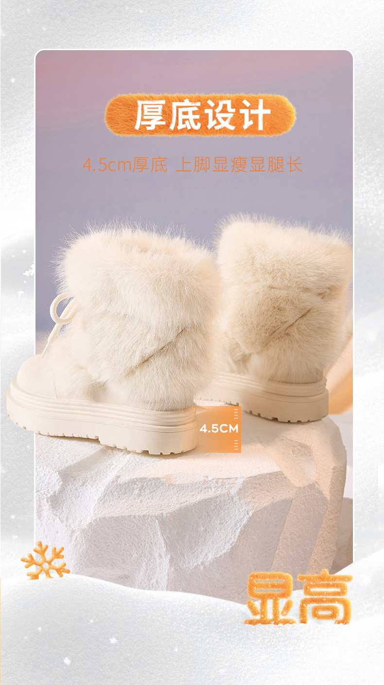 厚底雪地靴女2026新款冬季加絨保暖毛毛棉鞋小個子增高白色短靴子
