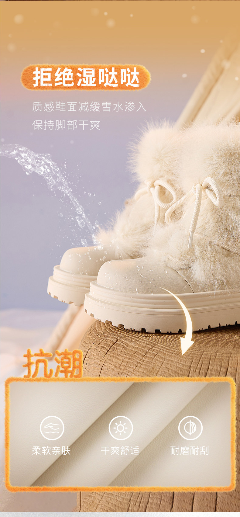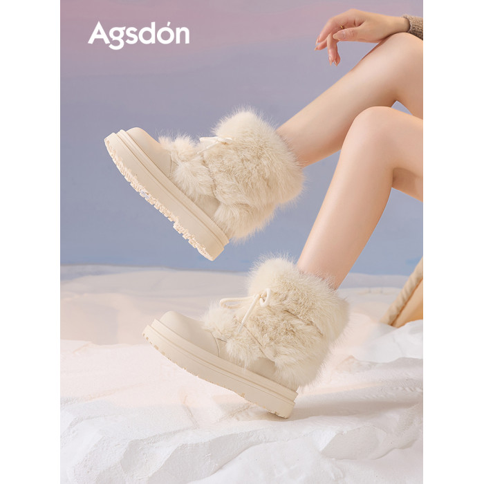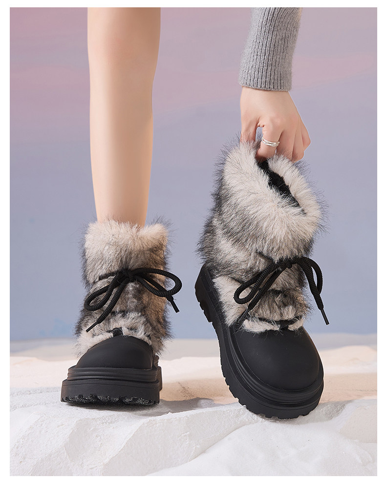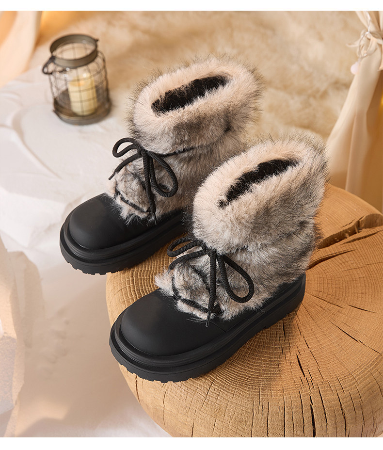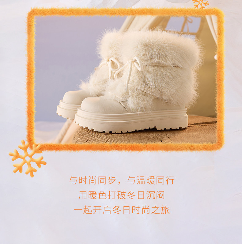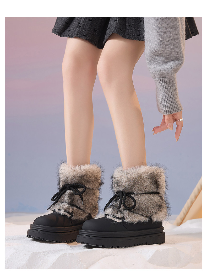 厚底雪地靴女2026新款冬季加絨保暖毛毛棉鞋小個子增高白色短靴子