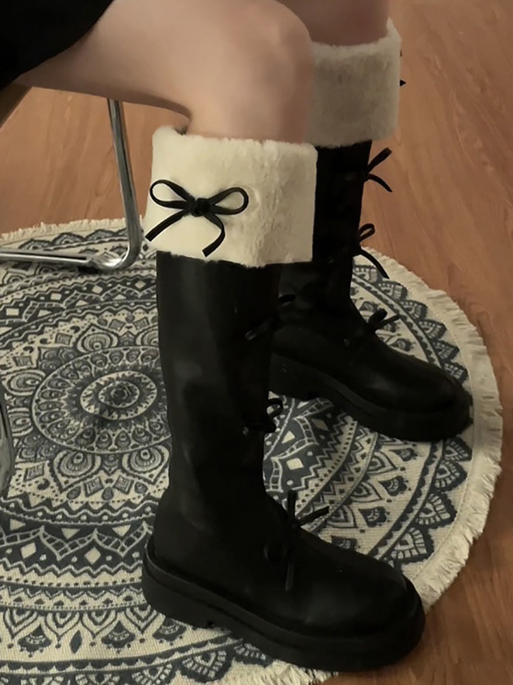 花小姐長筒靴女2026冬季新款厚底保暖加絨加厚雪地靴高筒騎士靴潮
