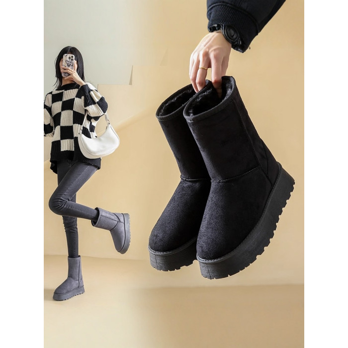 厚底雪地靴女款冬季加絨加厚東北大棉鞋防滑防水中筒休閒軟底短靴