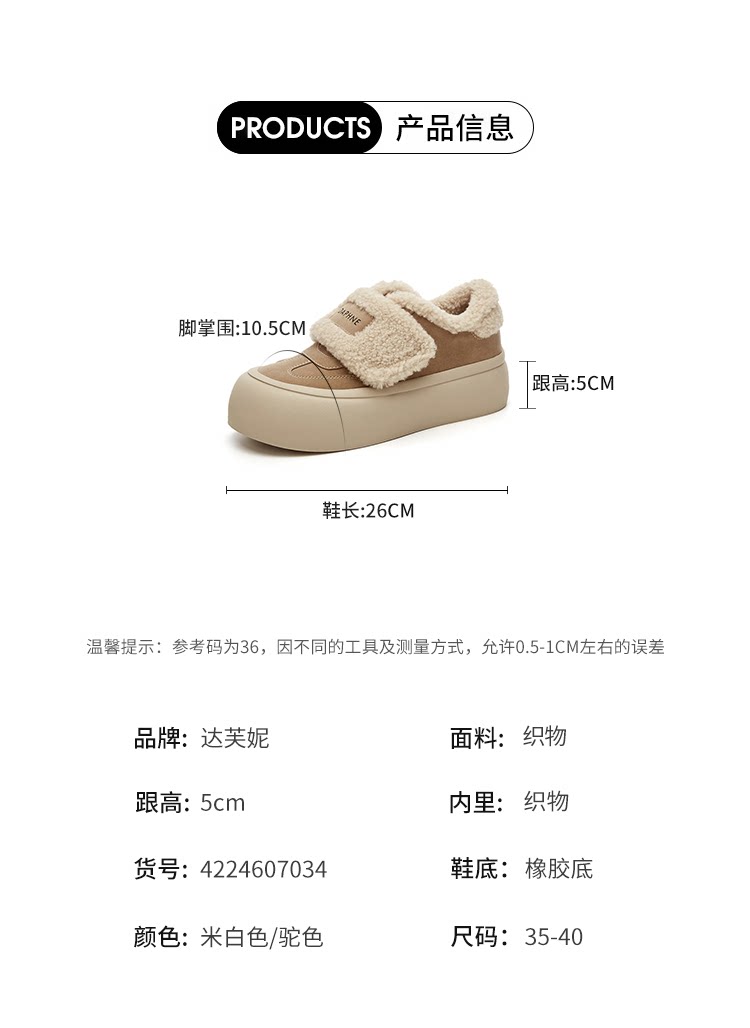 達芙妮加絨厚底雪地靴女2026冬季新款爆款保暖棉鞋魔術貼毛毛女鞋