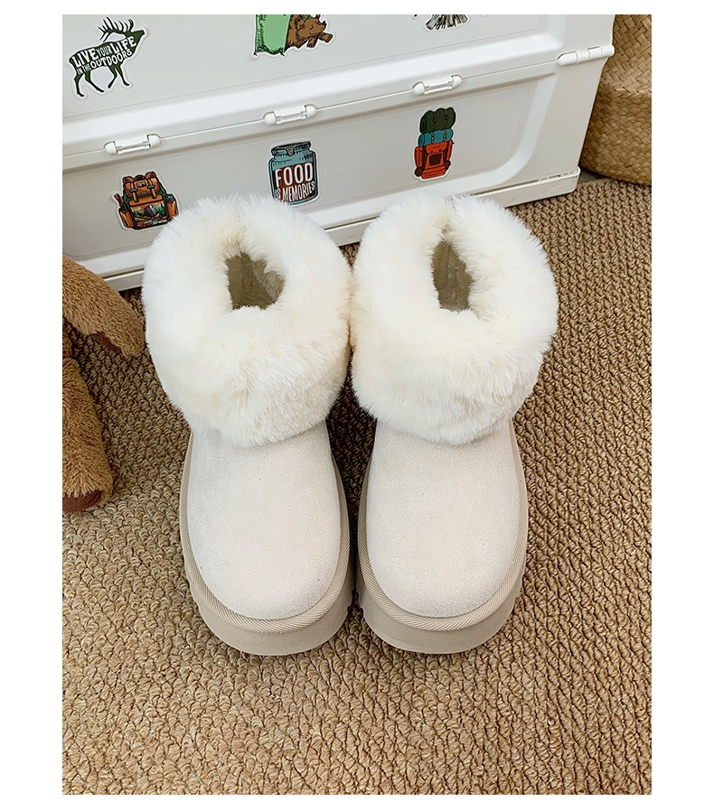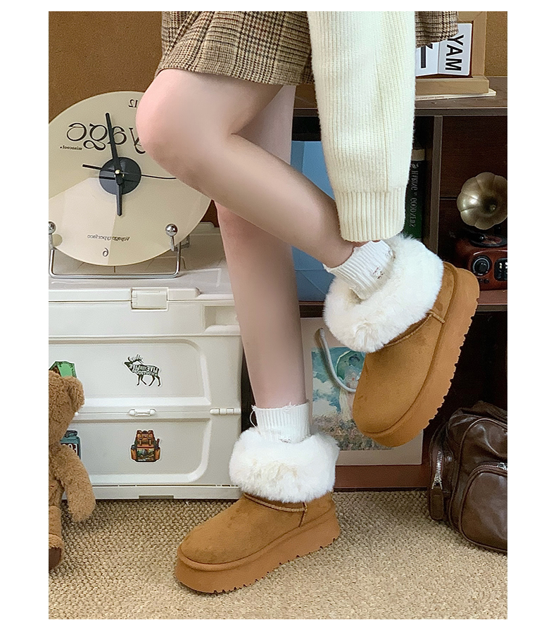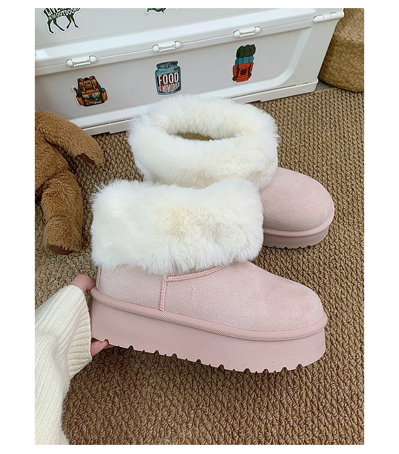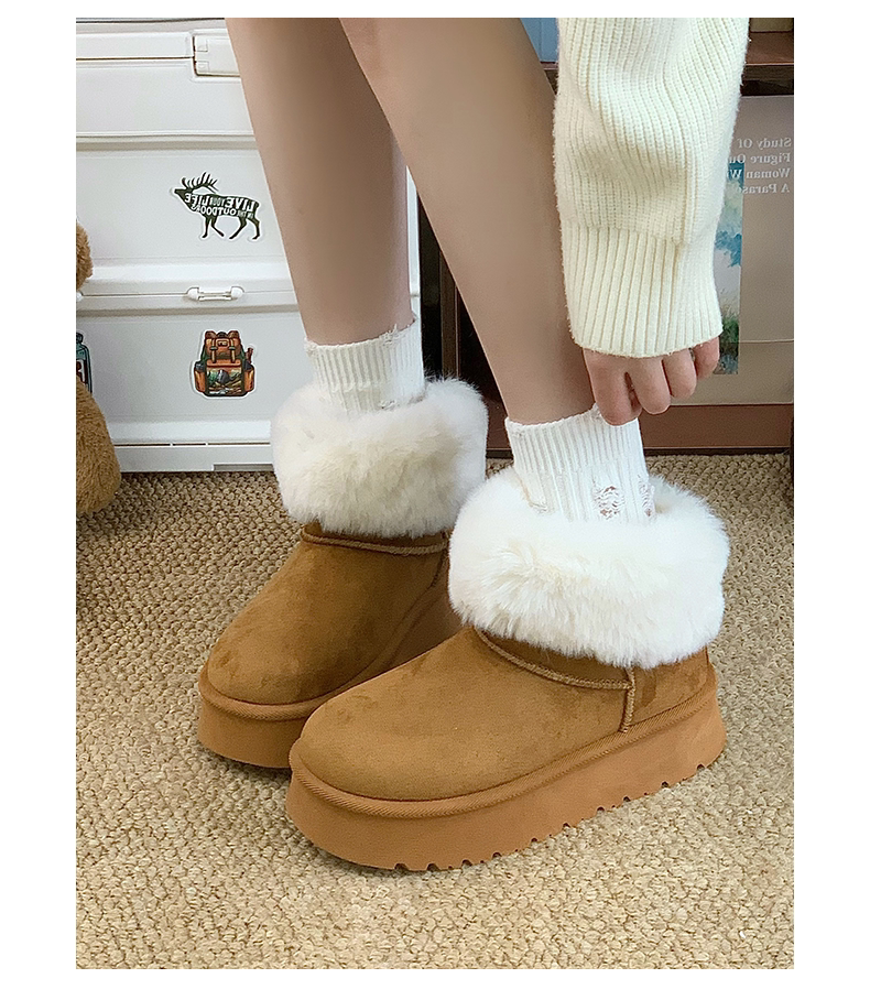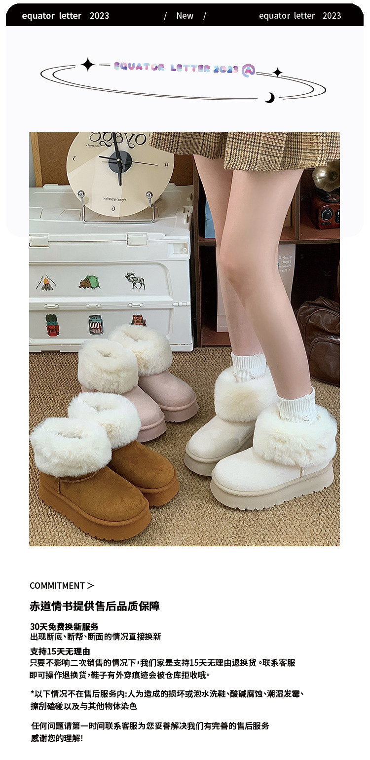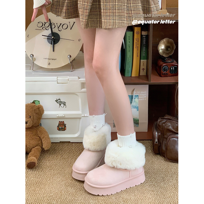 赤道情書厚底雪地靴女2025冬季新款百搭皮毛一體加絨短筒保暖棉鞋