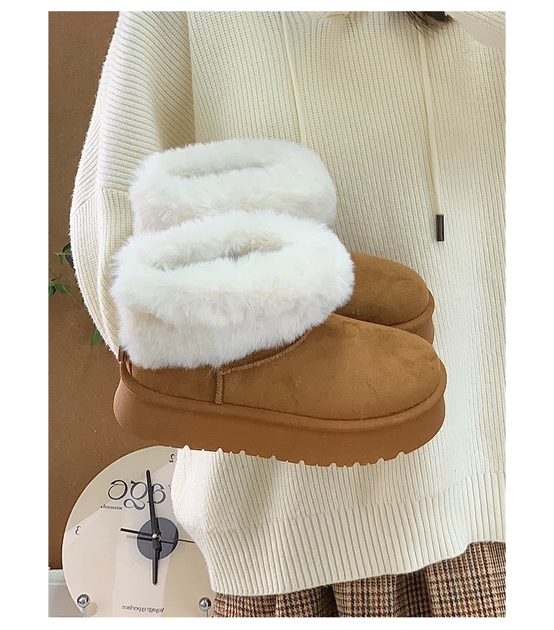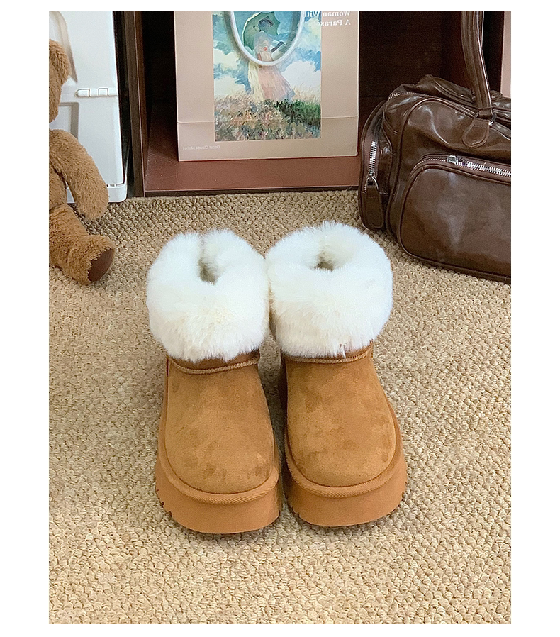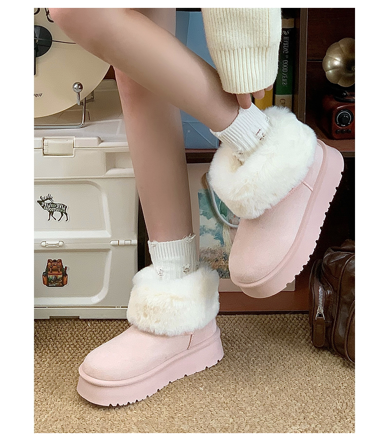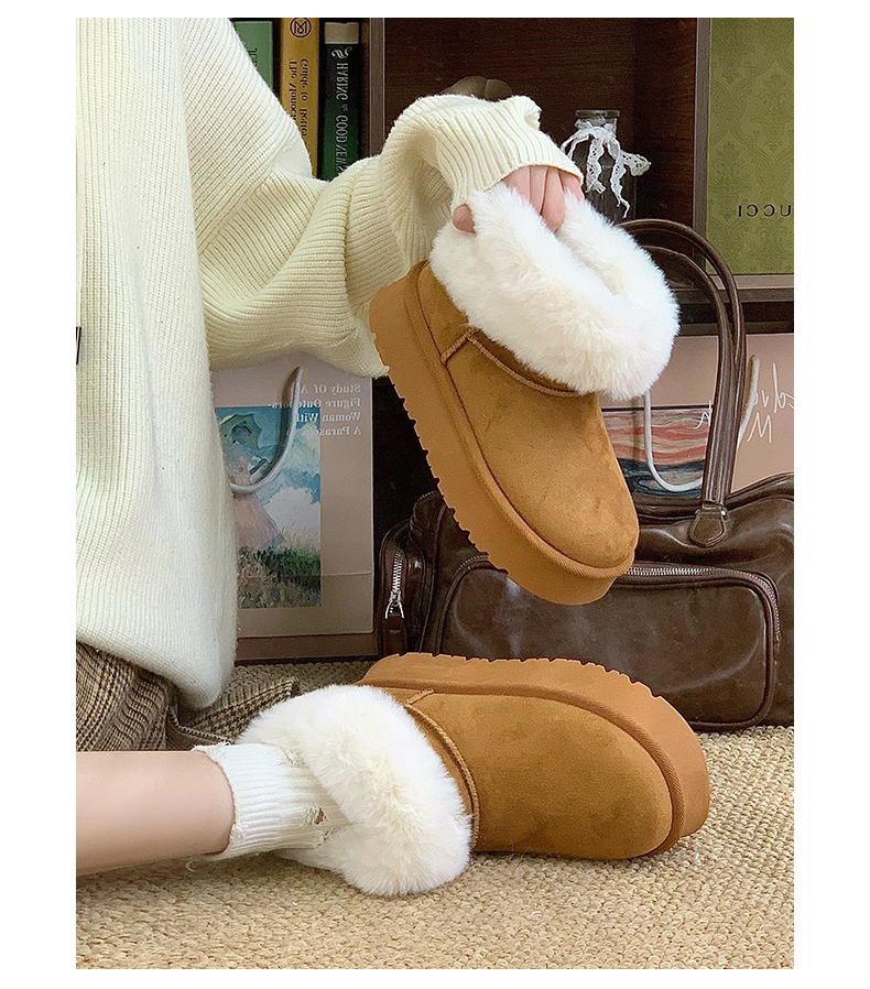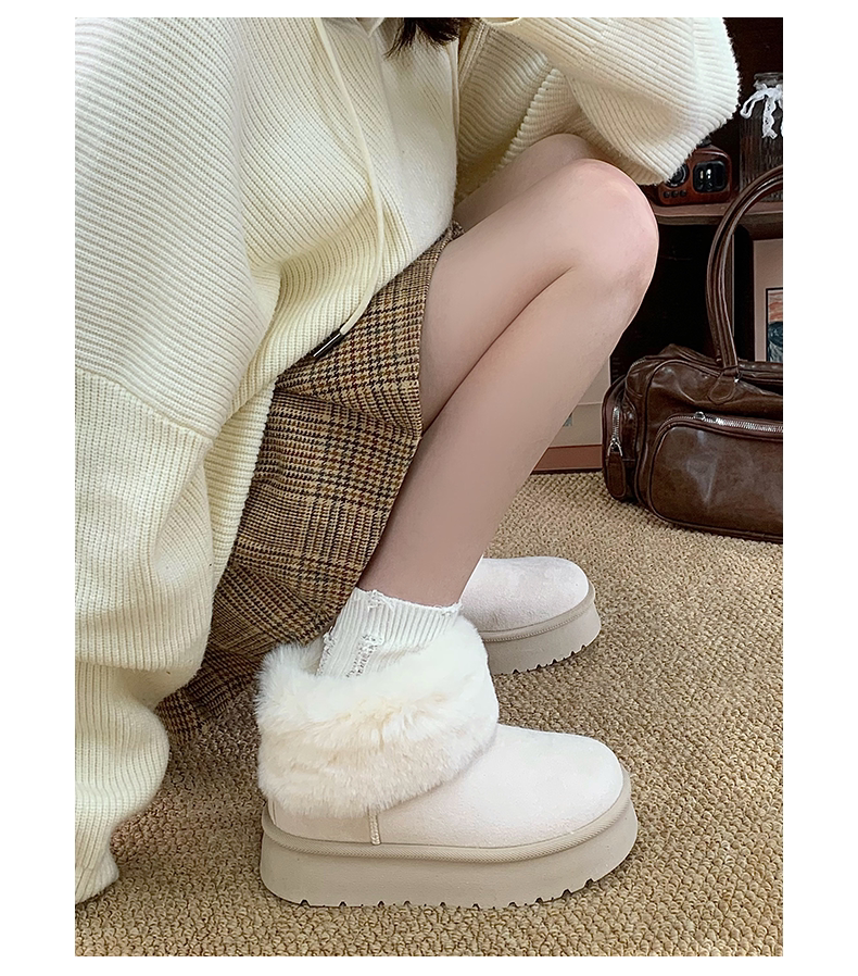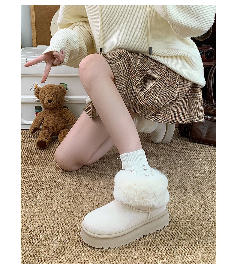 赤道情書厚底雪地靴女2025冬季新款百搭皮毛一體加絨短筒保暖棉鞋