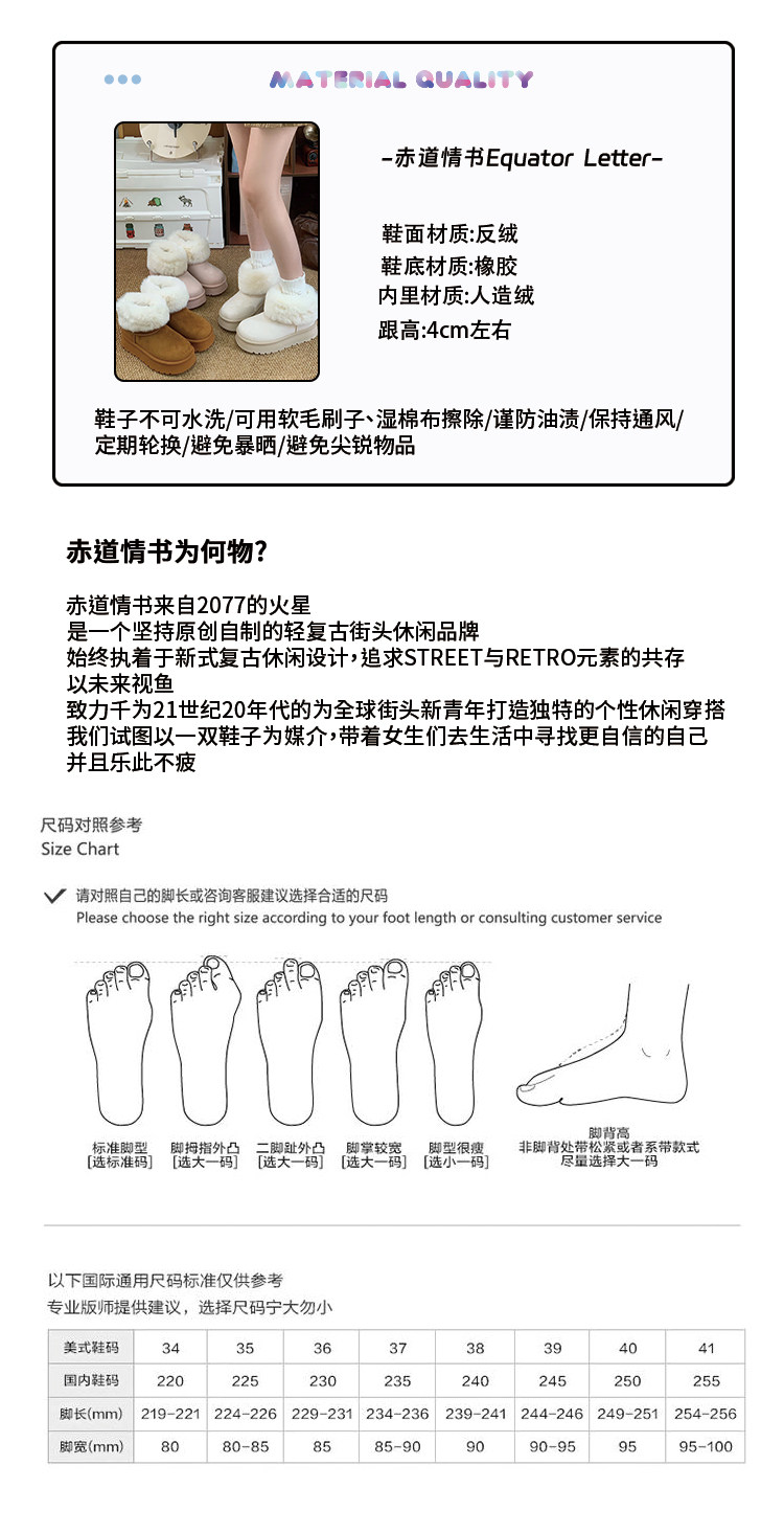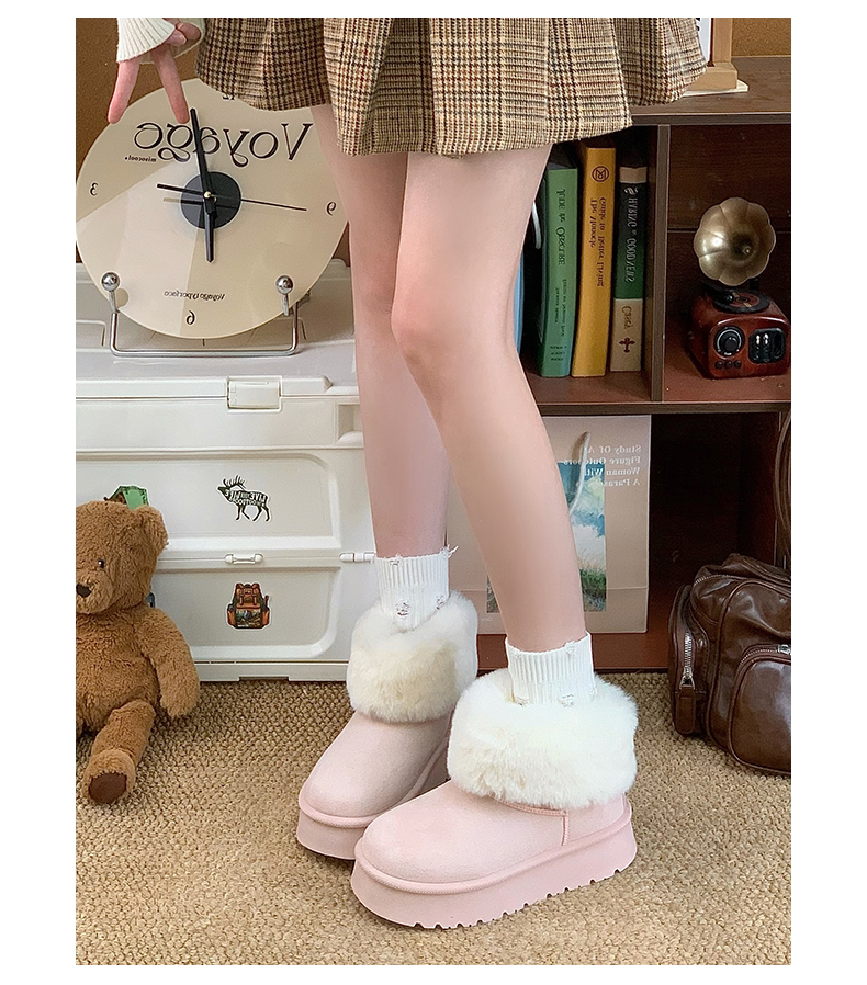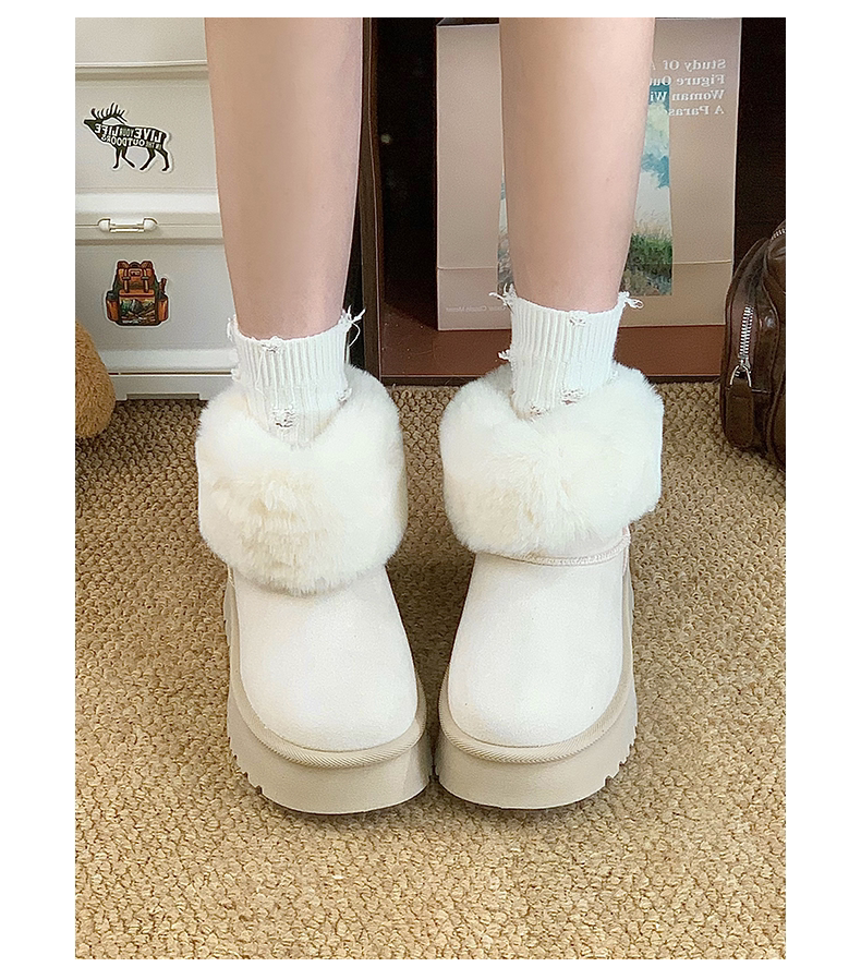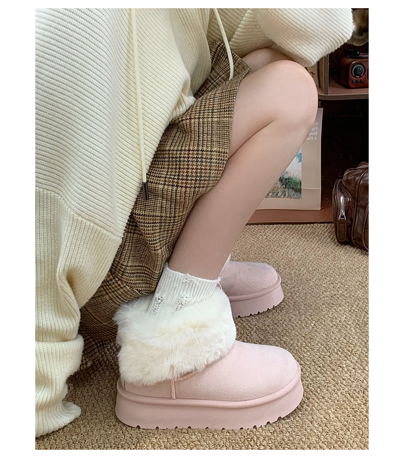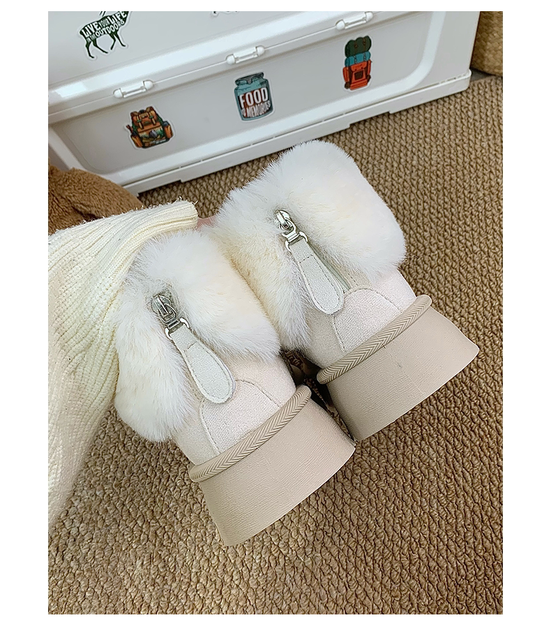 赤道情書厚底雪地靴女2025冬季新款百搭皮毛一體加絨短筒保暖棉鞋