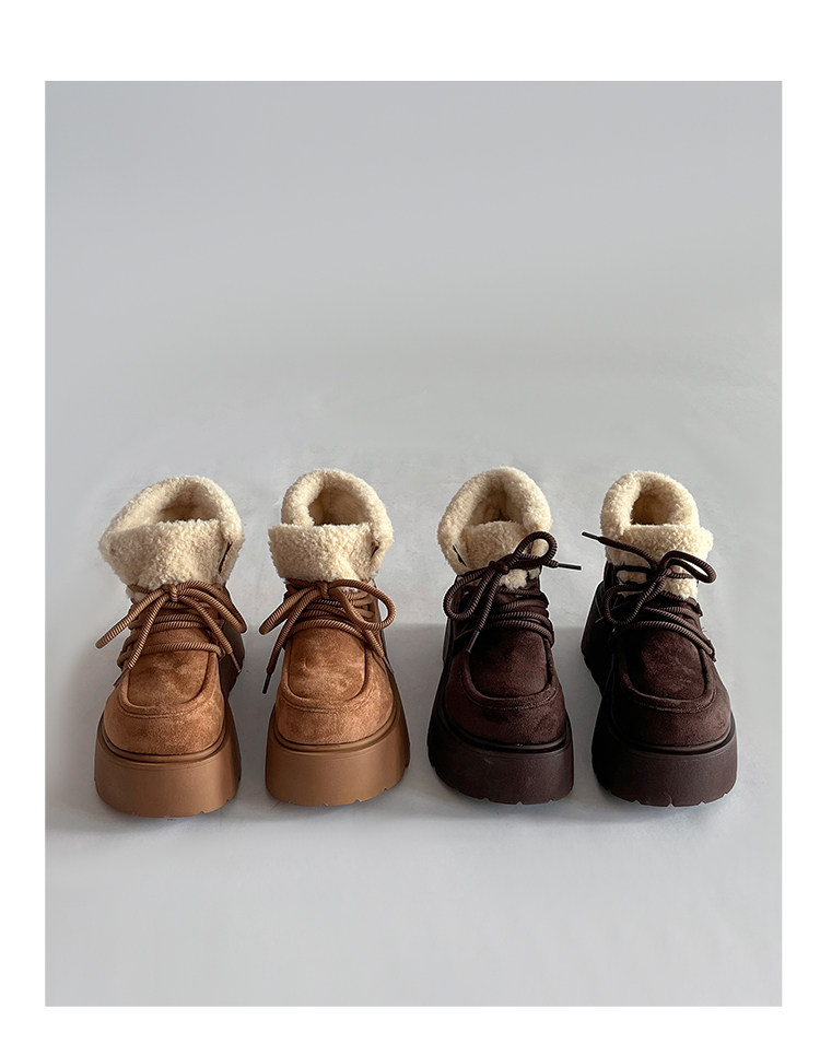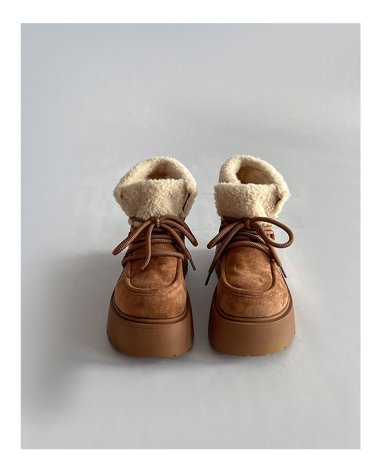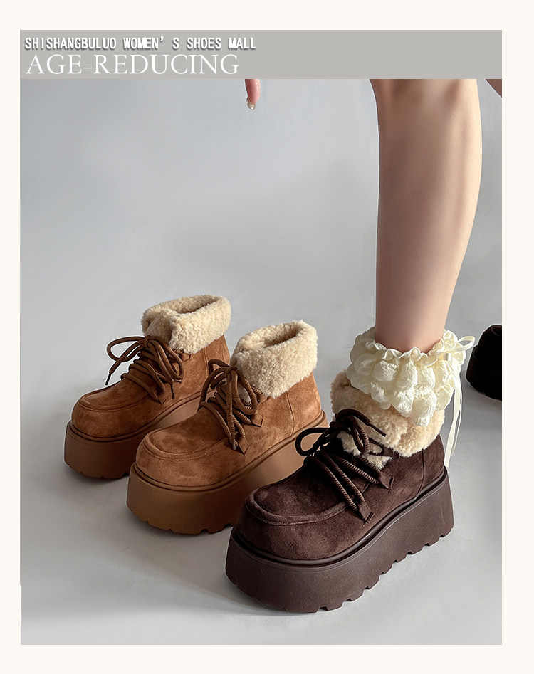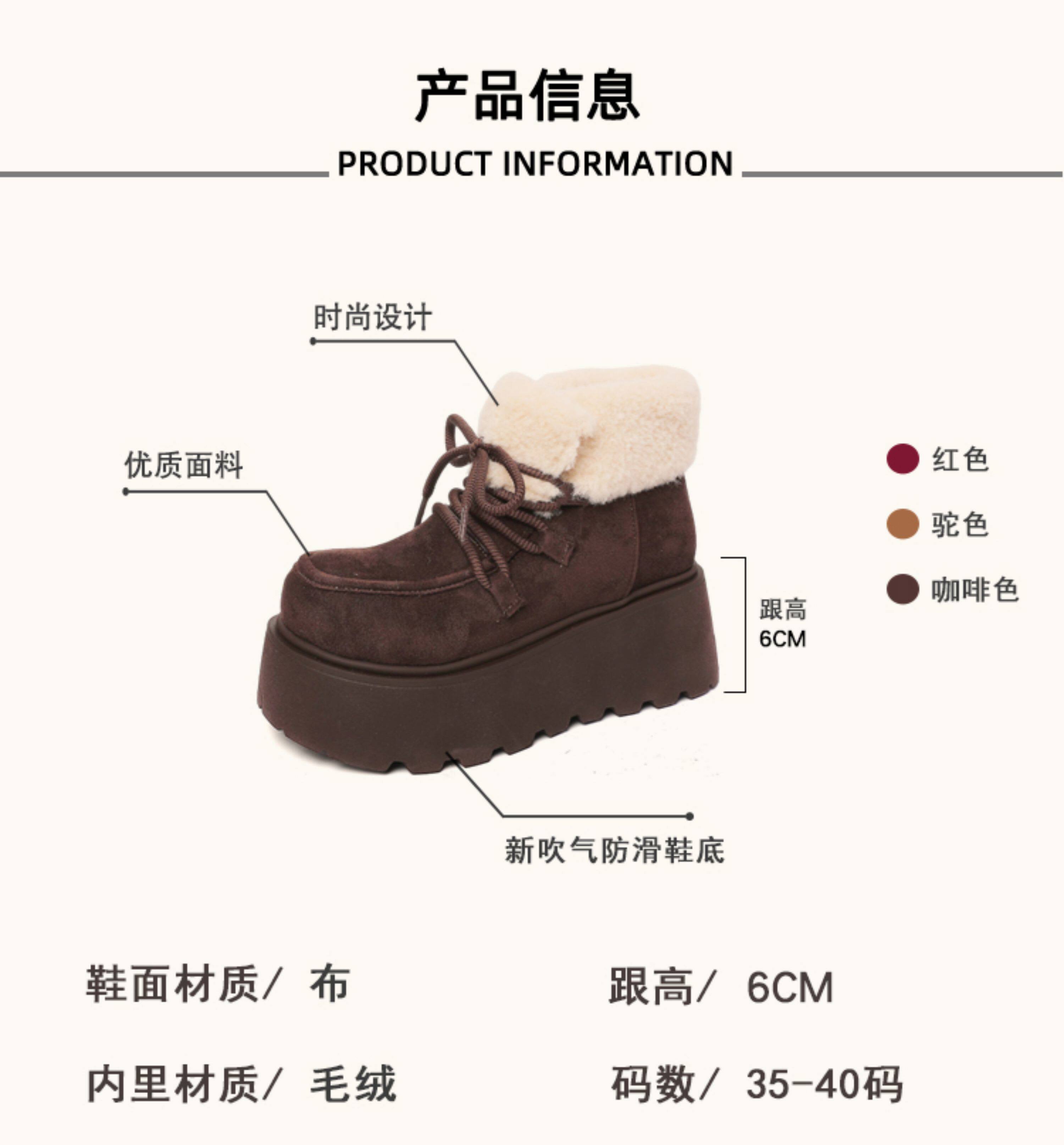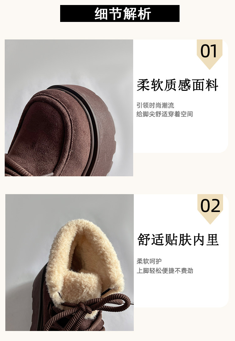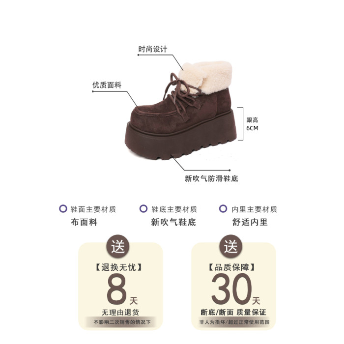 時尚部落磨砂復古短筒雪地靴女2025年秋冬新款加絨毛毛厚底大棉鞋