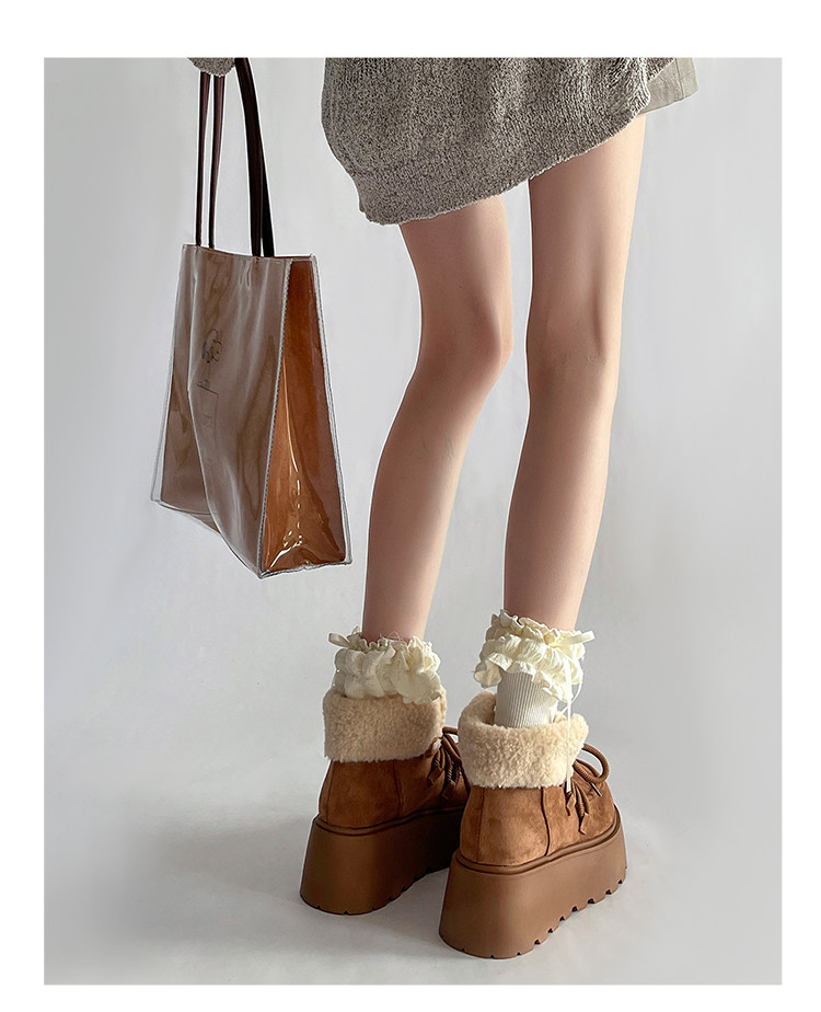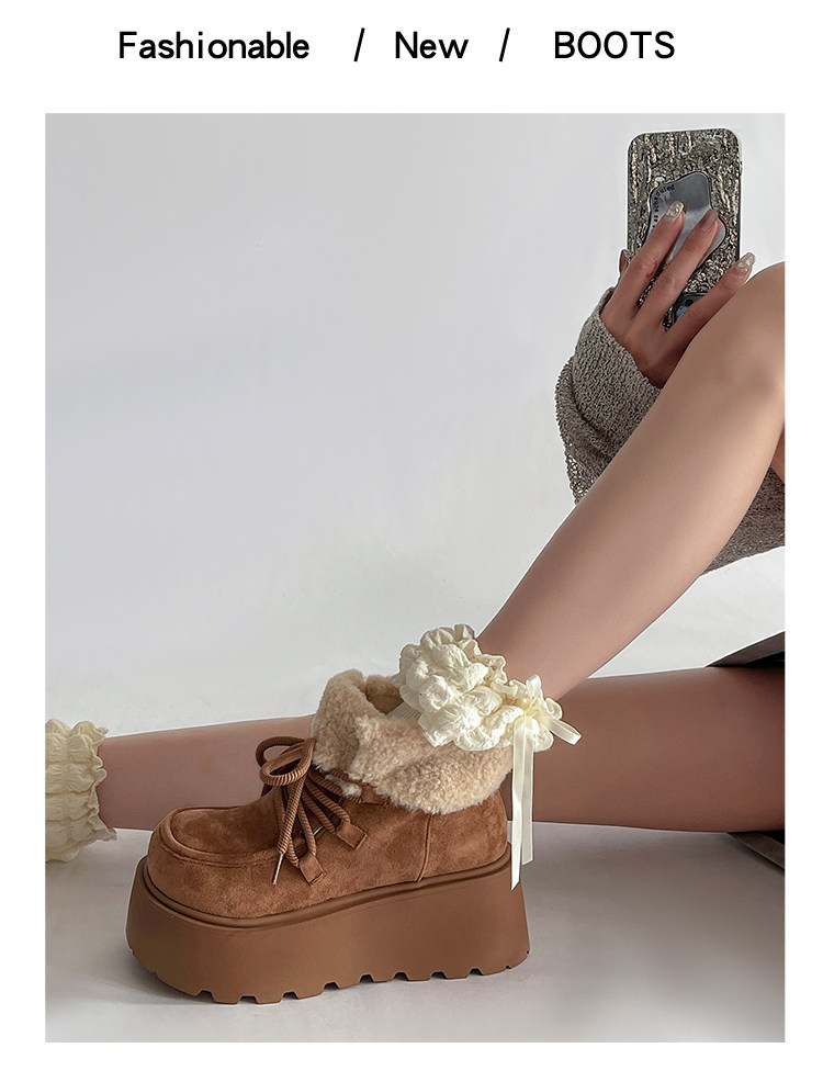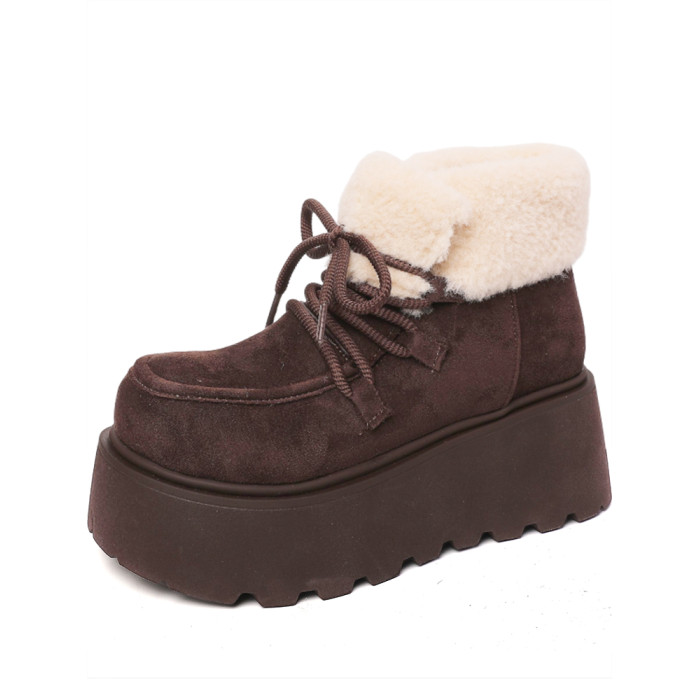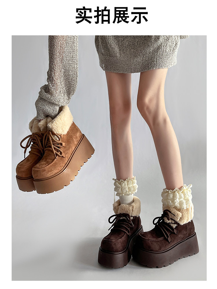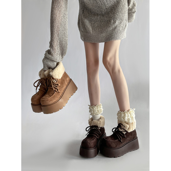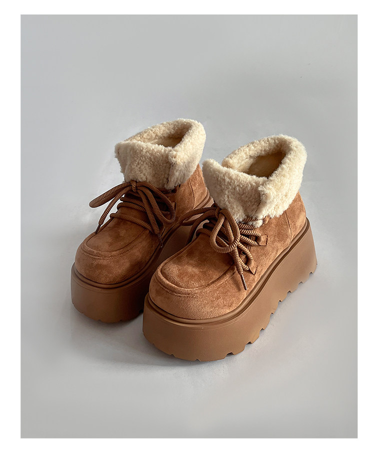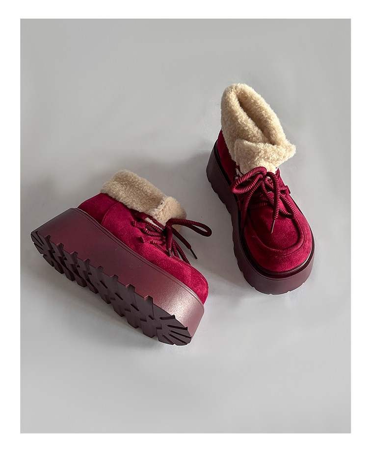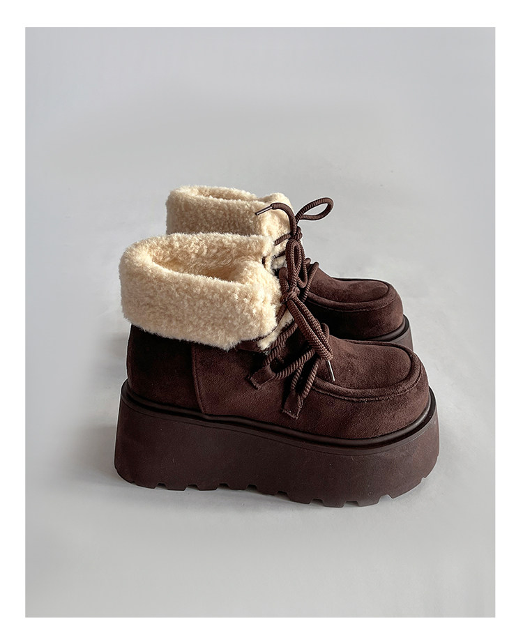 時尚部落磨砂復古短筒雪地靴女2025年秋冬新款加絨毛毛厚底大棉鞋