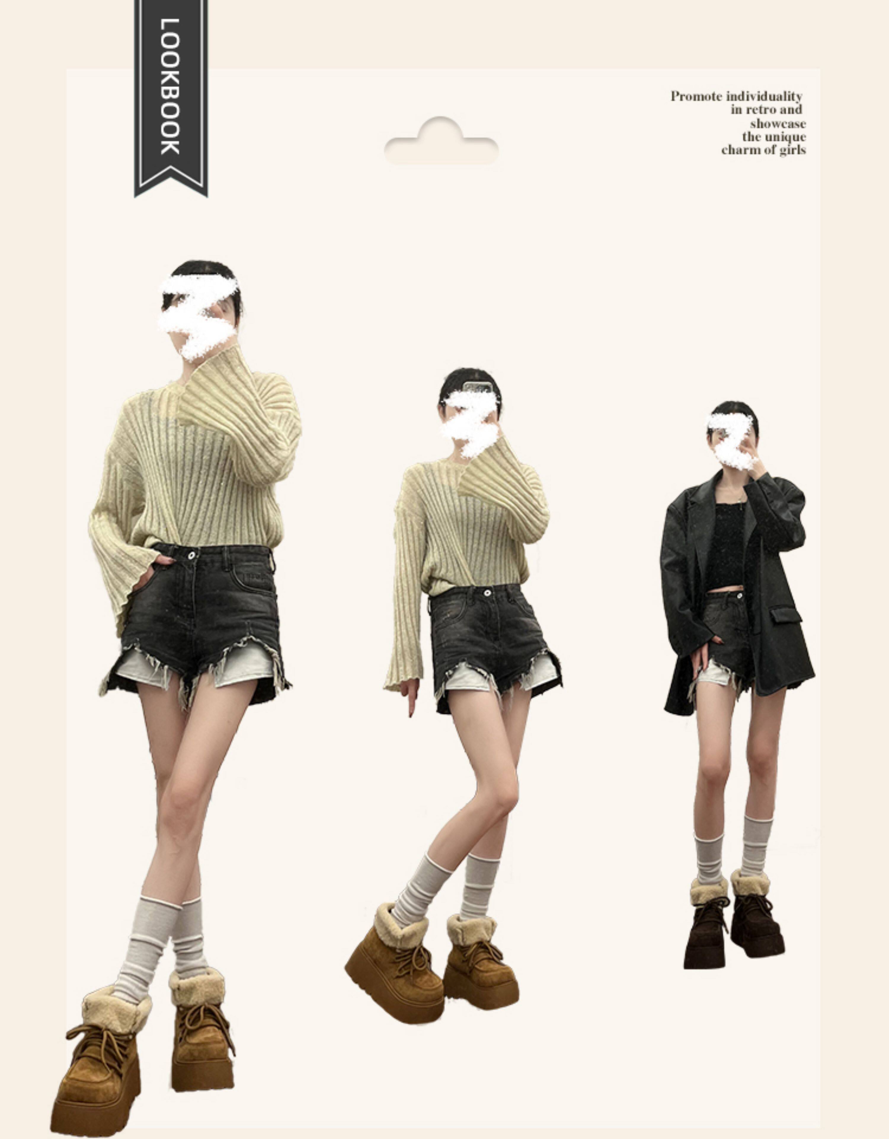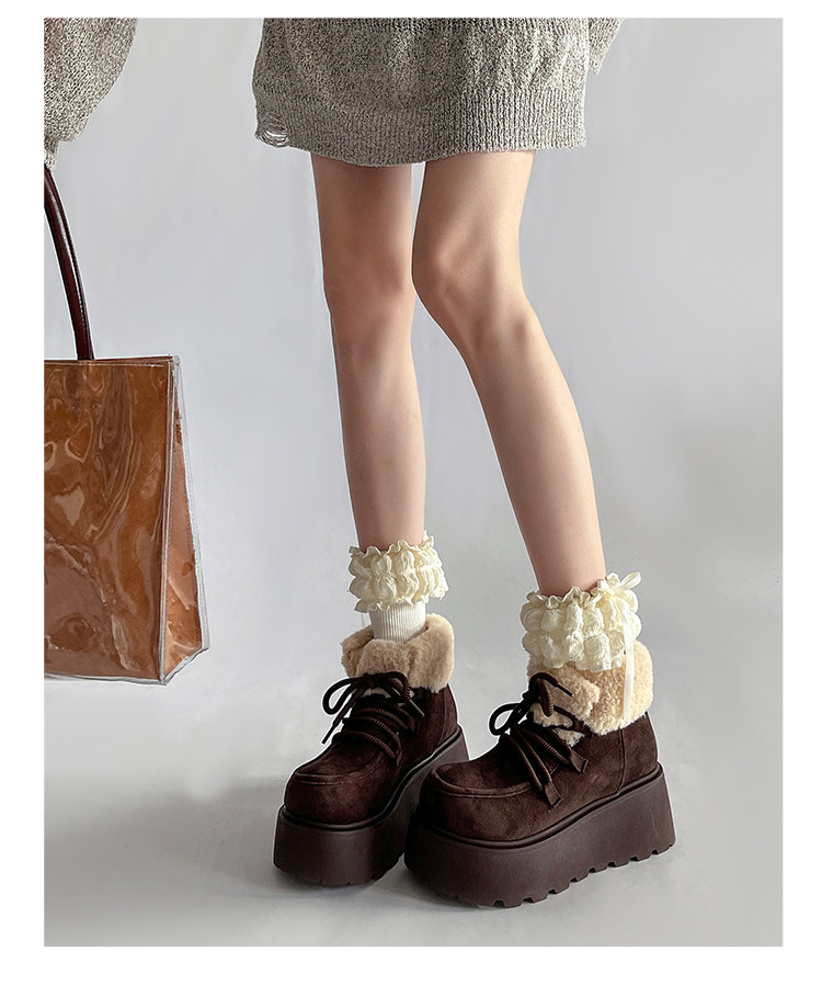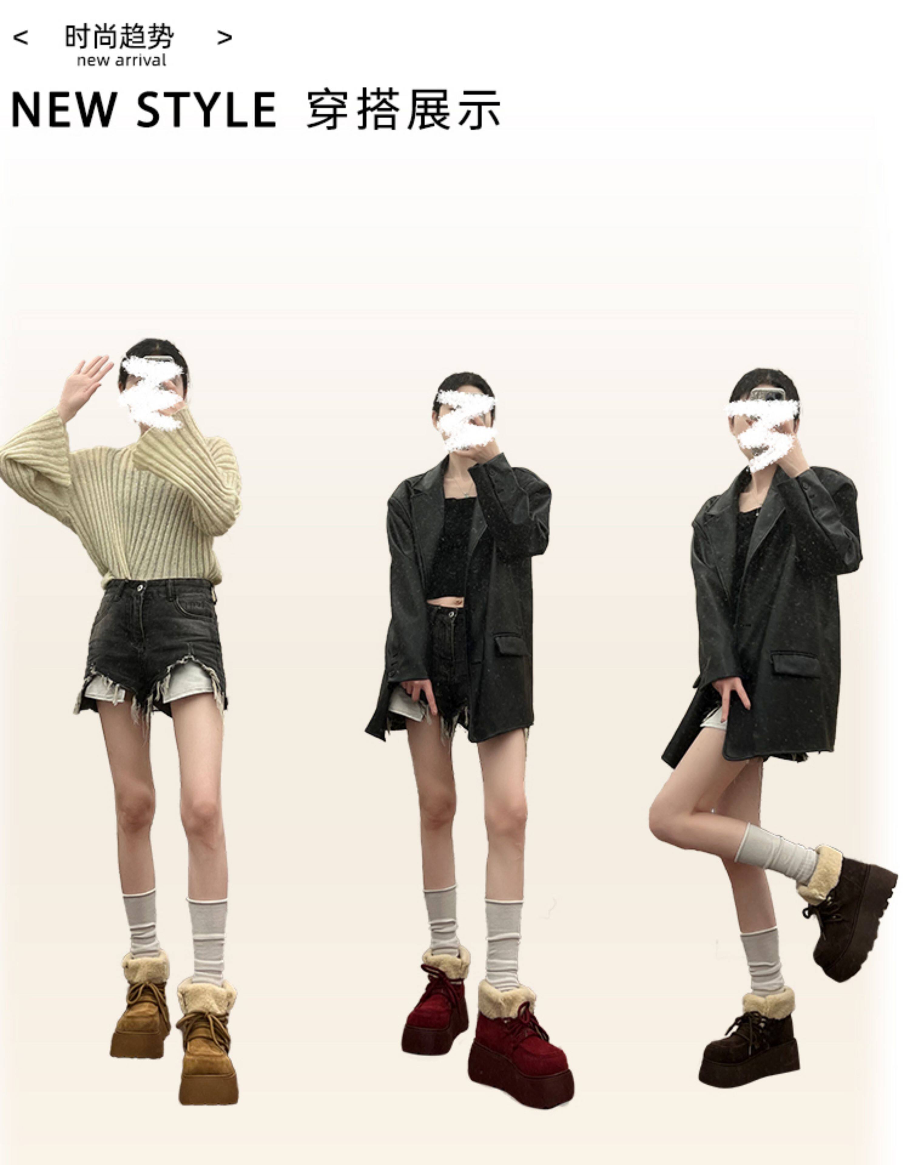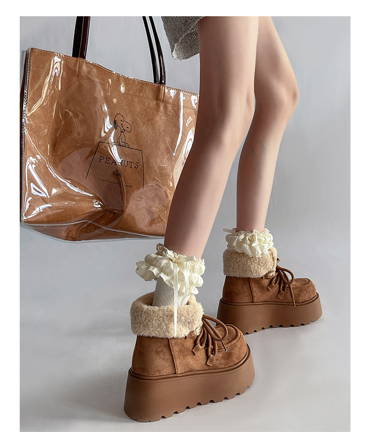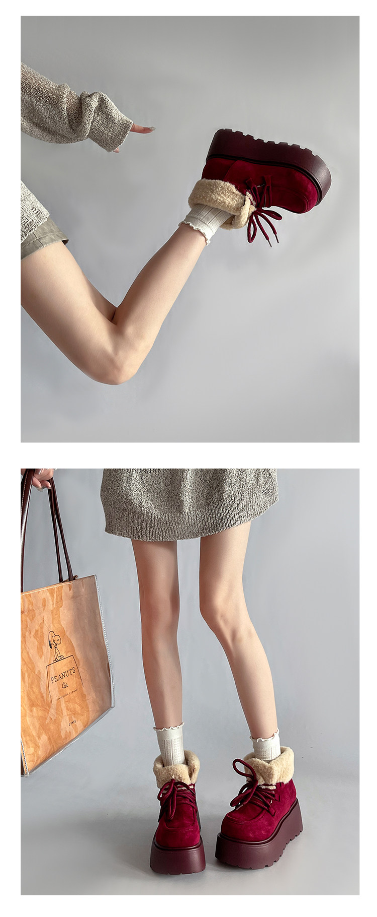 時尚部落磨砂復古短筒雪地靴女2025年秋冬新款加絨毛毛厚底大棉鞋