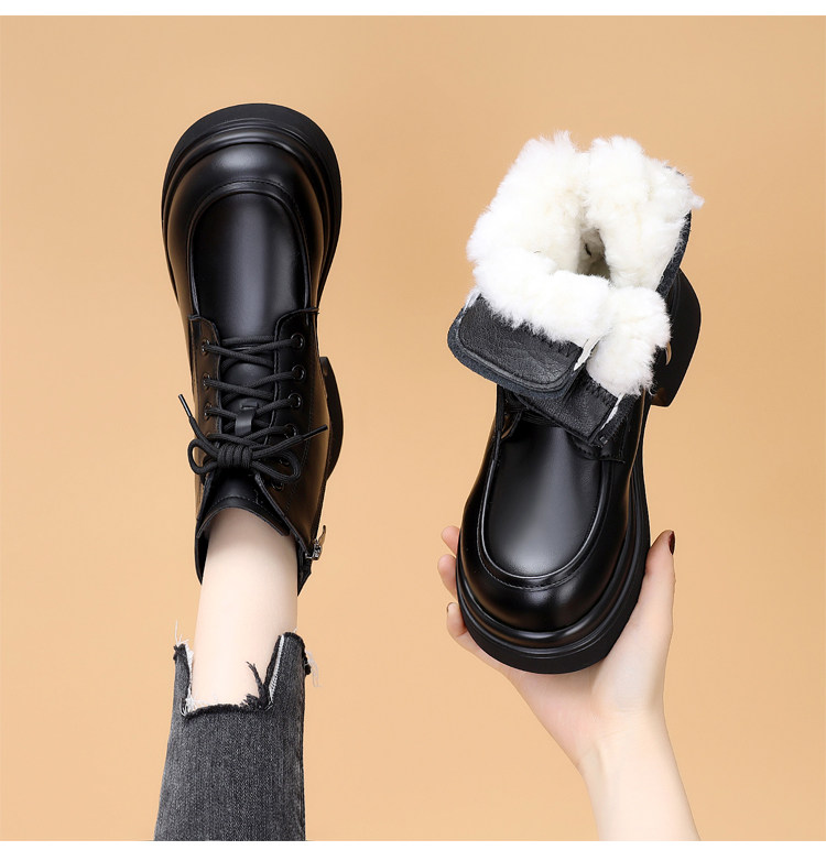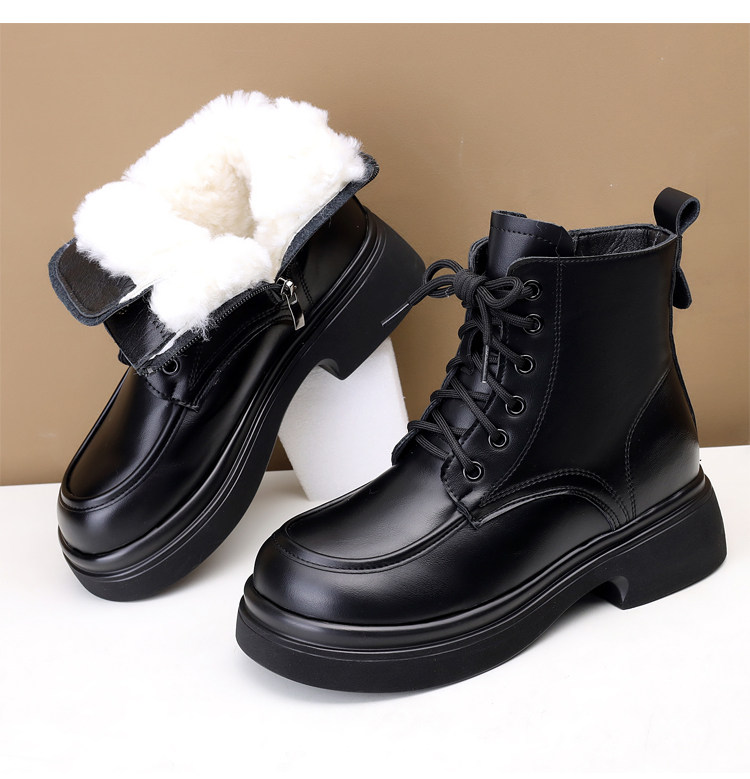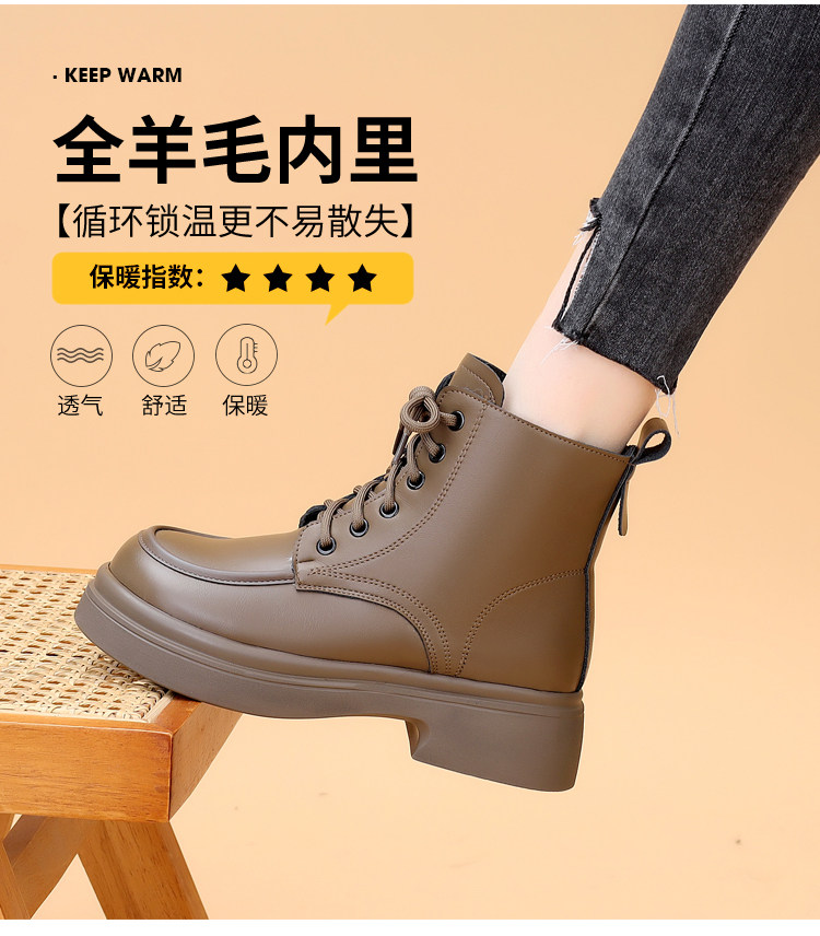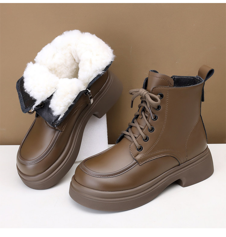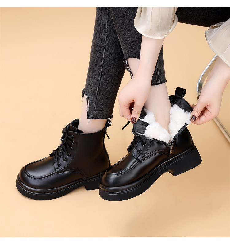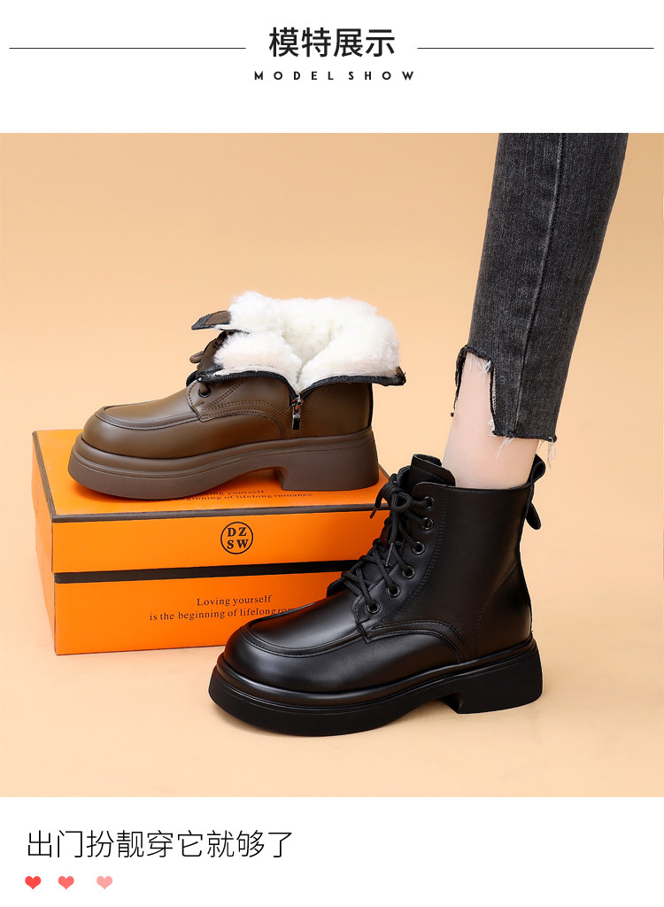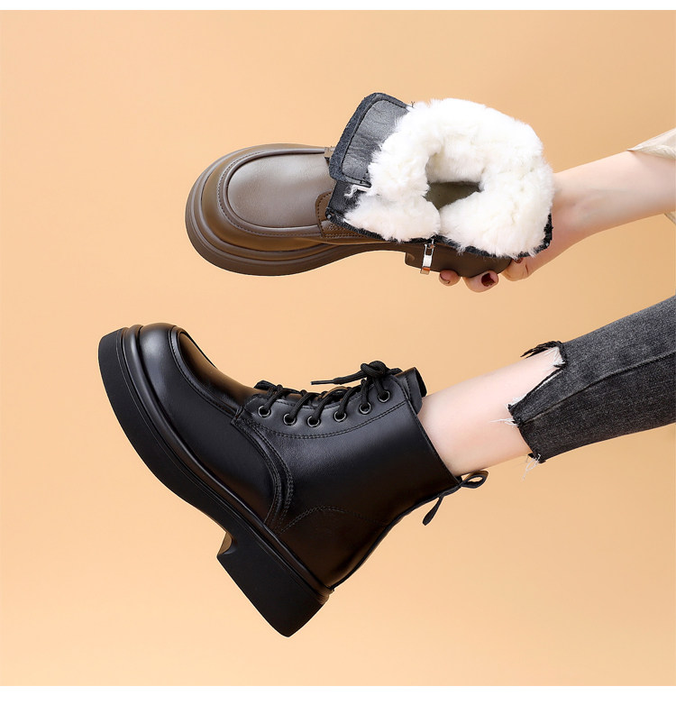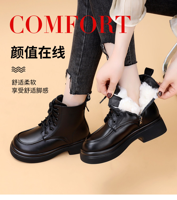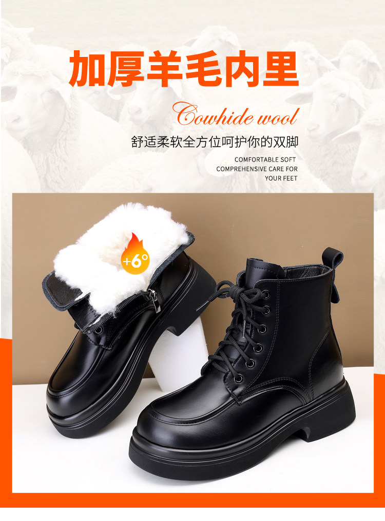 羊毛軟皮厚底雪地靴女2025年新款冬季加絨防滑馬丁靴保暖加厚棉靴