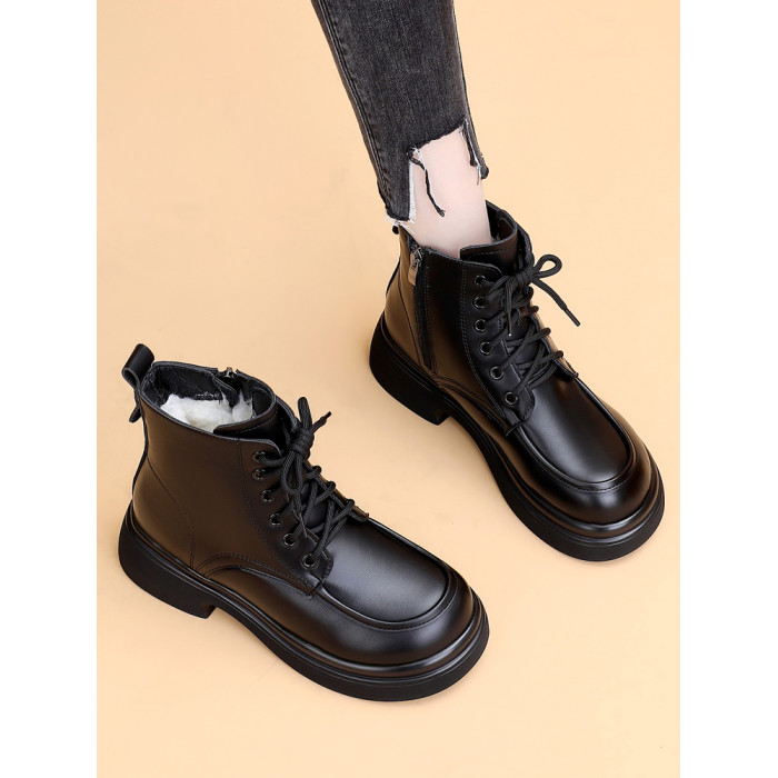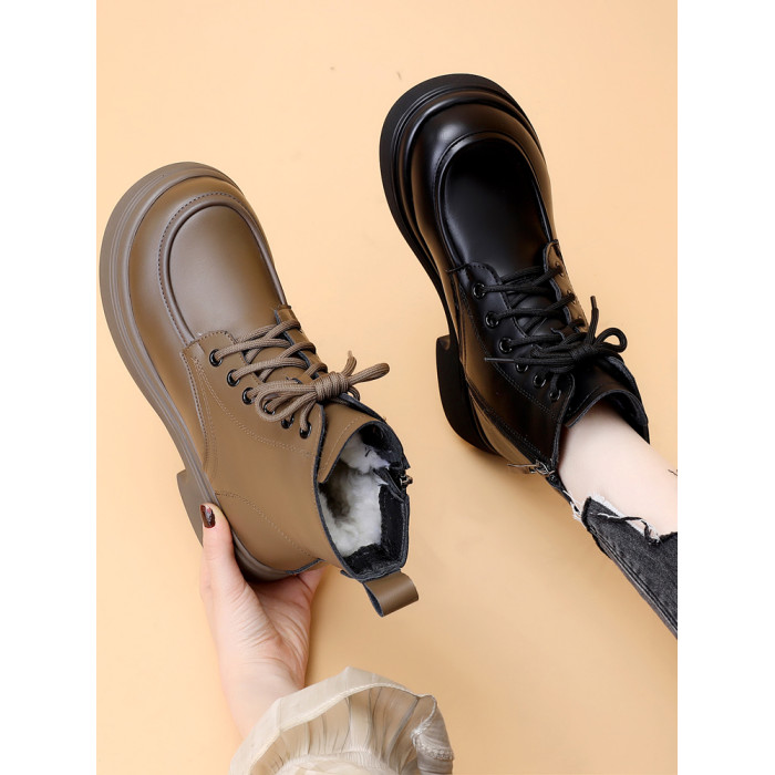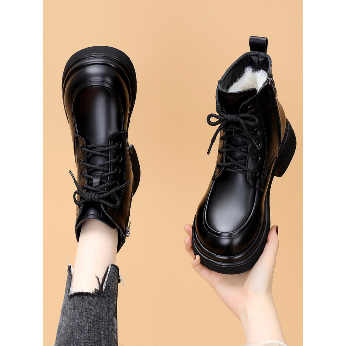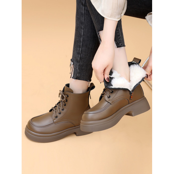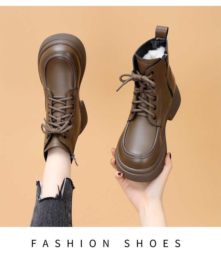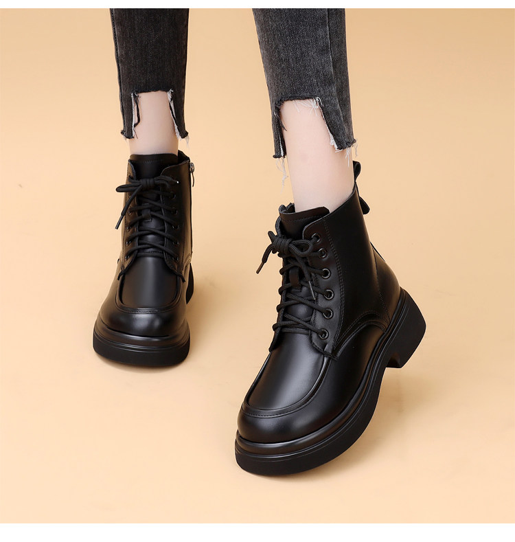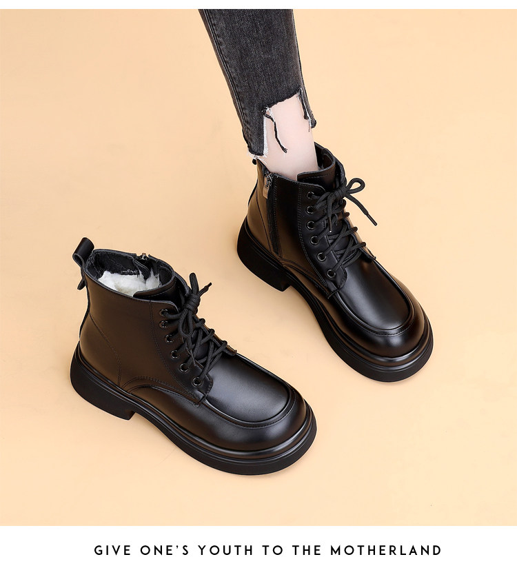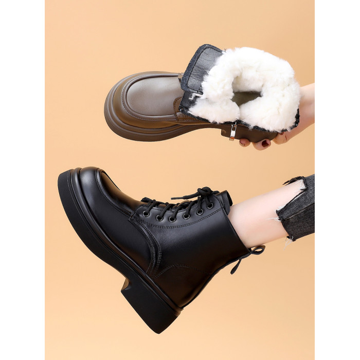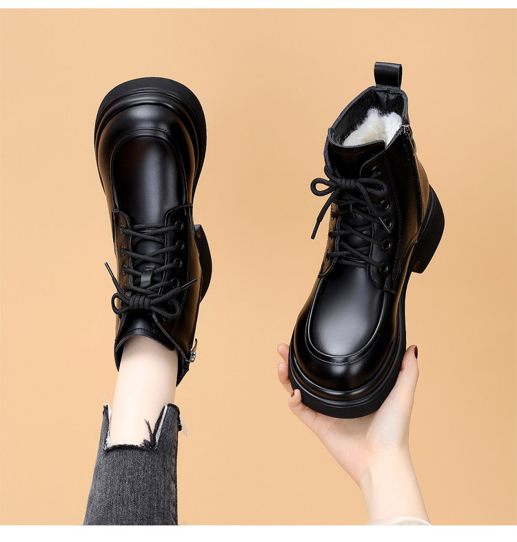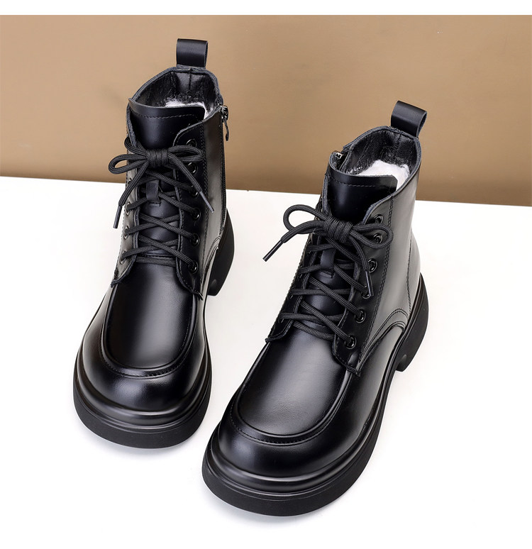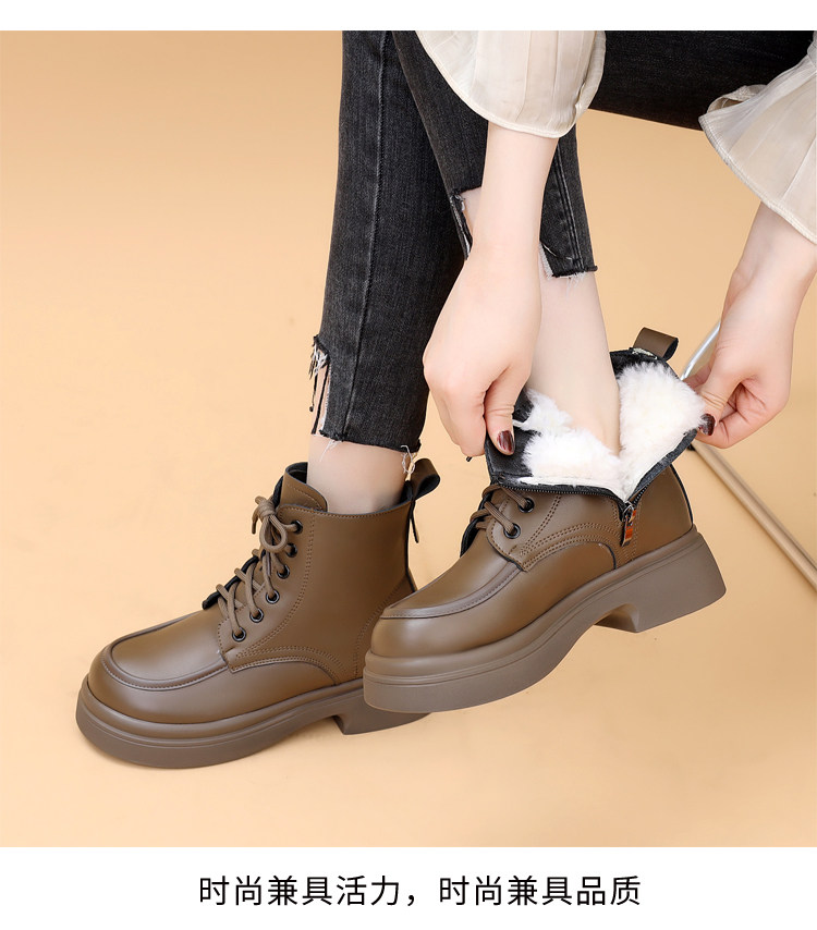 羊毛軟皮厚底雪地靴女2025年新款冬季加絨防滑馬丁靴保暖加厚棉靴