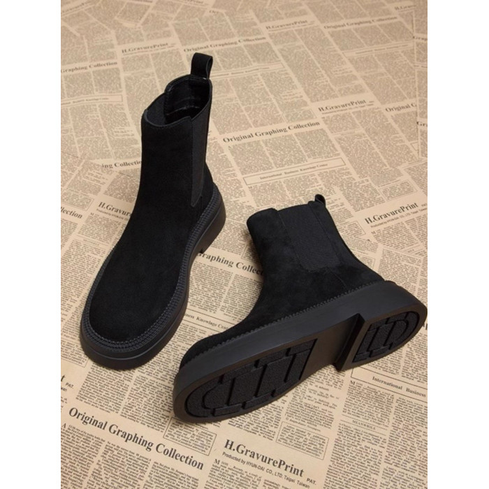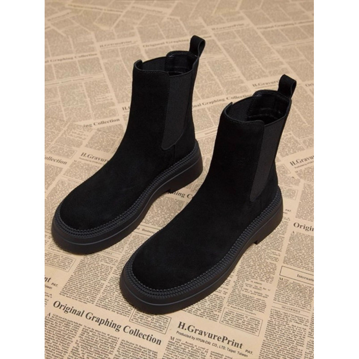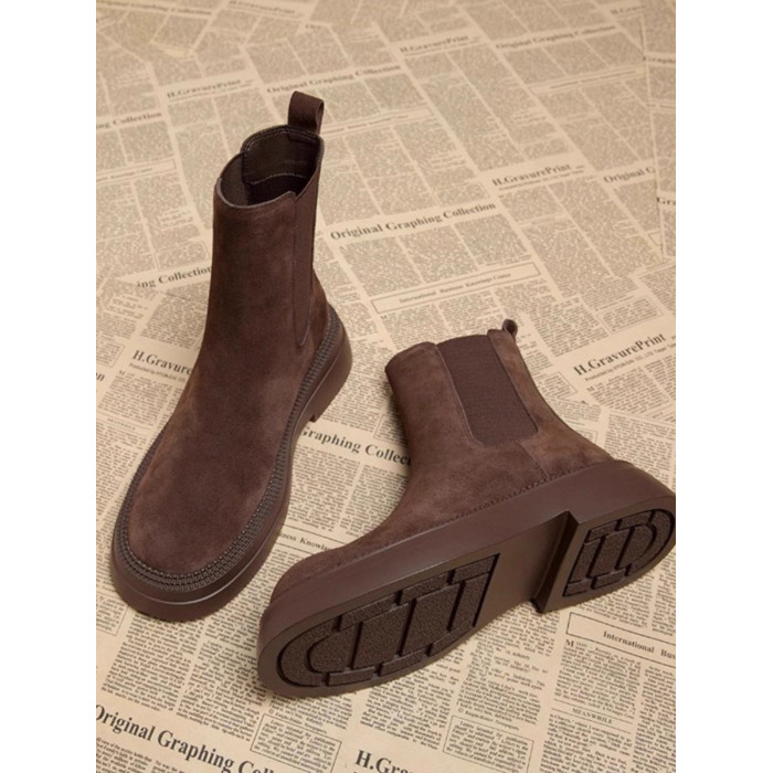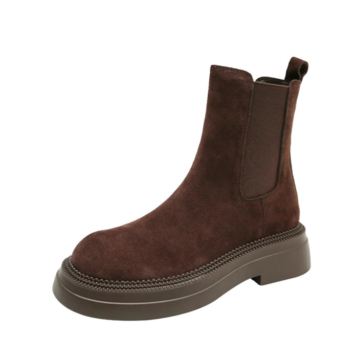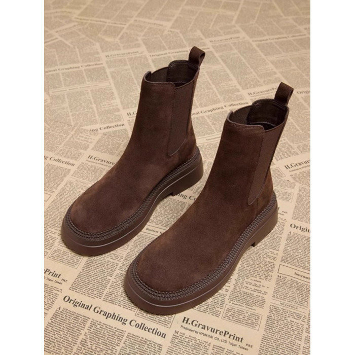 撤櫃品牌女鞋棕色厚底短靴女秋冬新款復古切爾西靴加絨平底馬丁靴