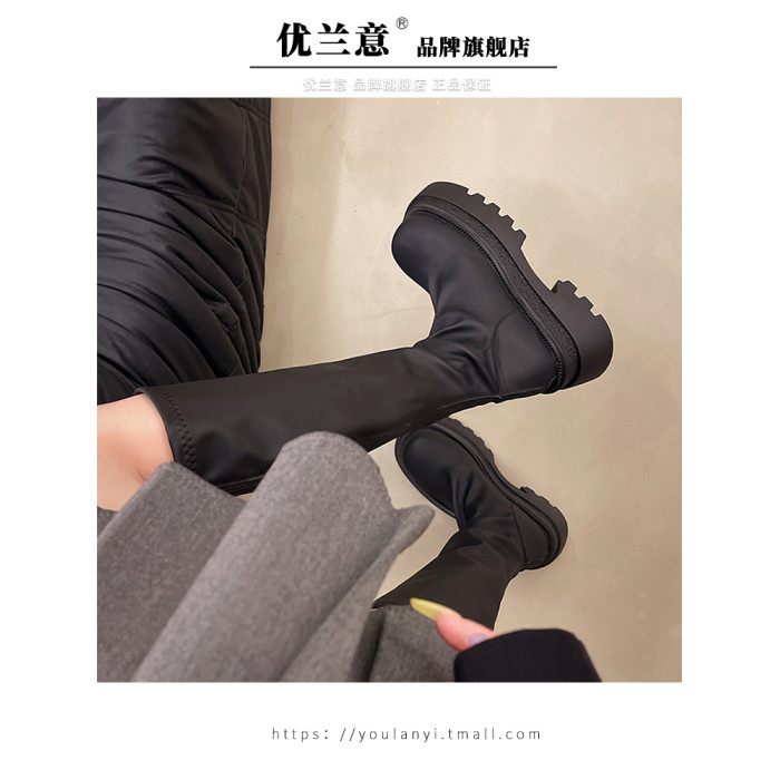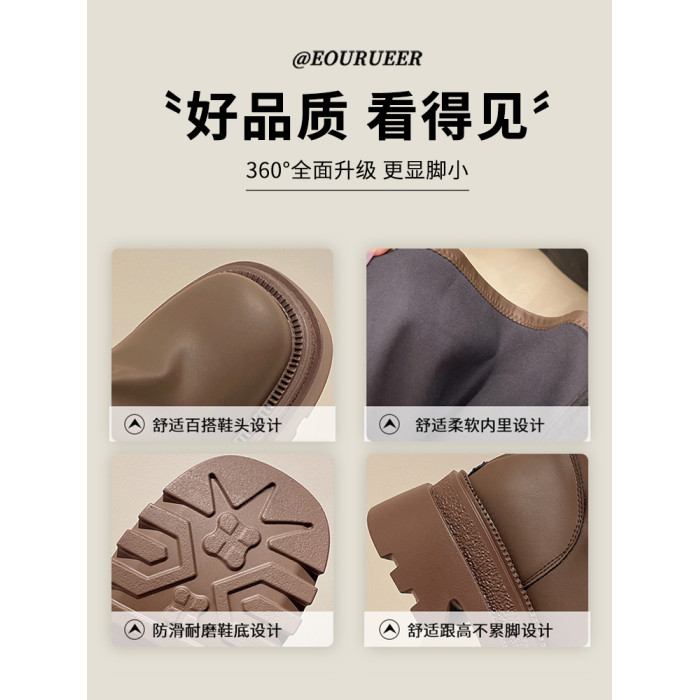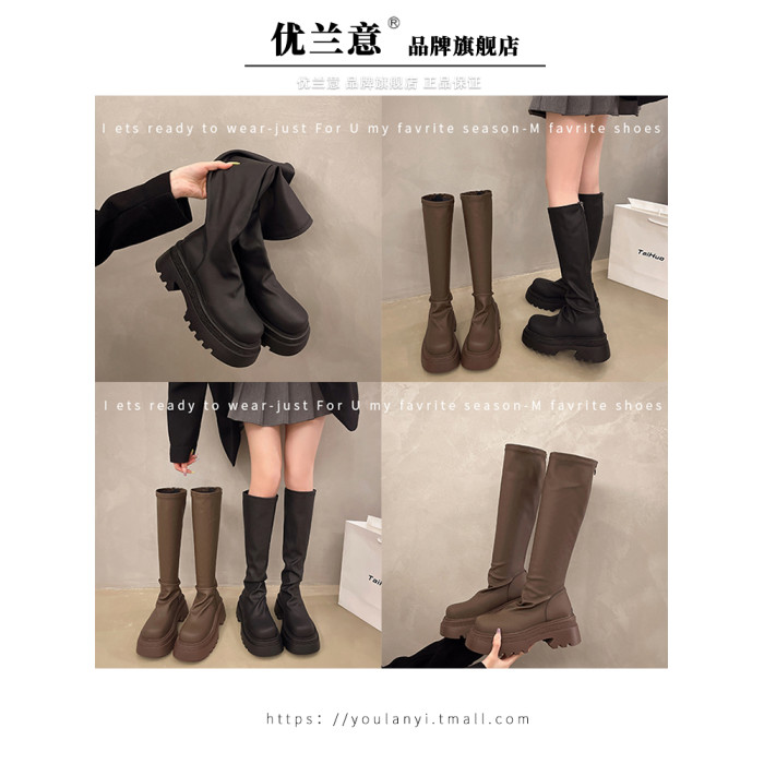 厚底長筒靴女2026秋季新款高筒堆堆靴增高小個子瘦瘦靴辣妹騎士靴