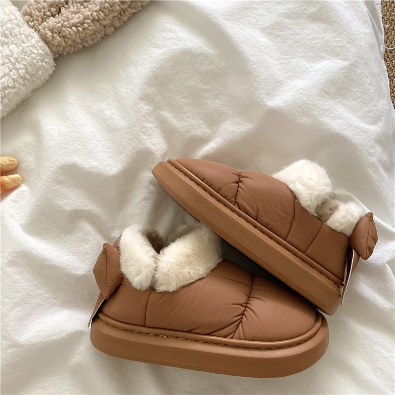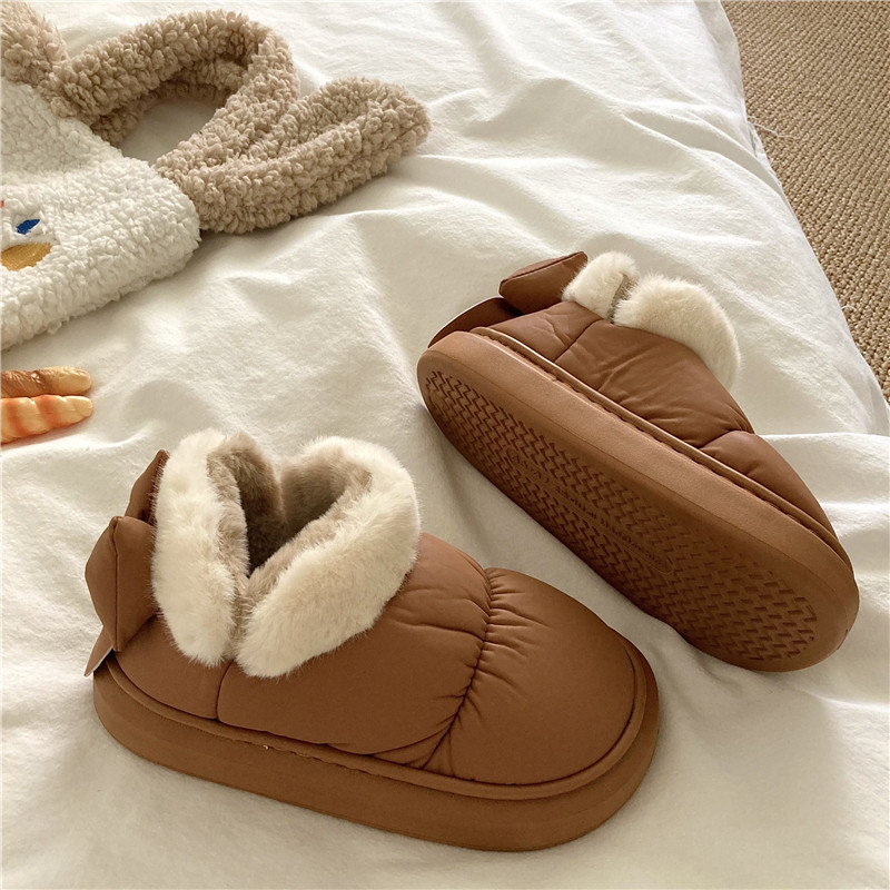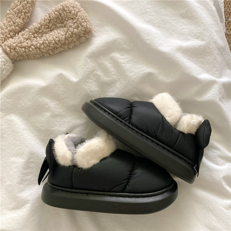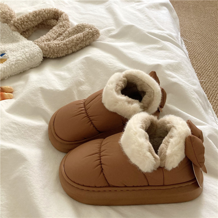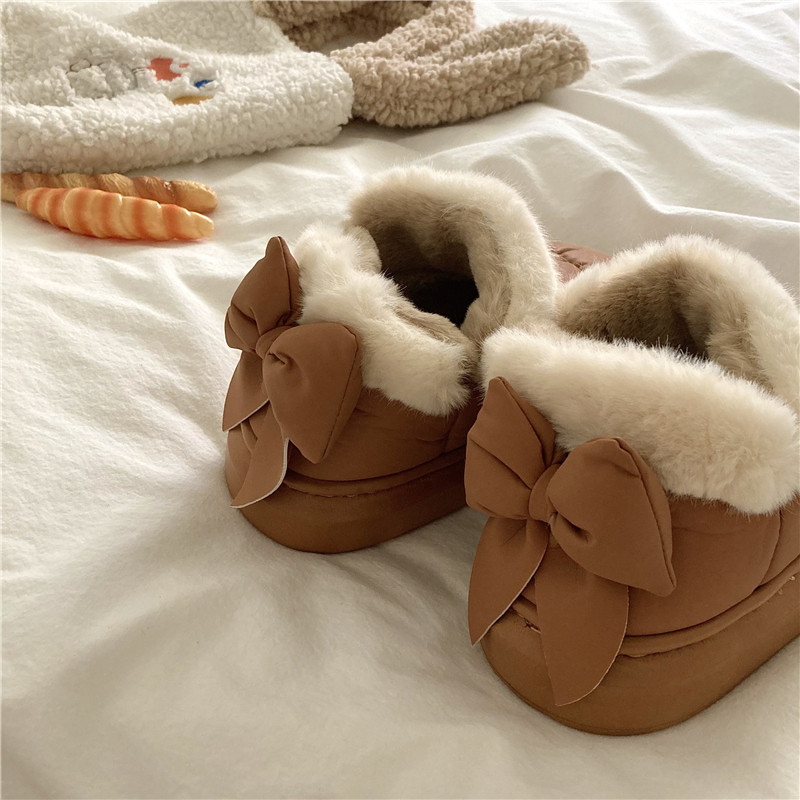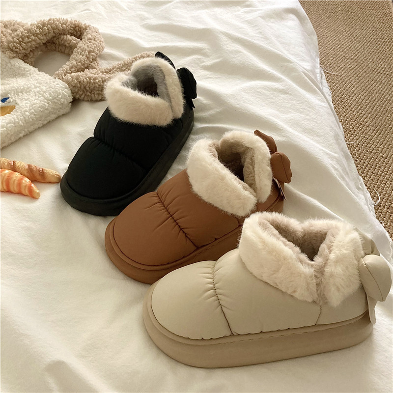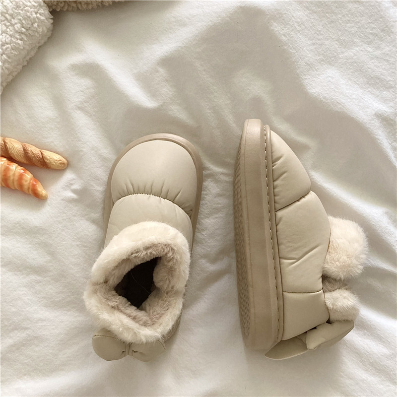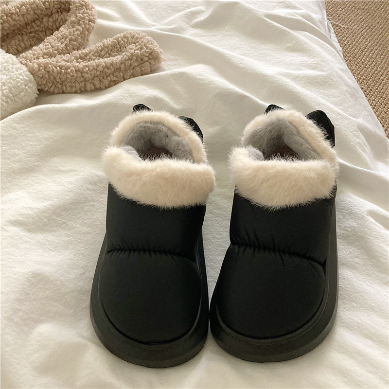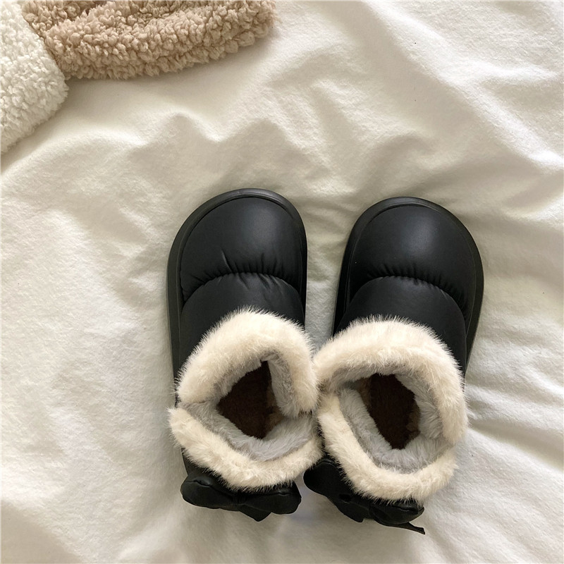 後跟蝴蝶結~!仙女風ins加厚加絨防水雪地靴女防滑保暖包跟棉鞋潮