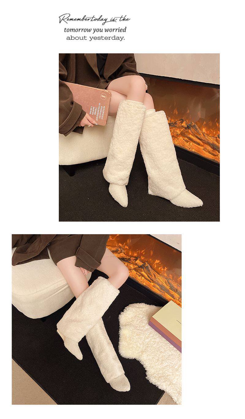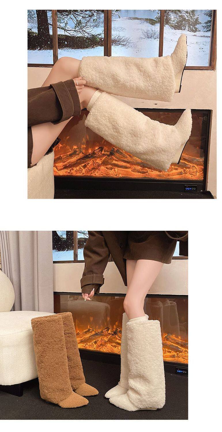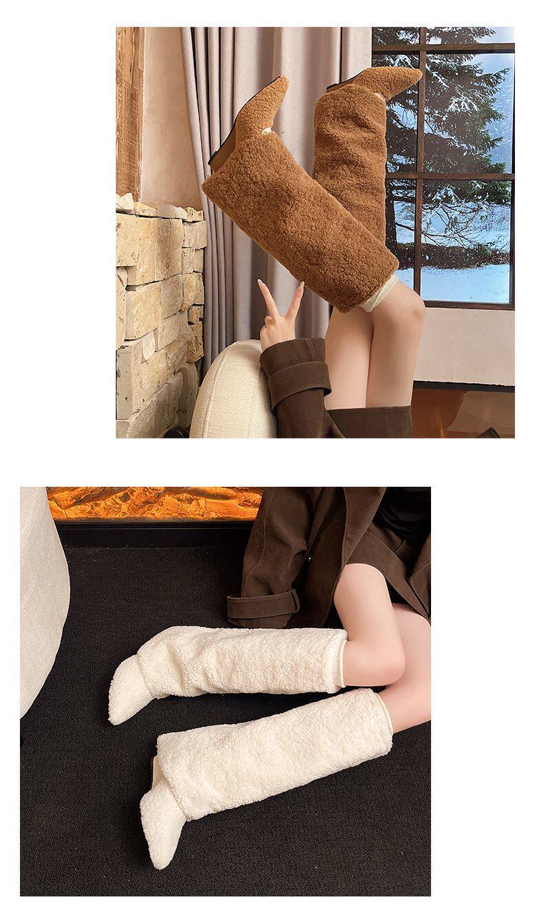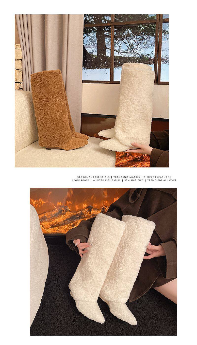 爆款辣妹尖頭高跟長靴女2026新款冬洋氣加絨高筒坡跟保暖雪地棉靴
