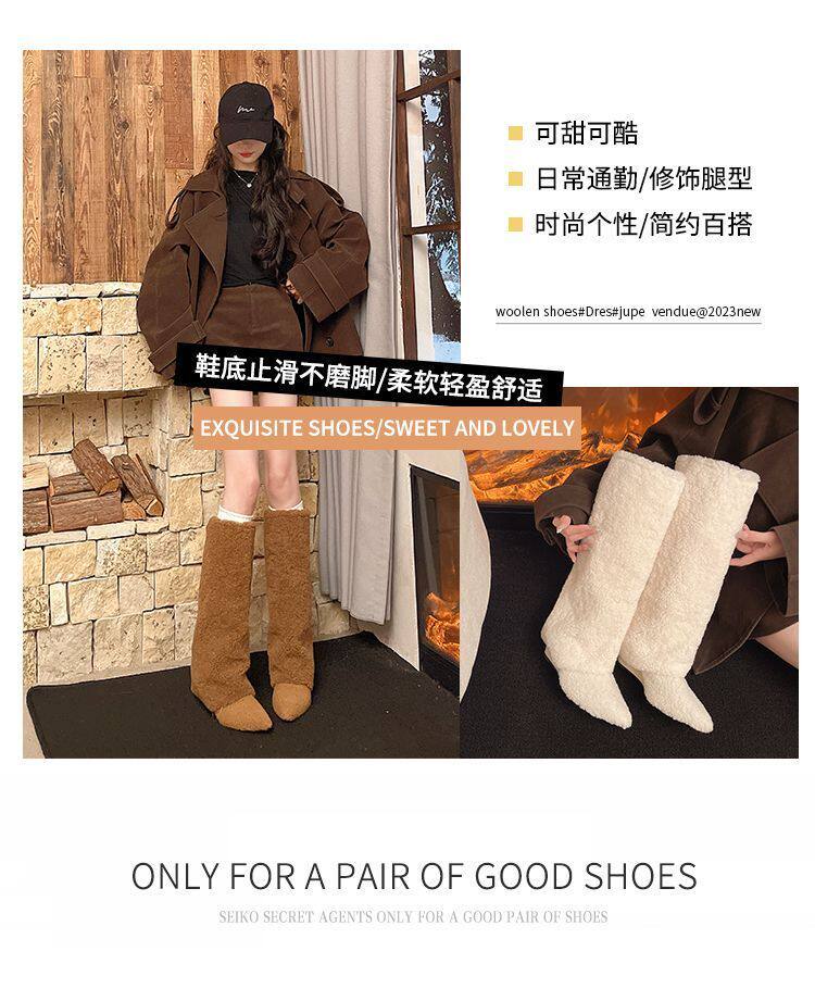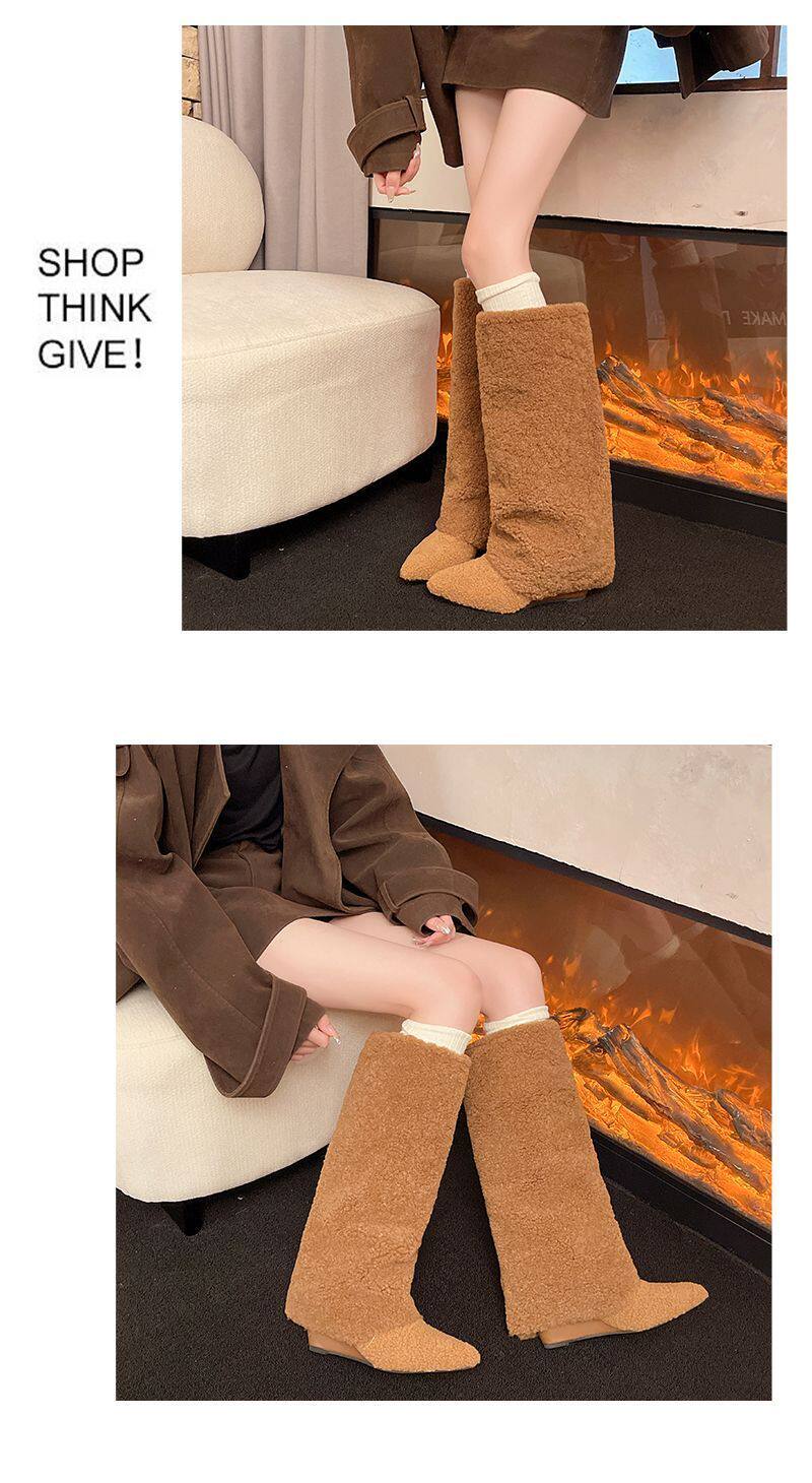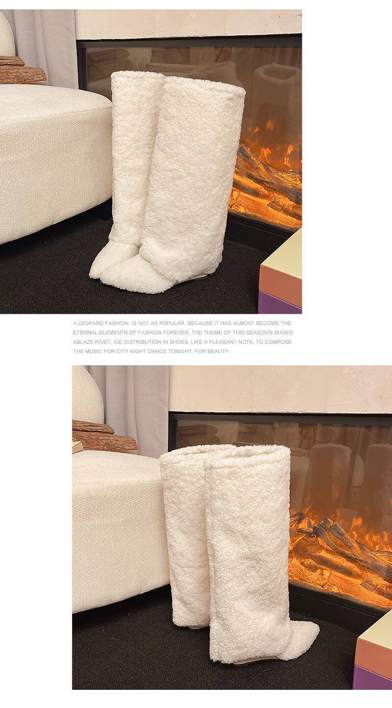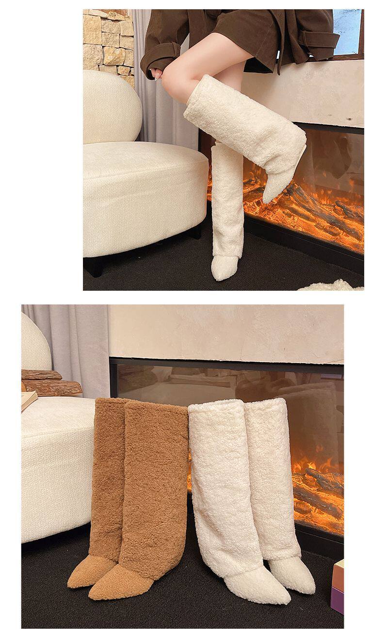 爆款辣妹尖頭高跟長靴女2026新款冬洋氣加絨高筒坡跟保暖雪地棉靴