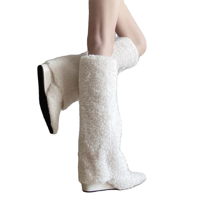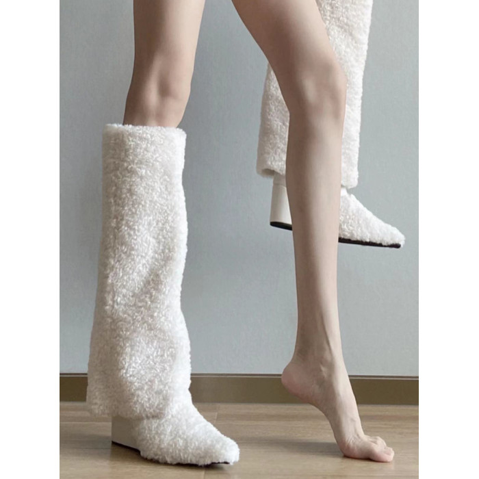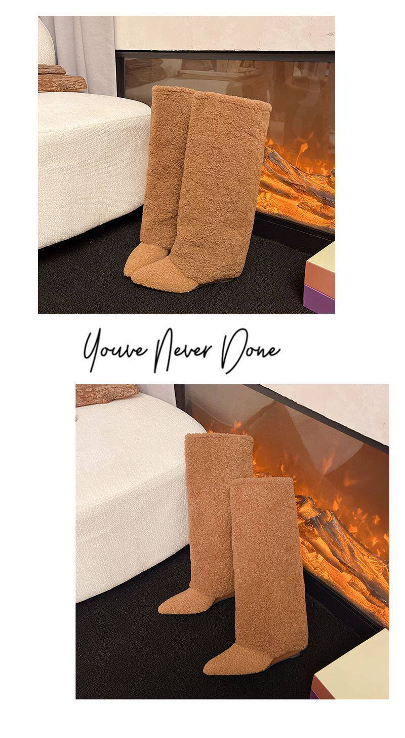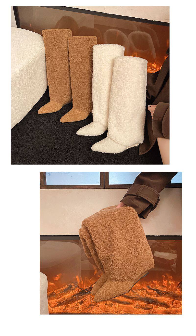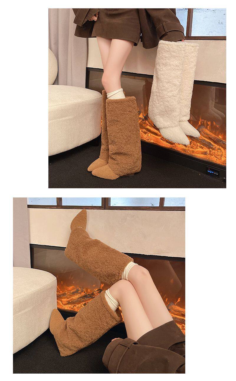 爆款辣妹尖頭高跟長靴女2026新款冬洋氣加絨高筒坡跟保暖雪地棉靴