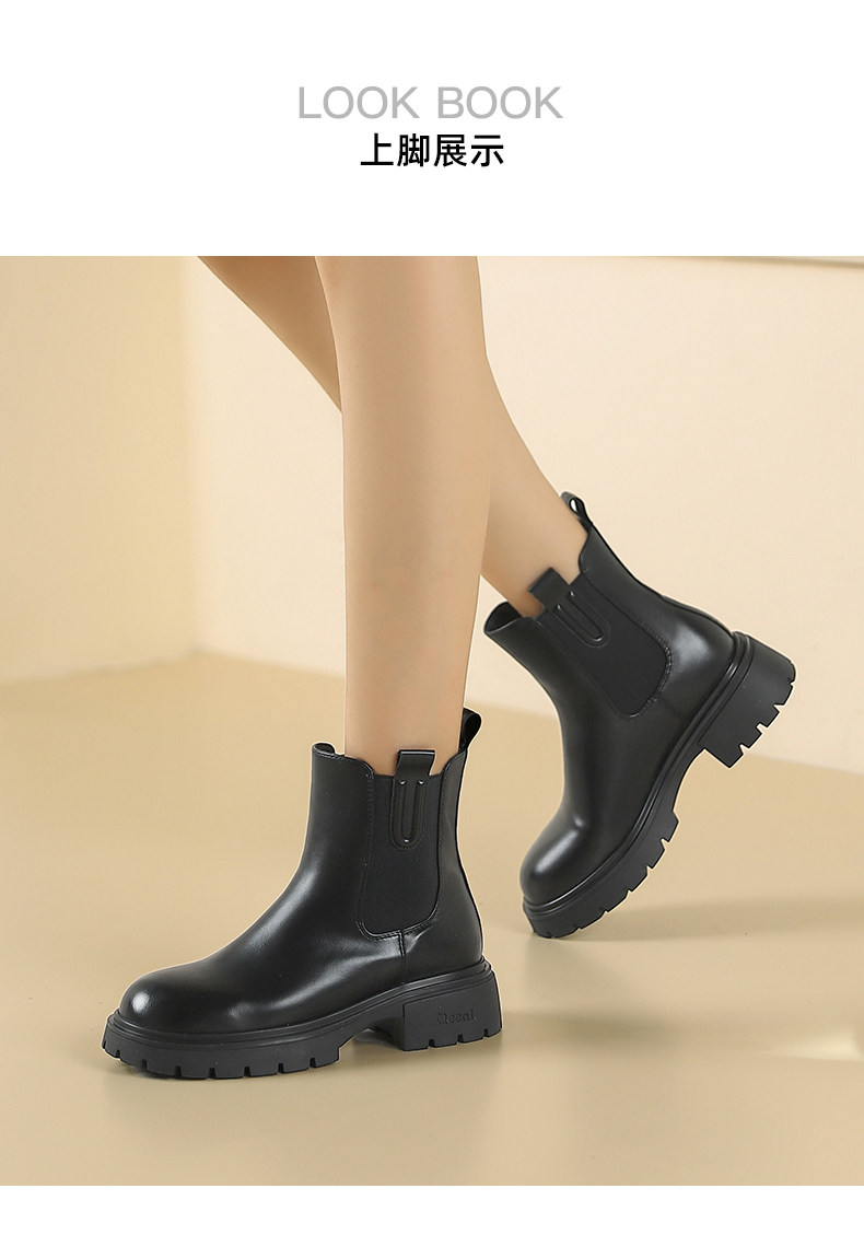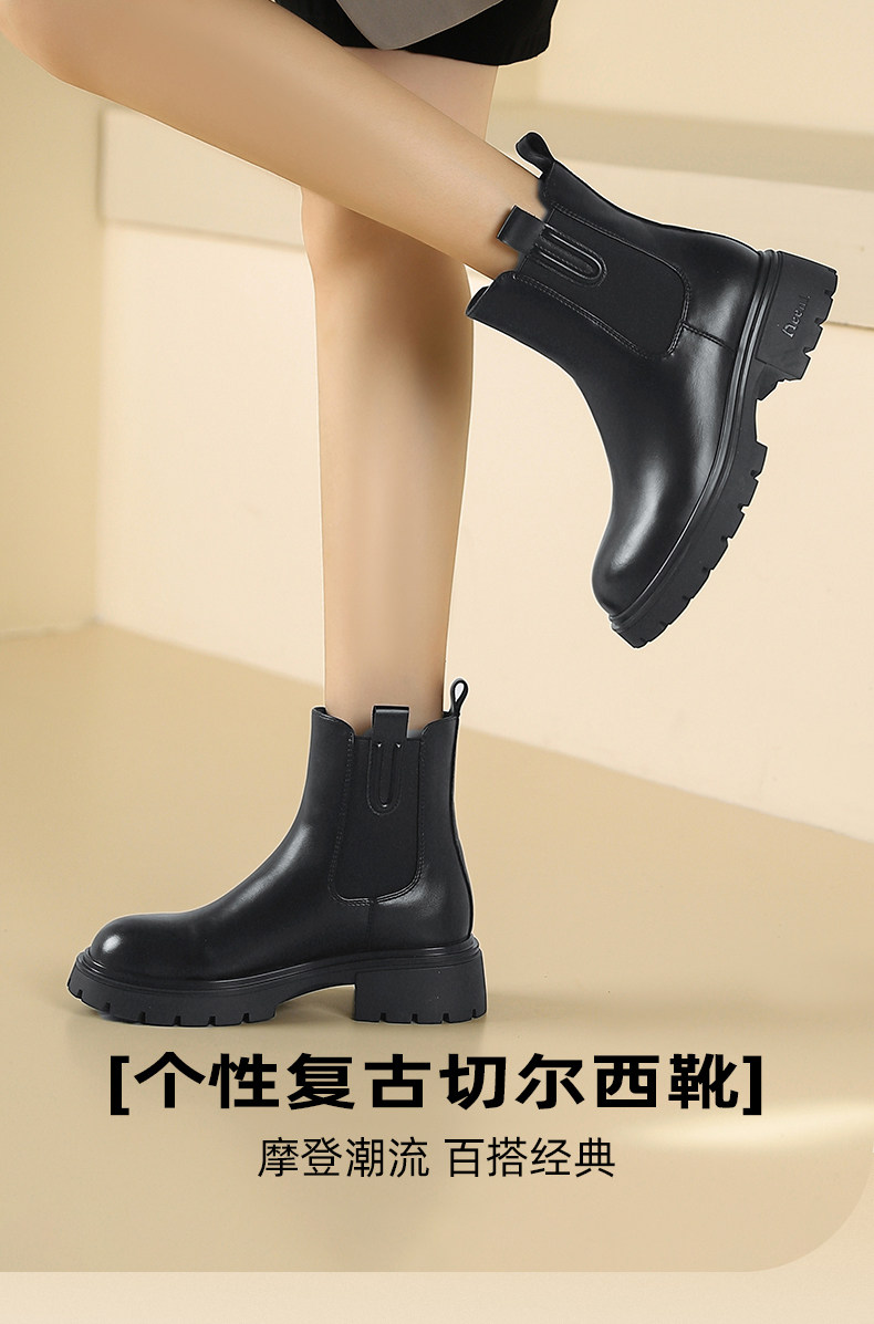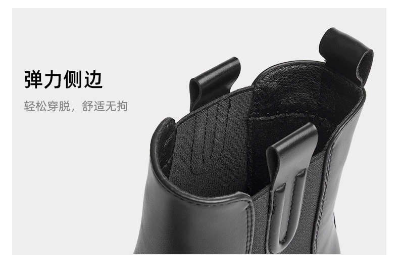 卓詩尼彈力菸筒靴女冬季保暖短筒顯瘦粗跟小個子百搭英倫風瘦瘦靴