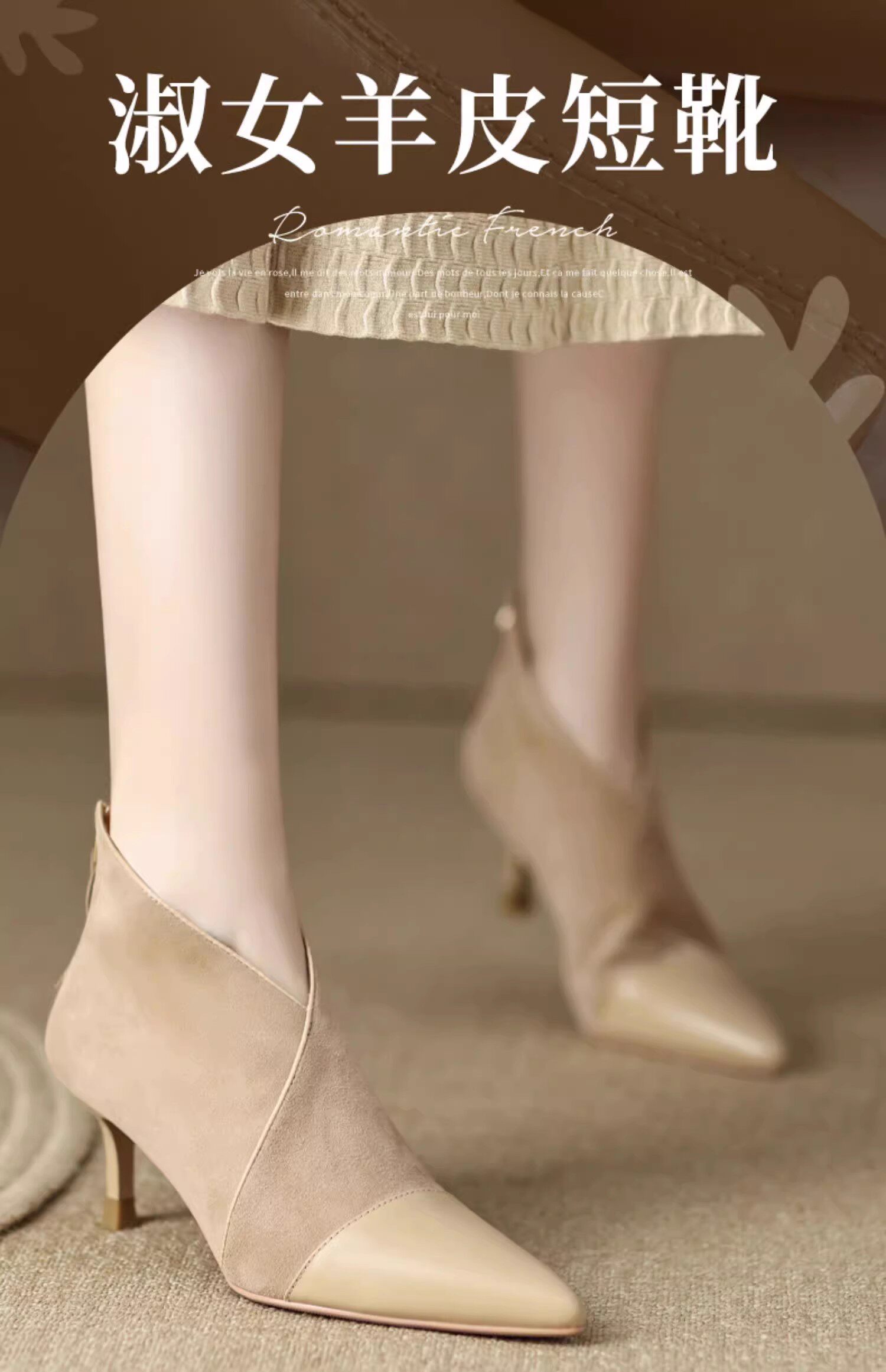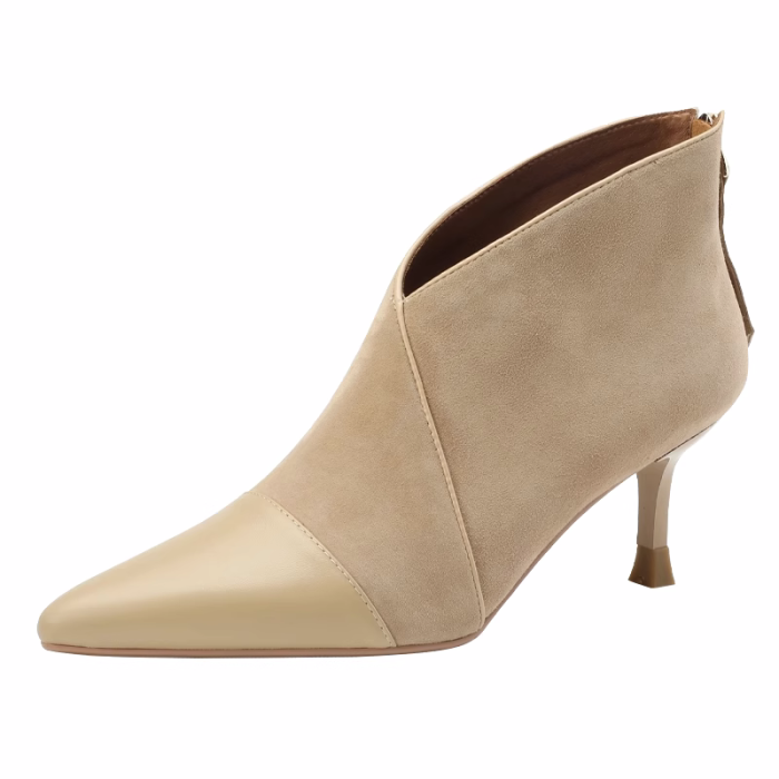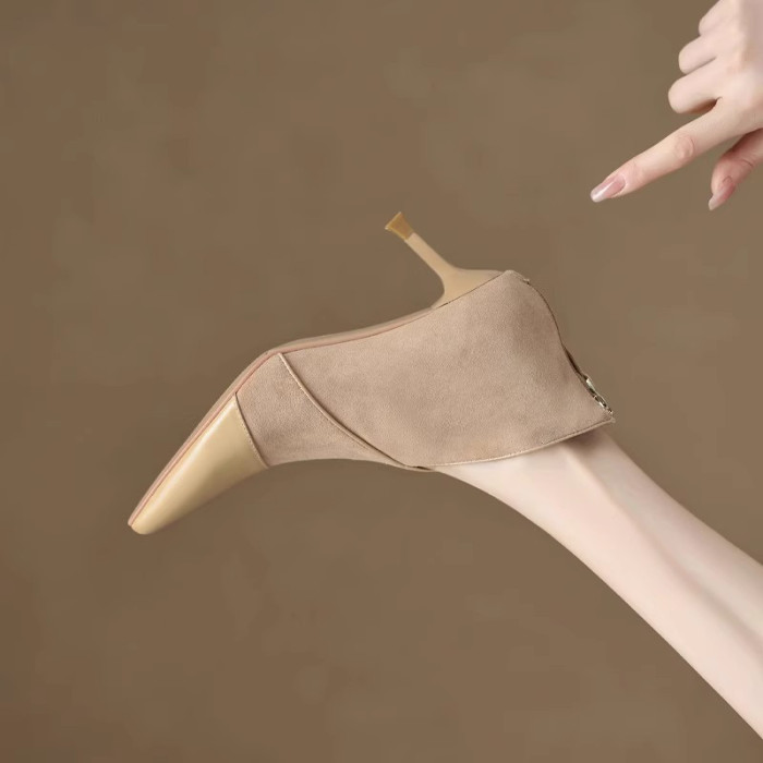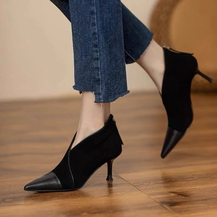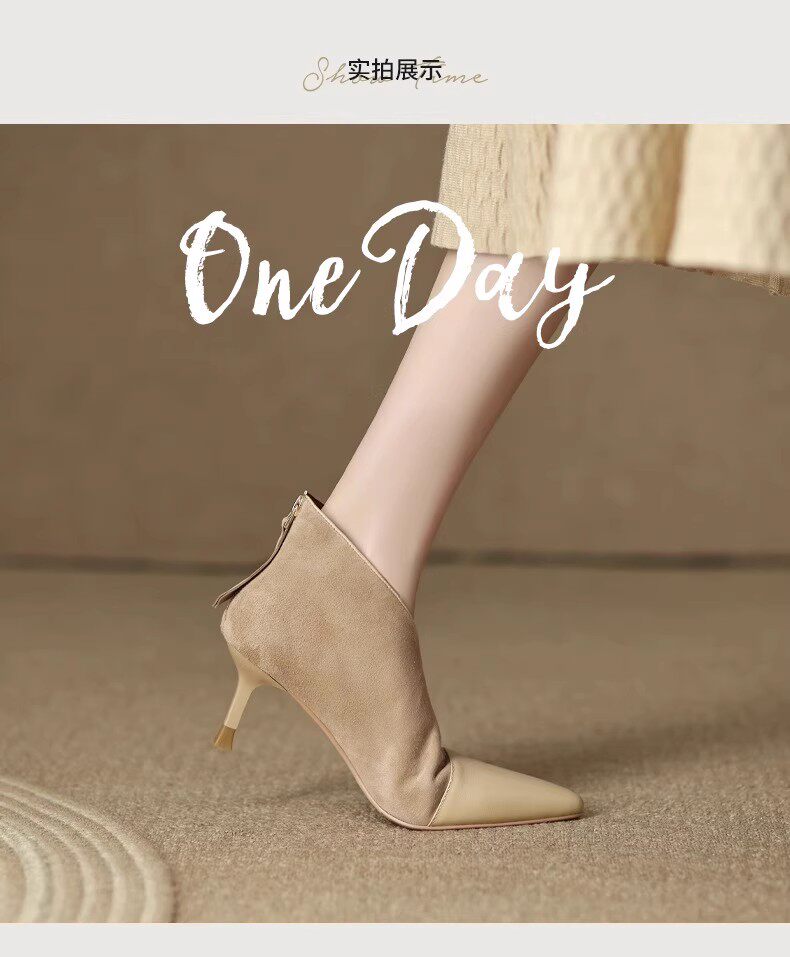 高級感法式小踝靴高跟小衆短靴女2025V口磨砂尖頭細跟裸靴高跟鞋