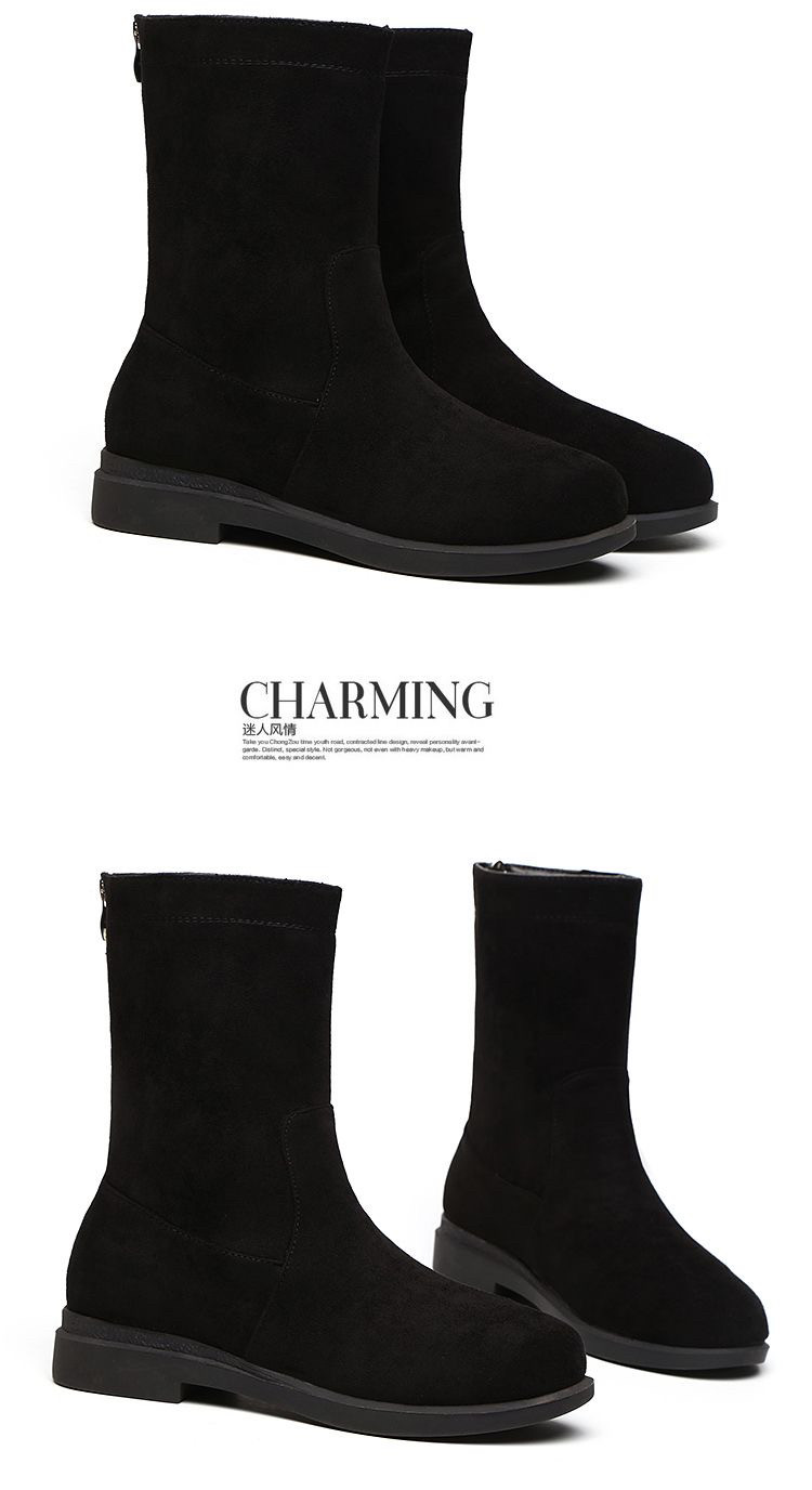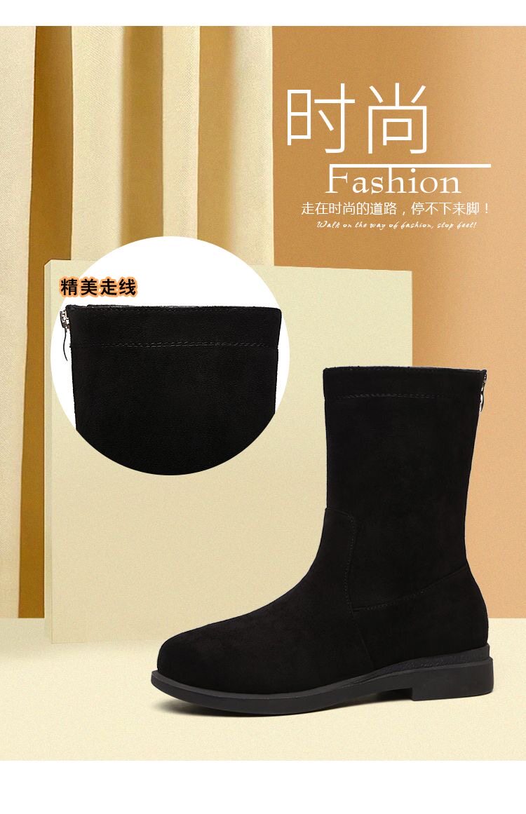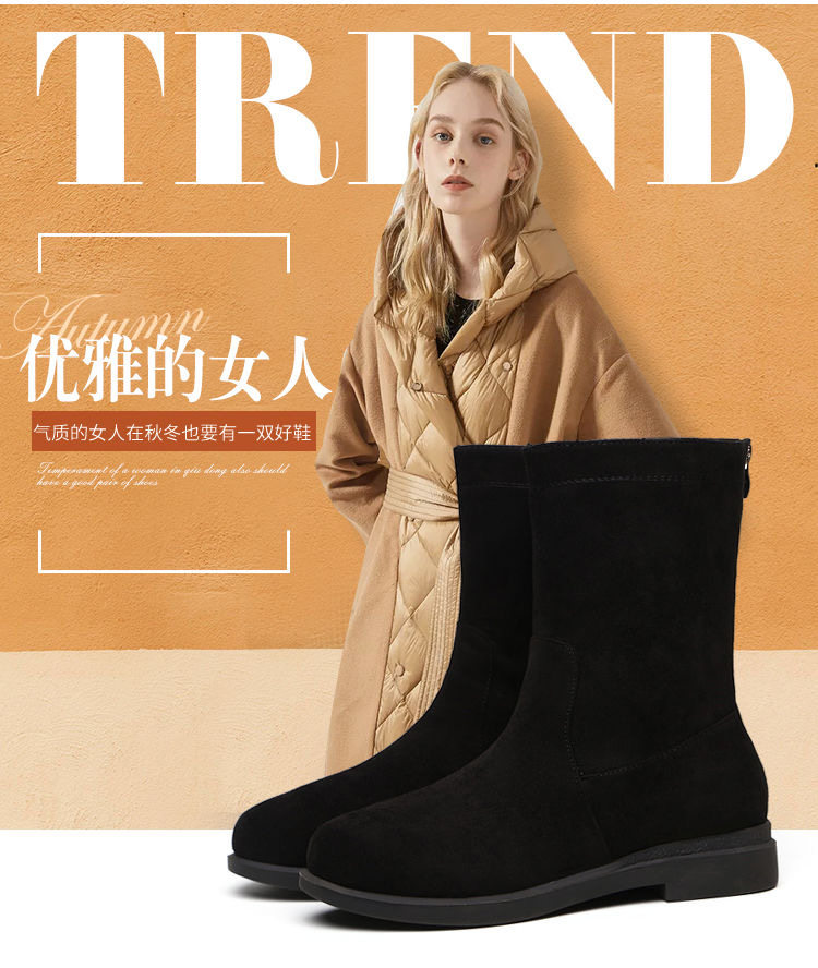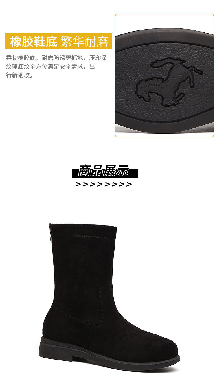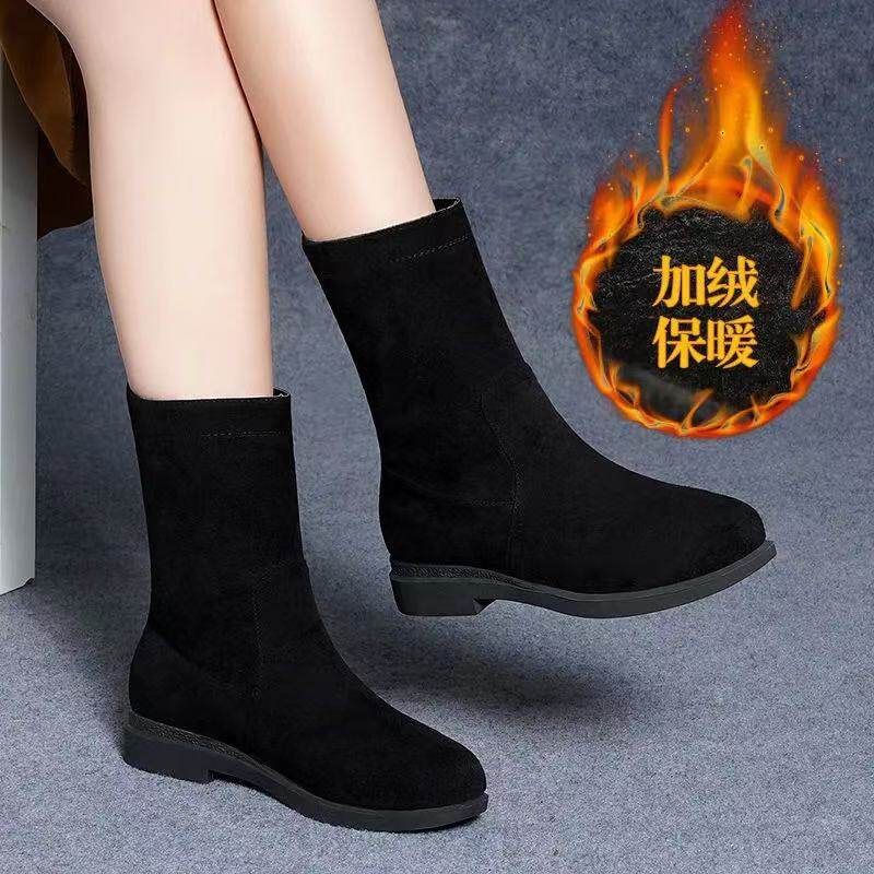 品牌特價靴子女2025秋冬新款低跟粗跟棉靴平底中筒靴加絨保暖棉鞋