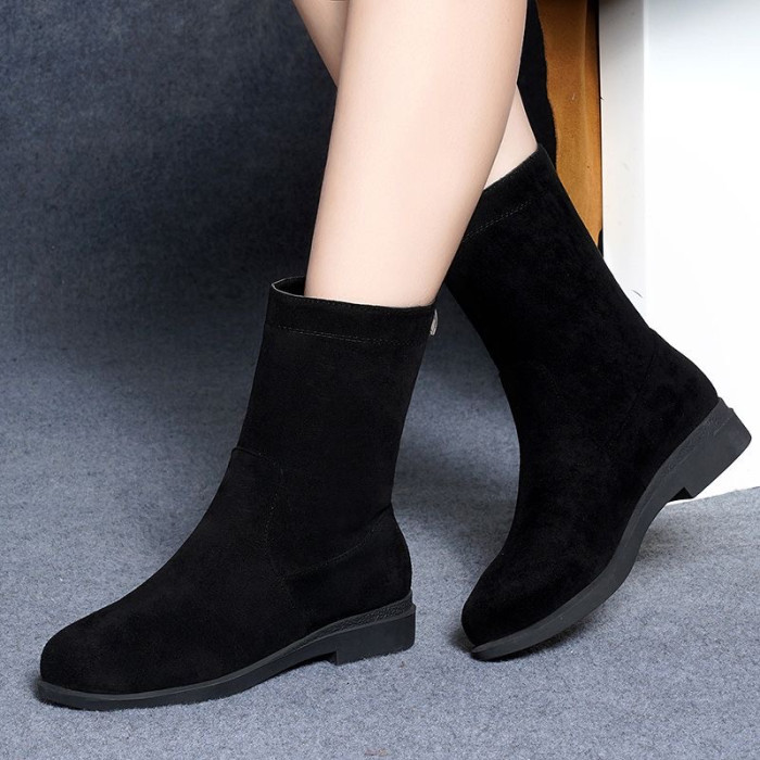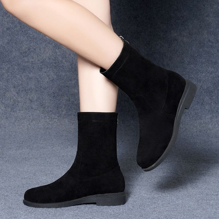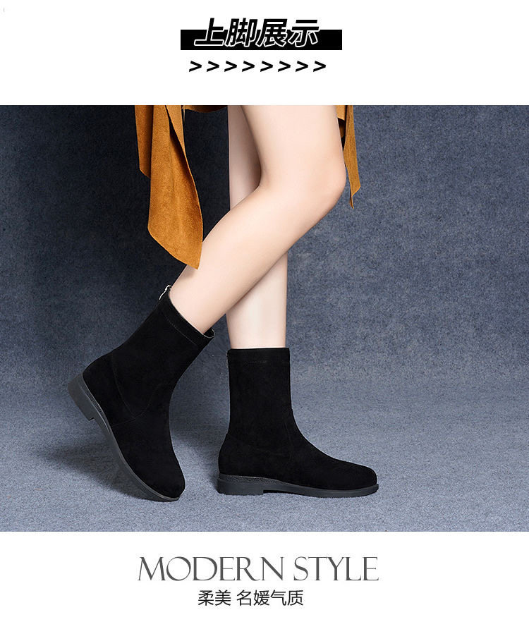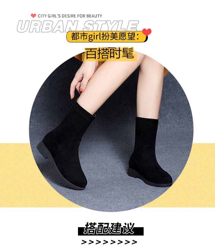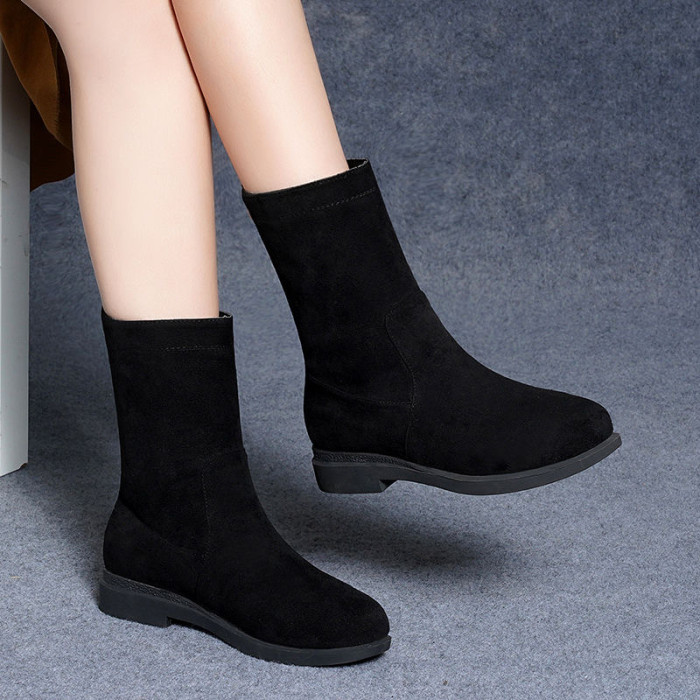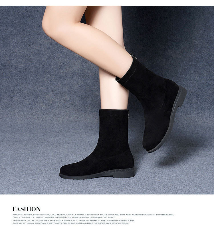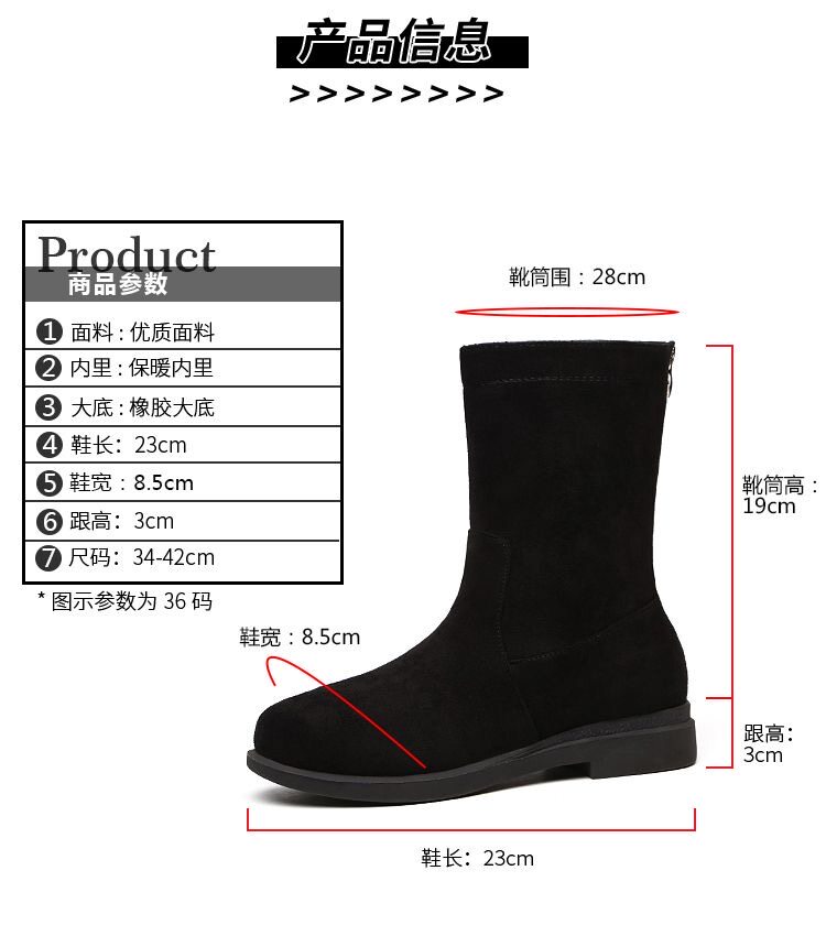 品牌特價靴子女2025秋冬新款低跟粗跟棉靴平底中筒靴加絨保暖棉鞋
