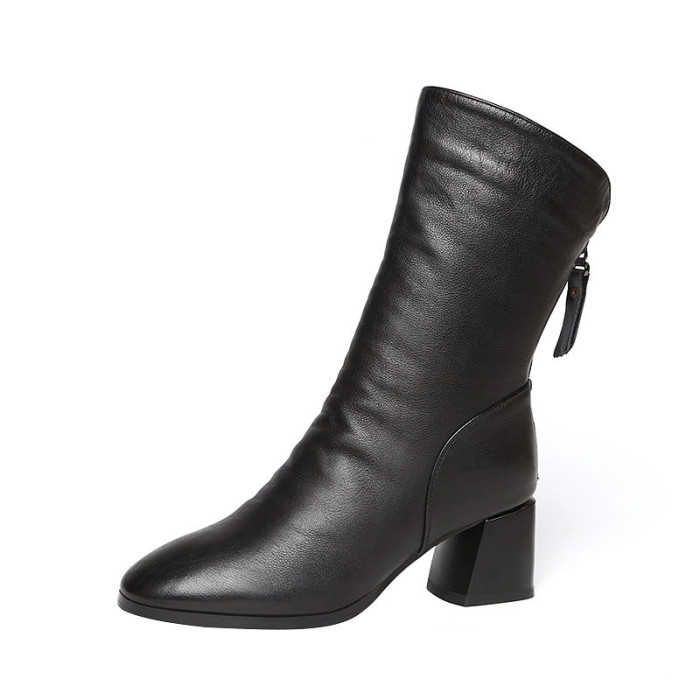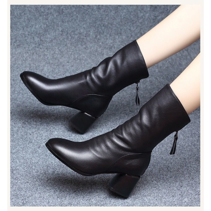 中筒靴女2023新款秋冬季高跟馬丁靴女軟皮粗跟瘦瘦短靴加絨女靴子