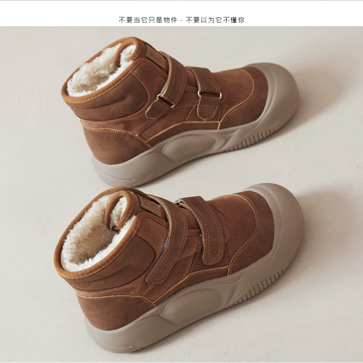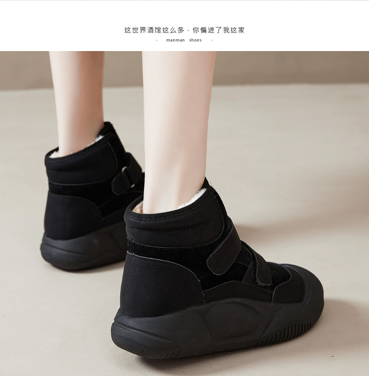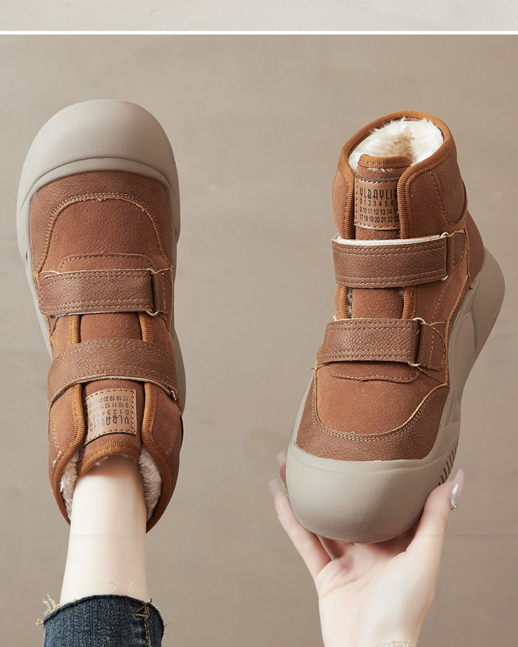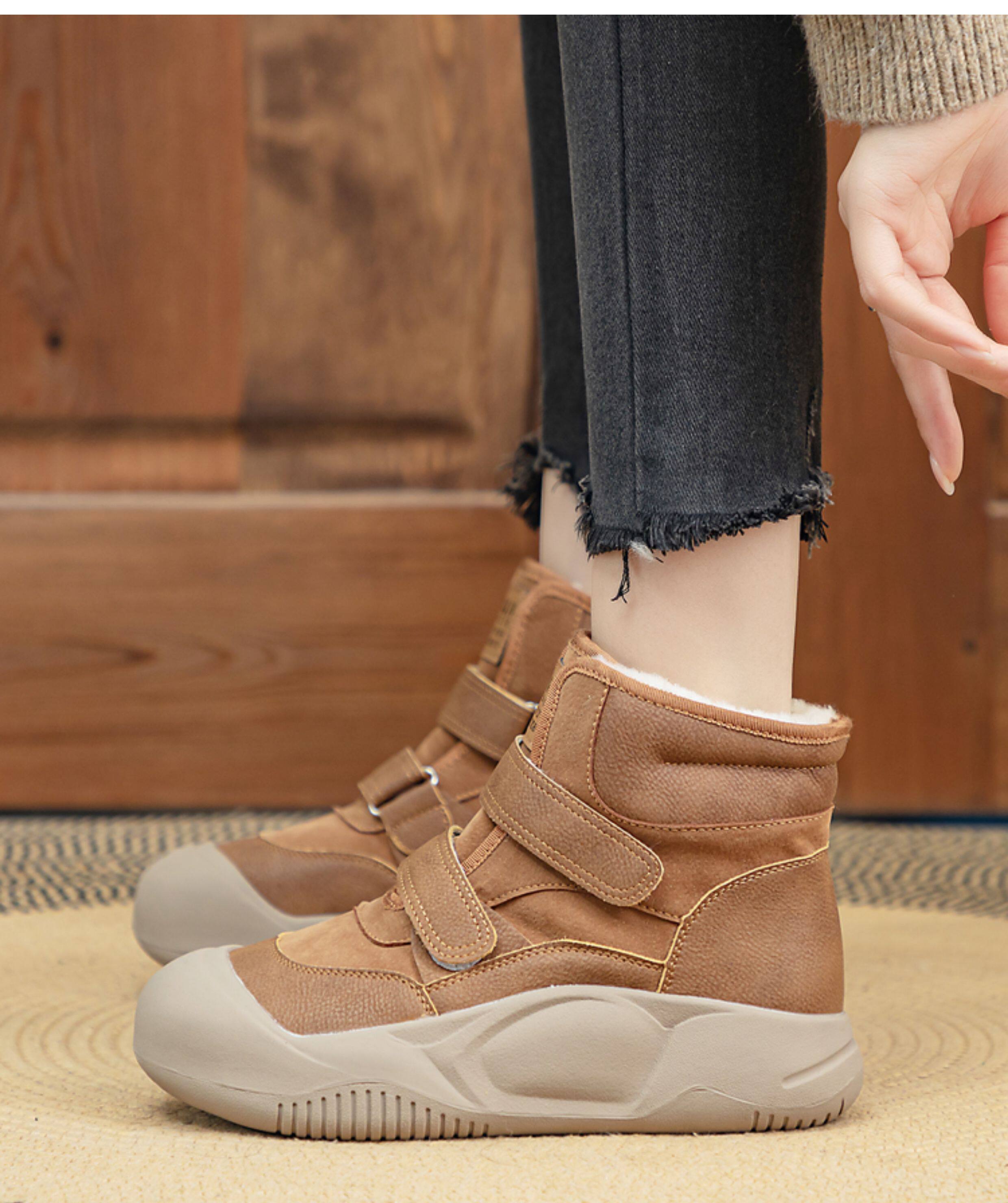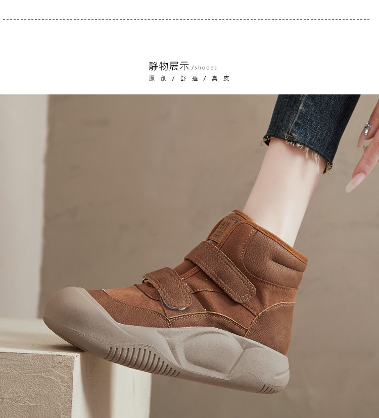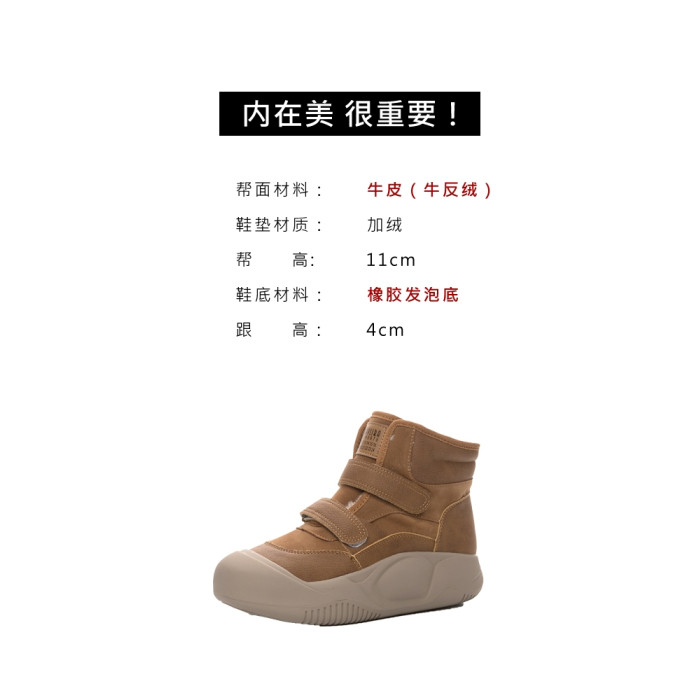 牛皮厚底雪地靴女2026新款冬季加絨加厚棉靴休閒魔術貼高幫鞋短靴