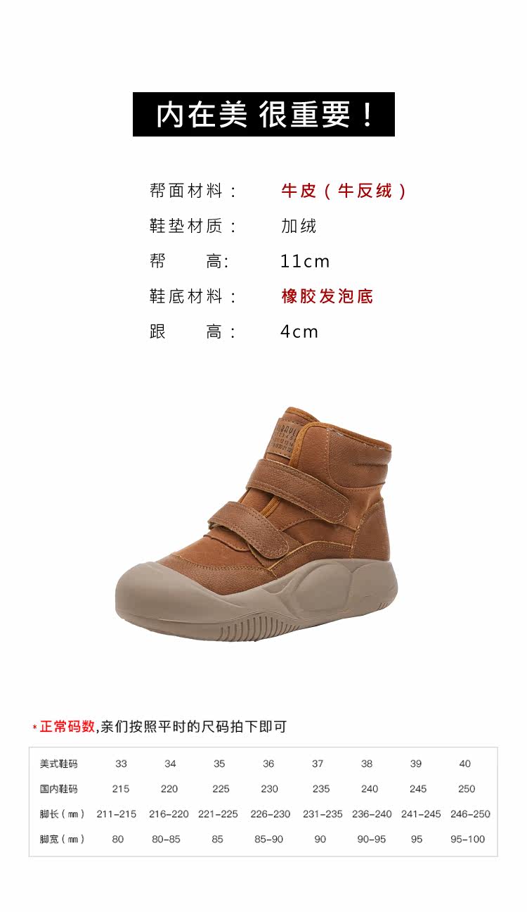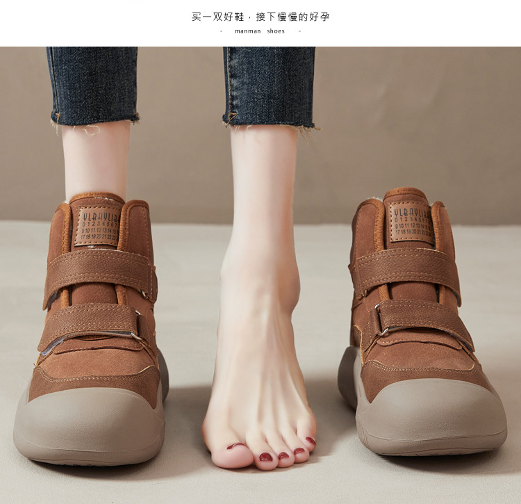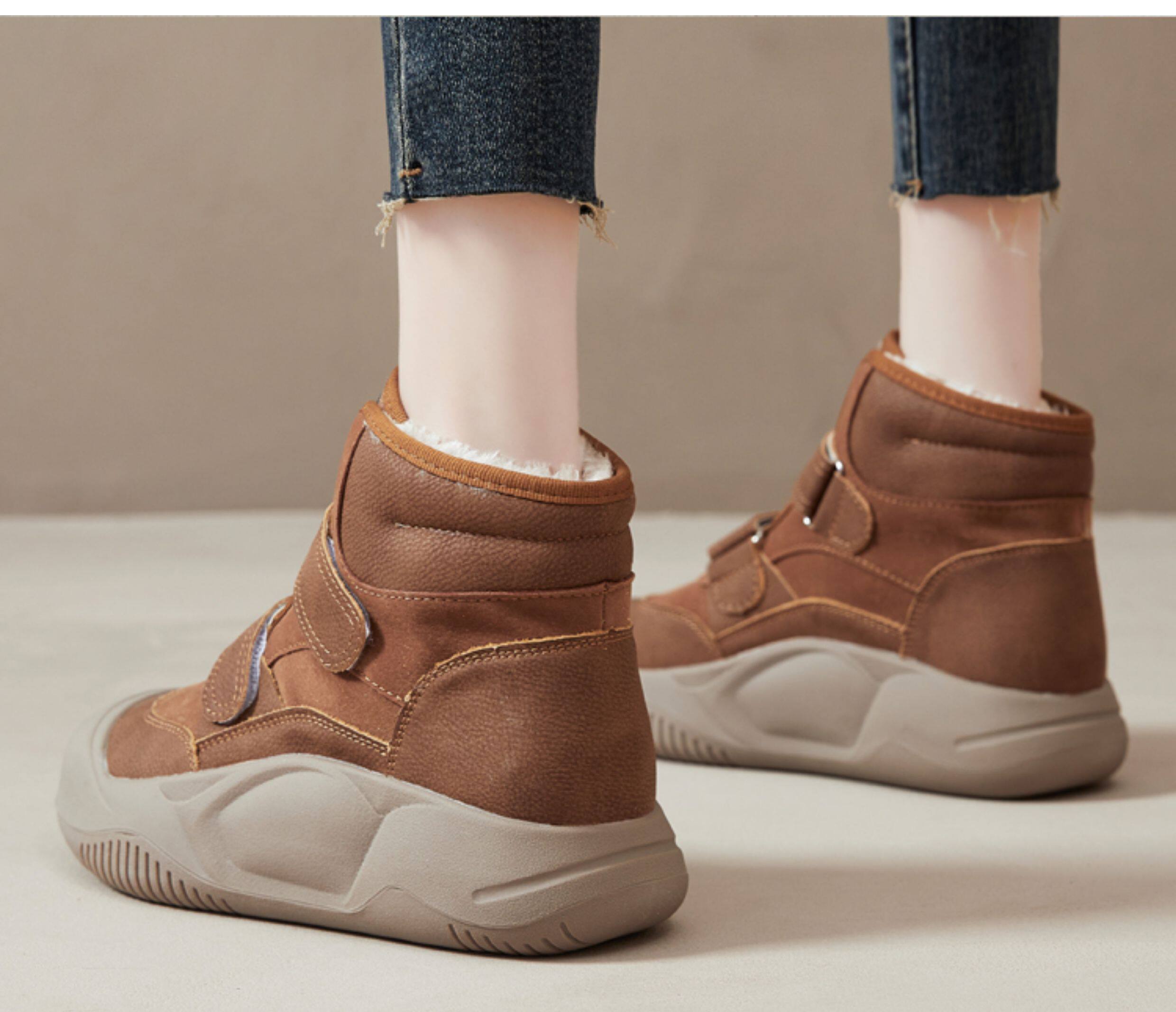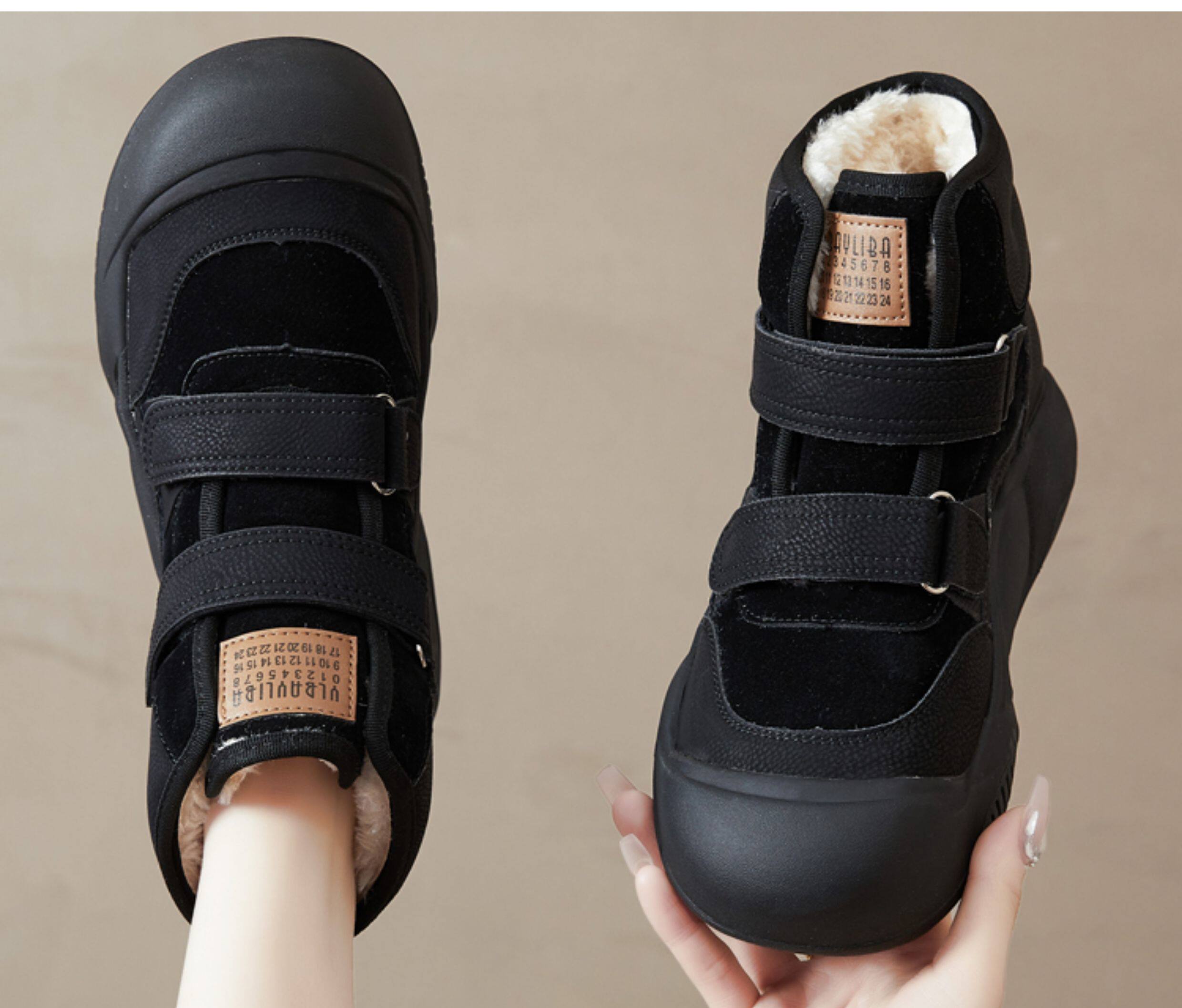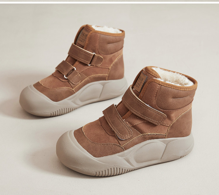牛皮厚底雪地靴女2026新款冬季加絨加厚棉靴休閒魔術貼高幫鞋短靴