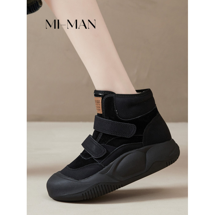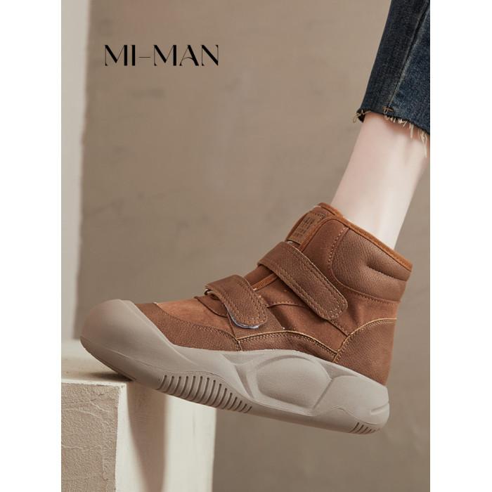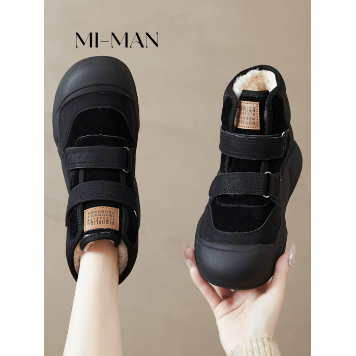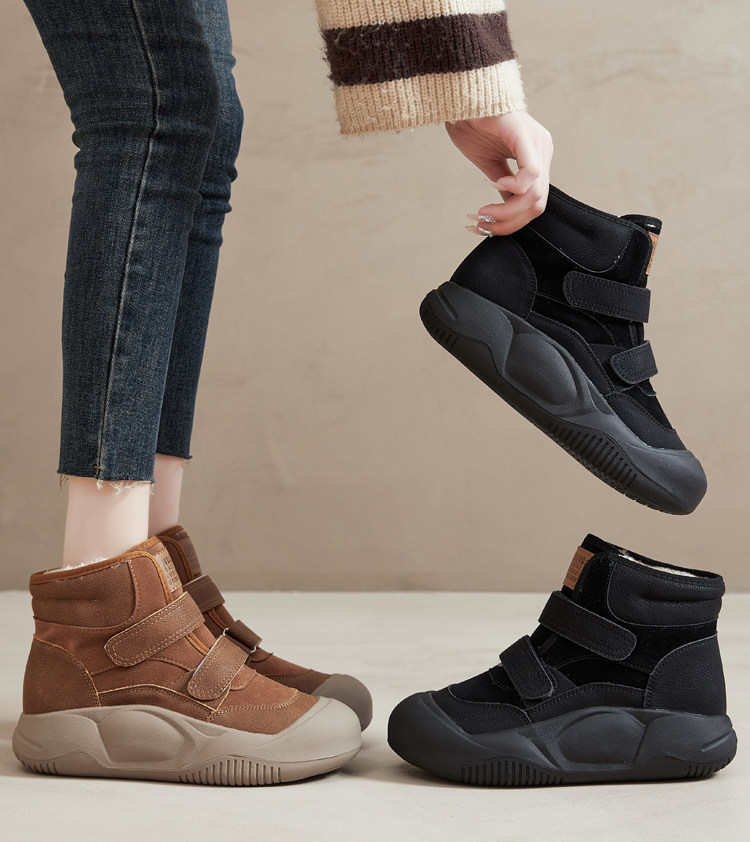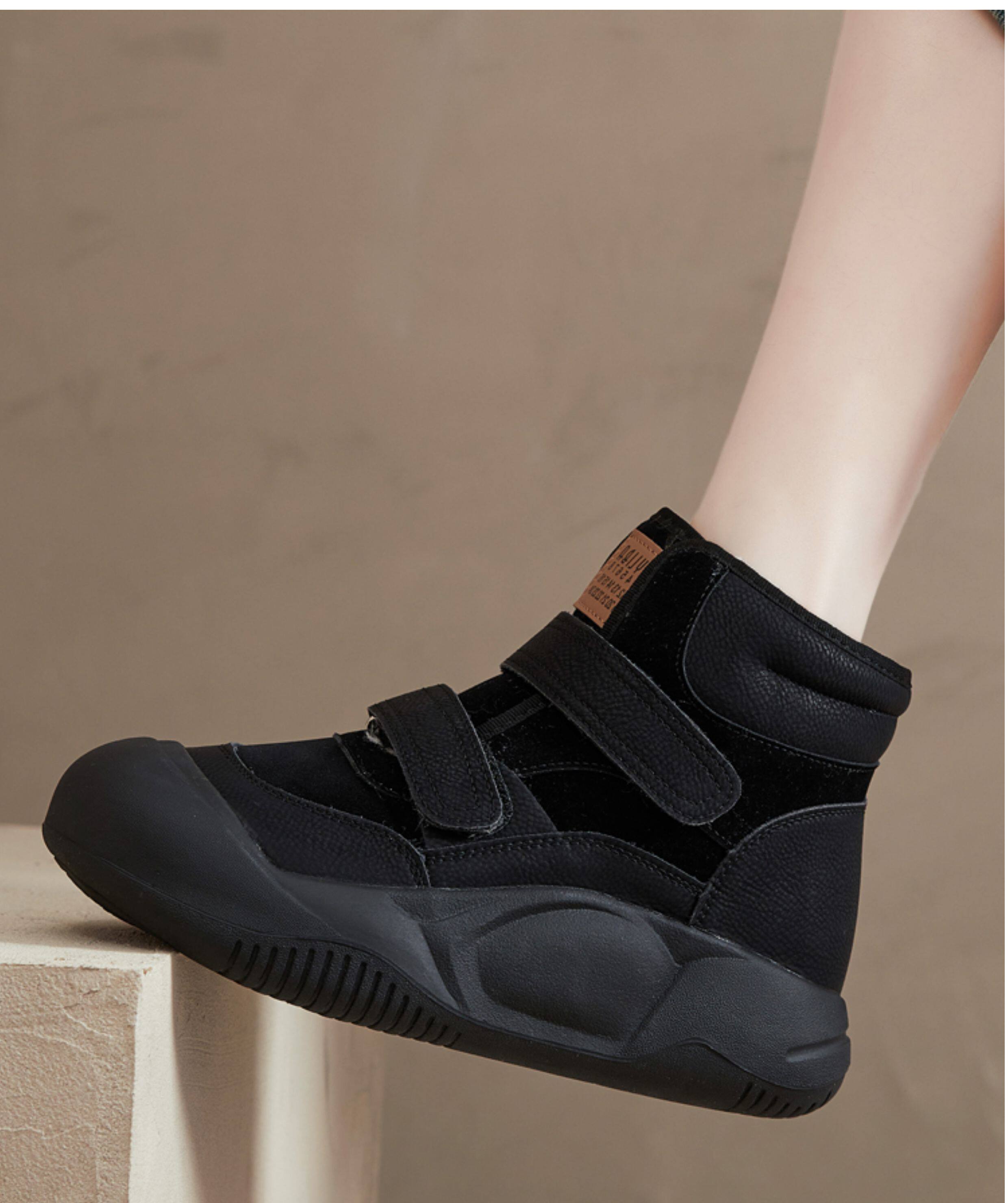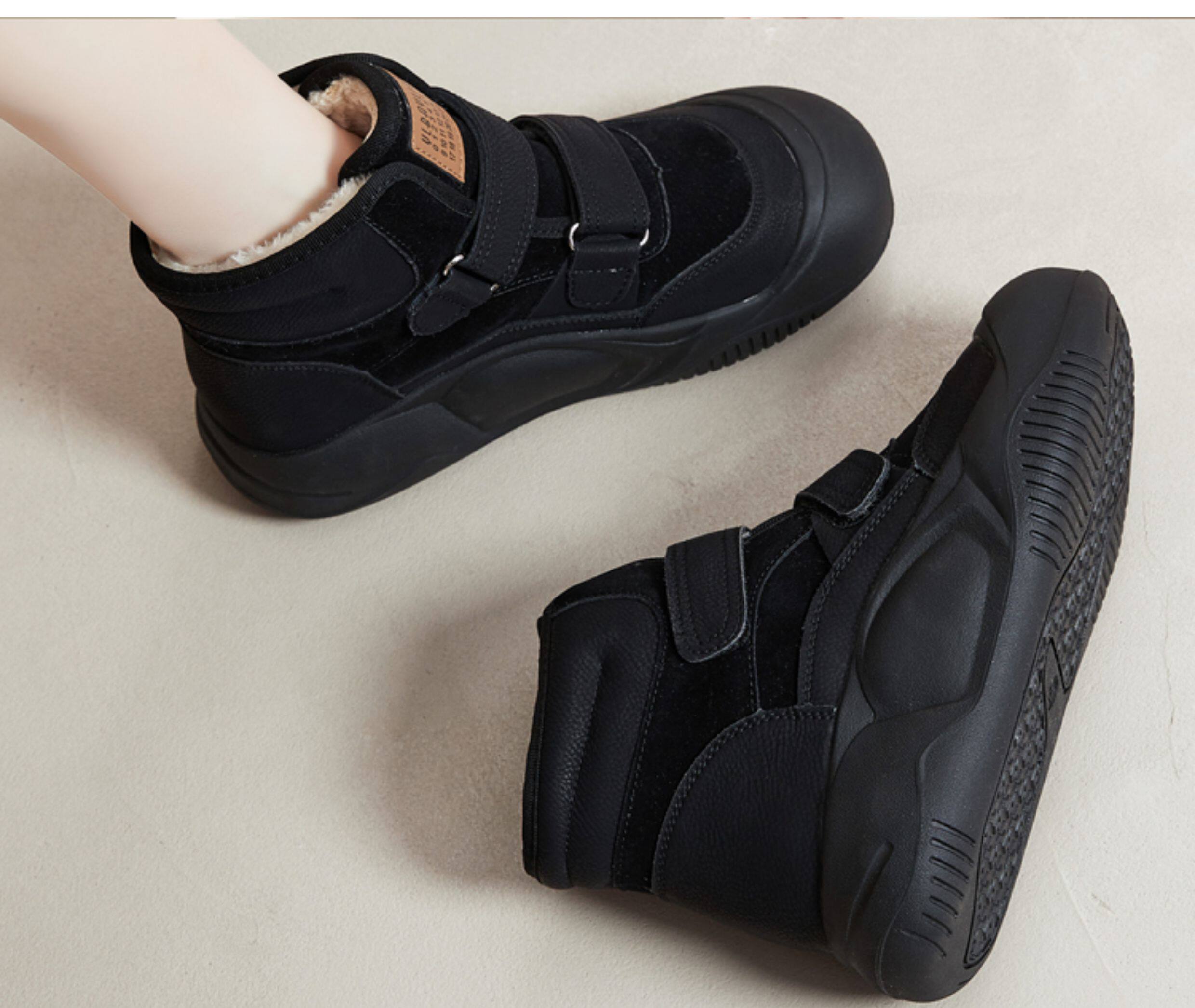 牛皮厚底雪地靴女2026新款冬季加絨加厚棉靴休閒魔術貼高幫鞋短靴