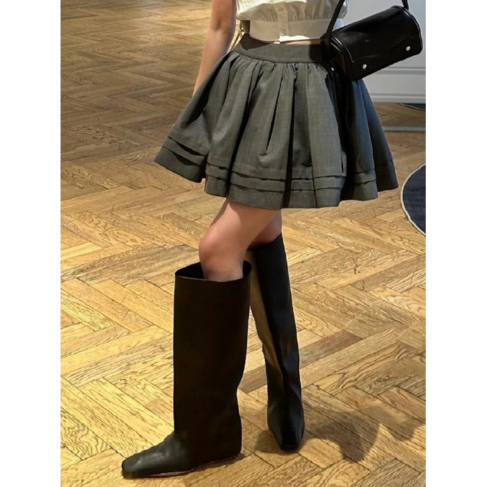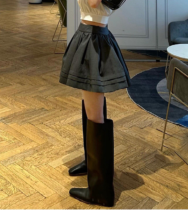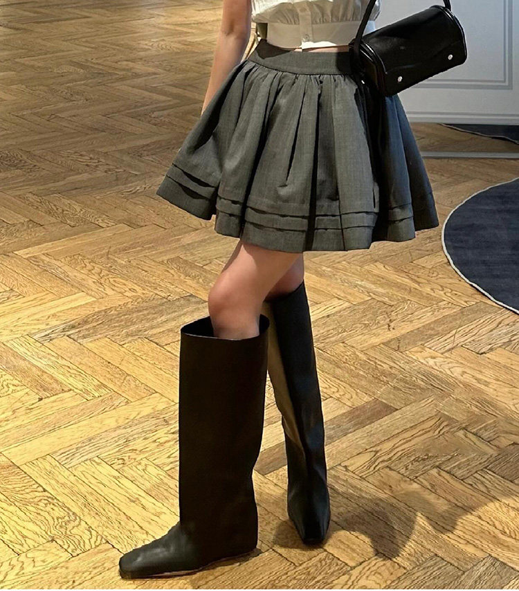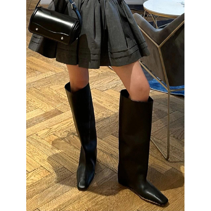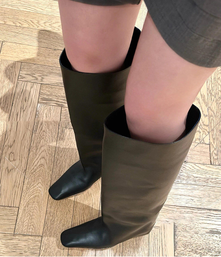 牛皮~英倫風小方頭菸筒褲琯靴女2024新款時尚個性內增騎士長筒靴