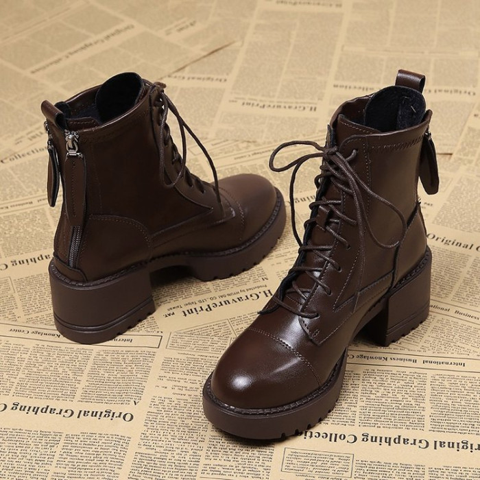 系帶馬丁靴女2025秋冬新款雙拉鍊瘦瘦靴粗跟小個子英倫風高跟短靴