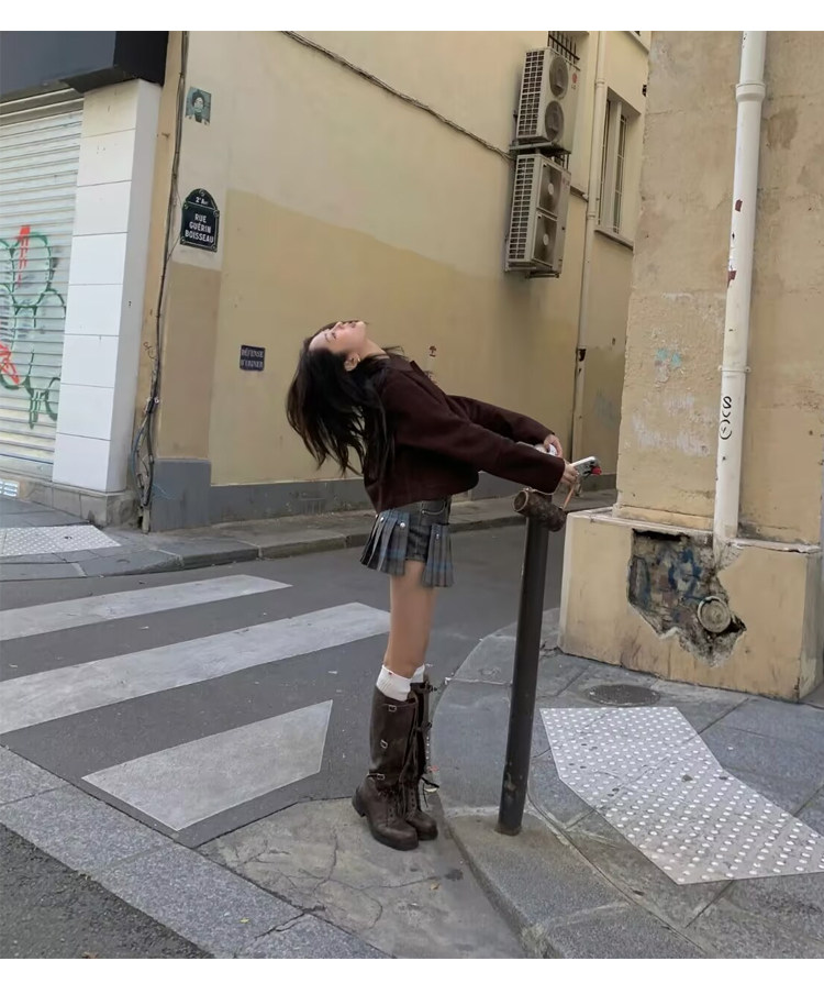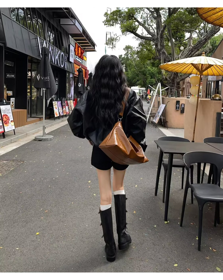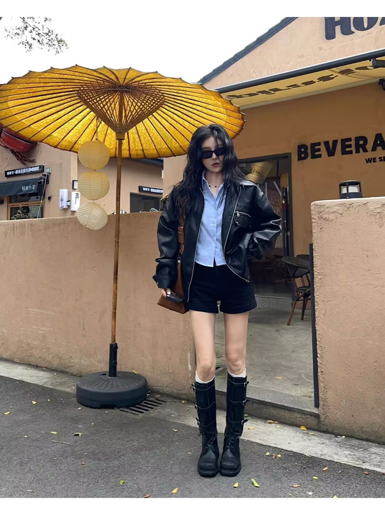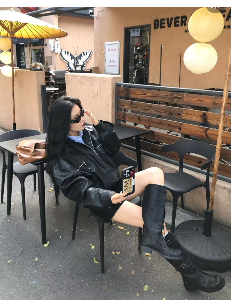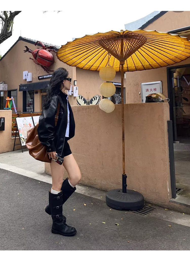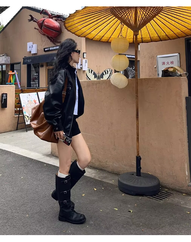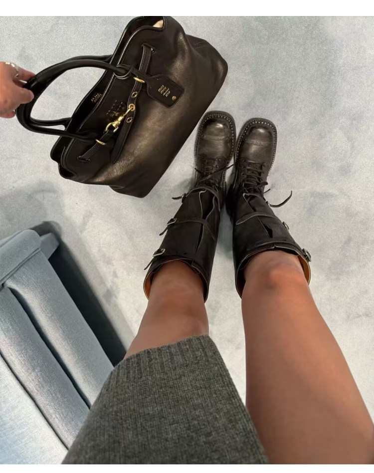 miu騎士靴黑色不過膝機車長靴女真皮綁帶復古加絨大碼西部牛仔靴