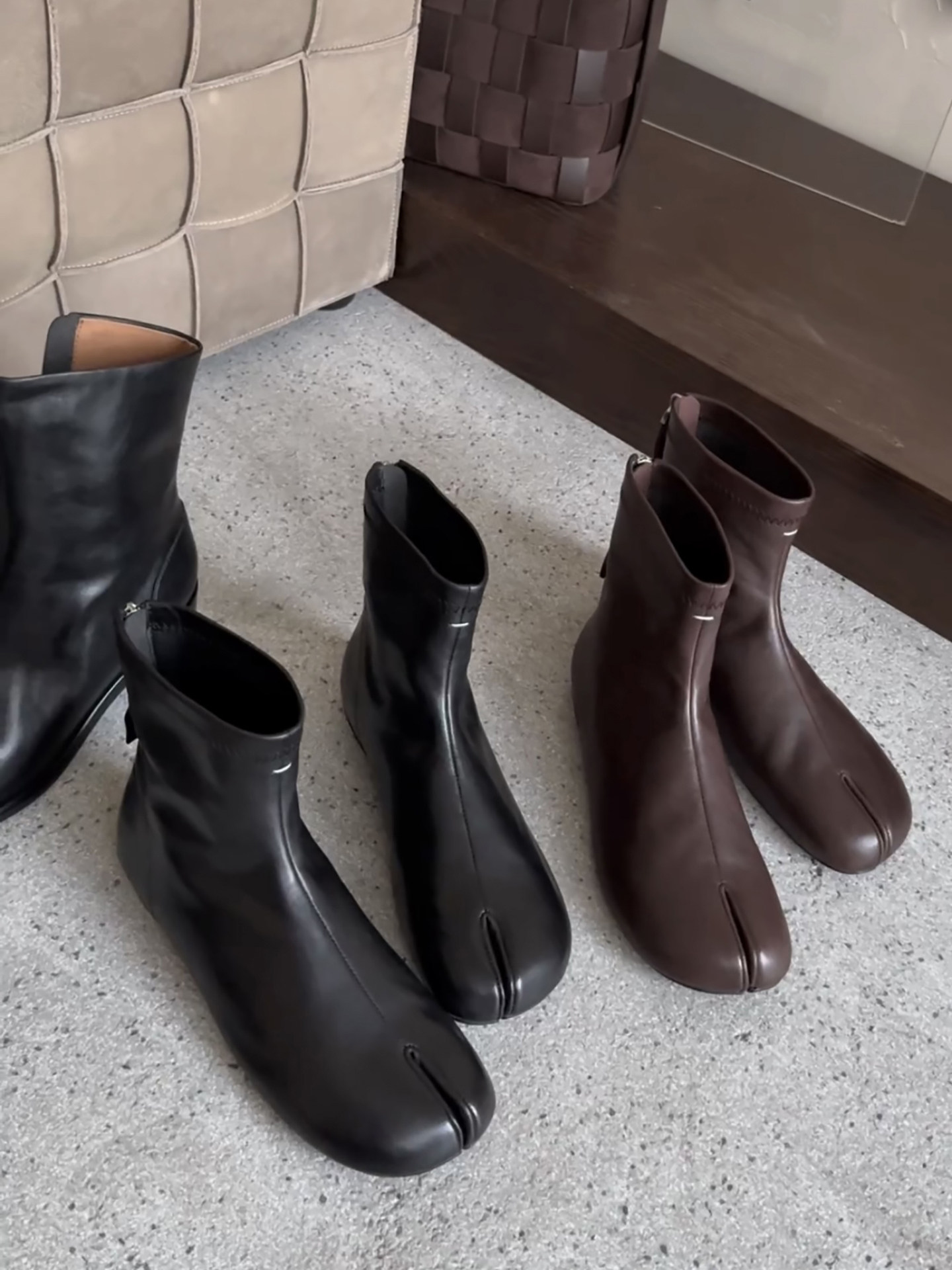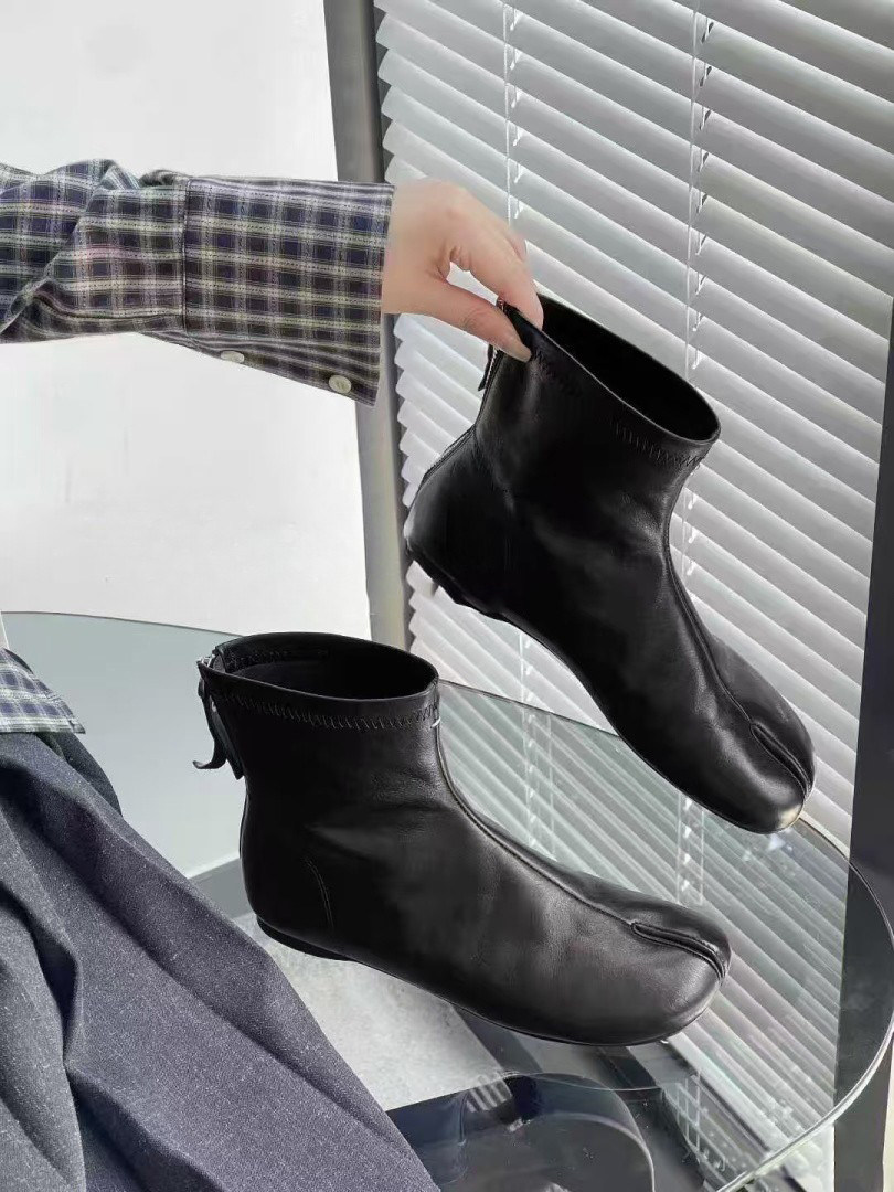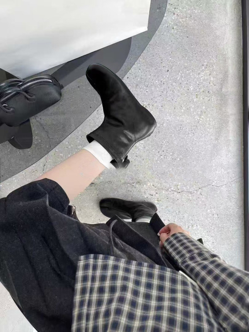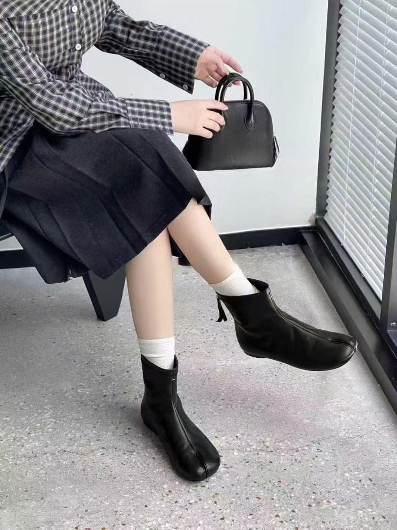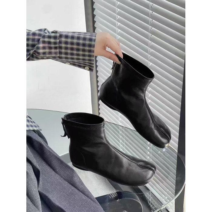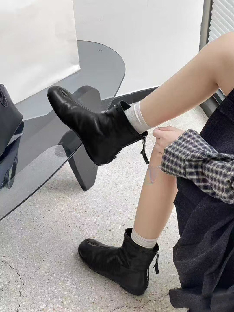 赫本風秋冬新款豬蹄分趾後拉鍊短筒菸筒瘦瘦靴女時尚百搭低跟短靴