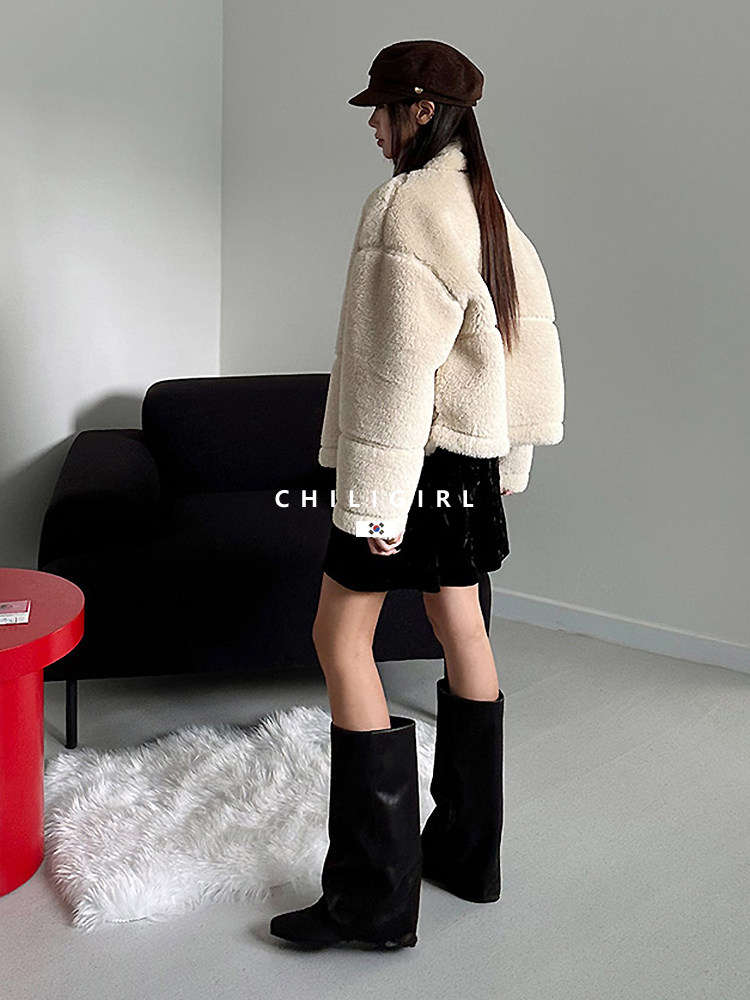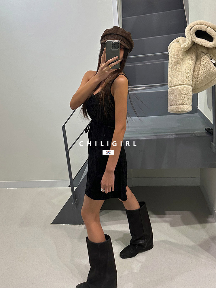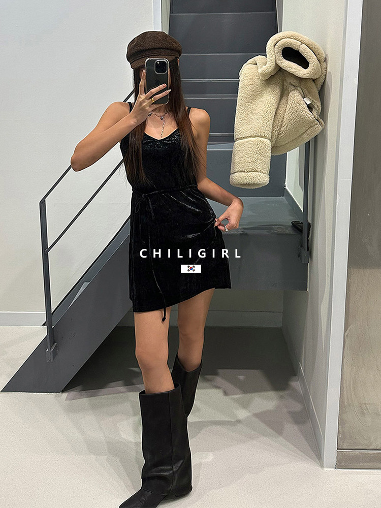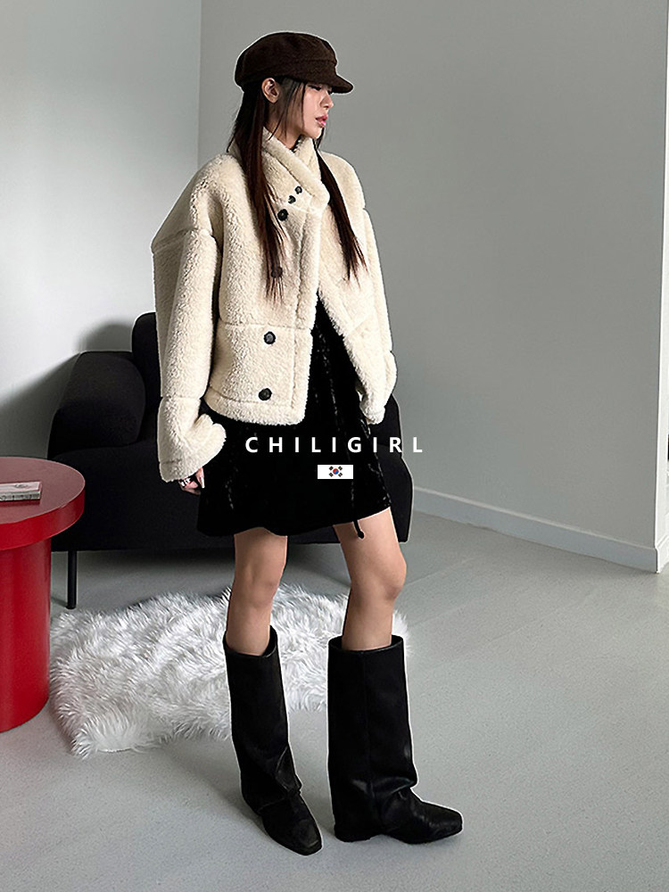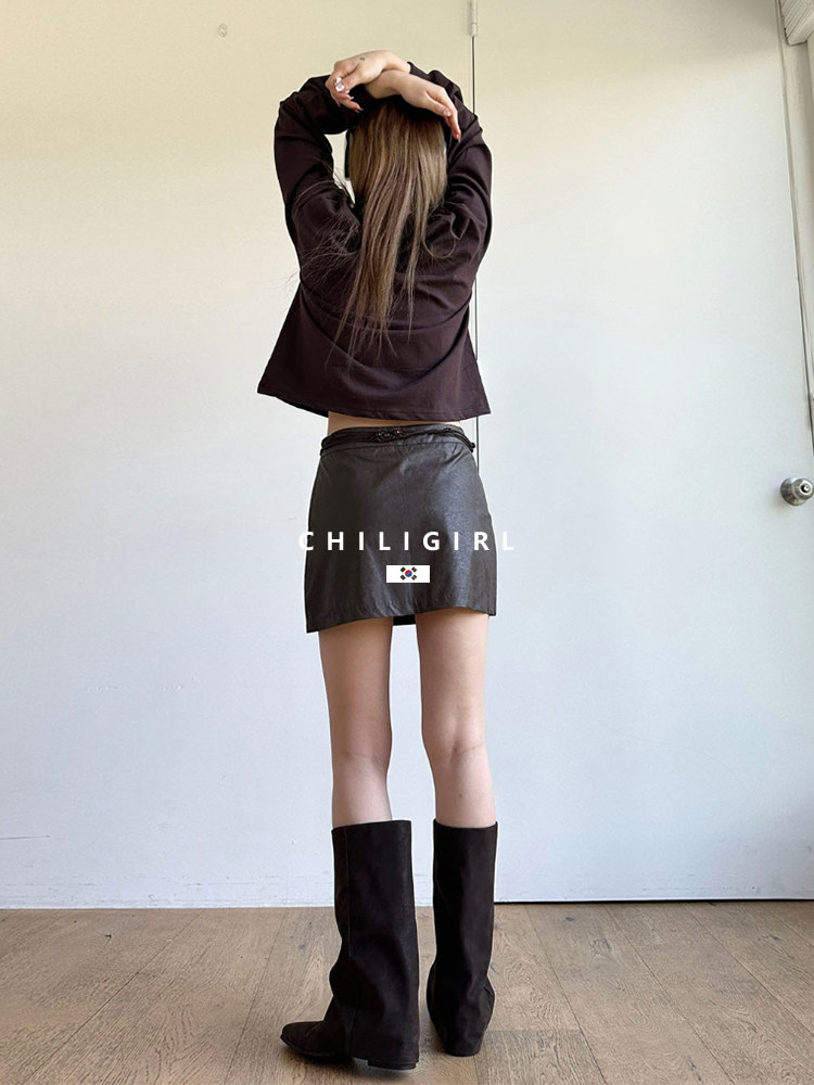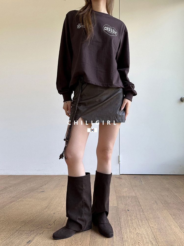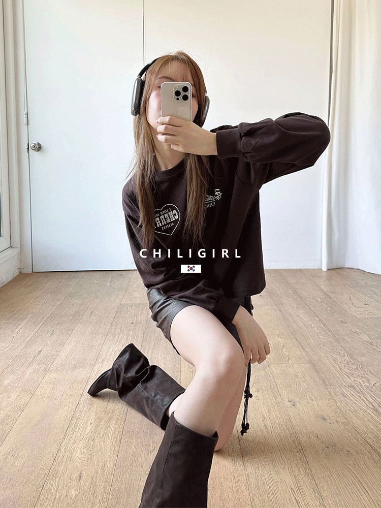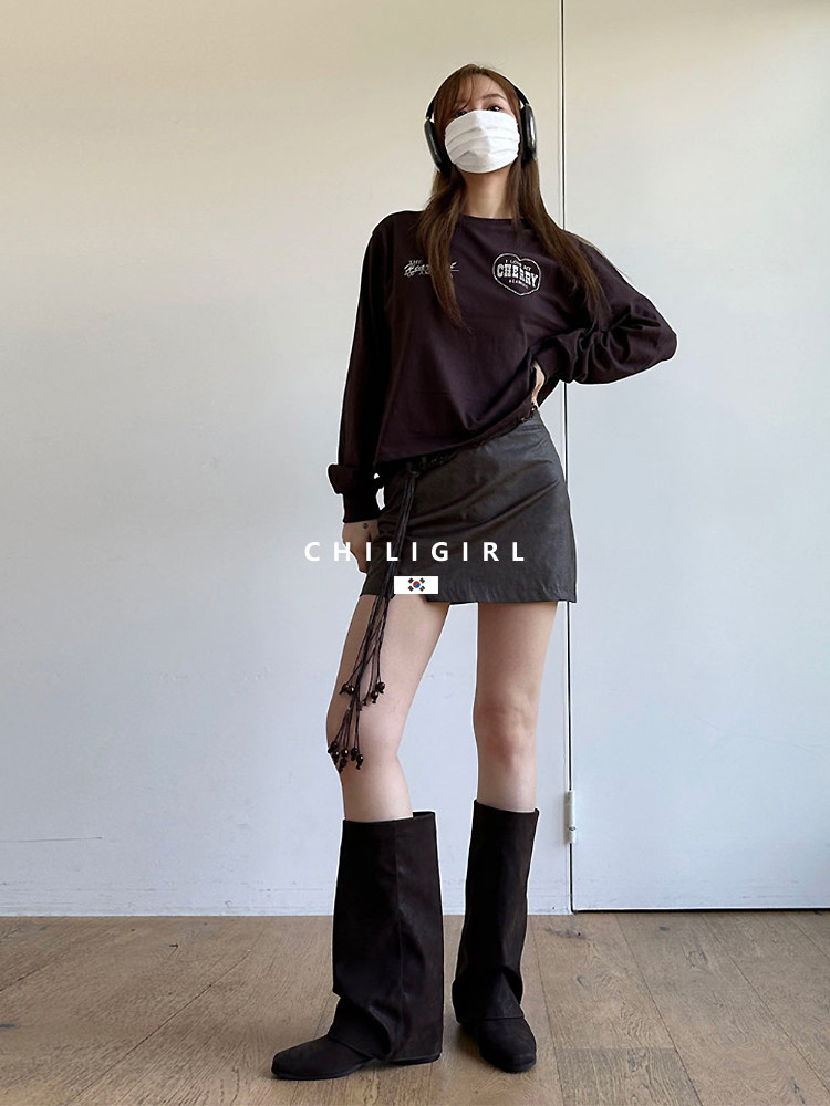 CHILIGIRL褶皺褲琯靴韓國女靴美拉德棕色套筒直腿辣妹不過膝長靴