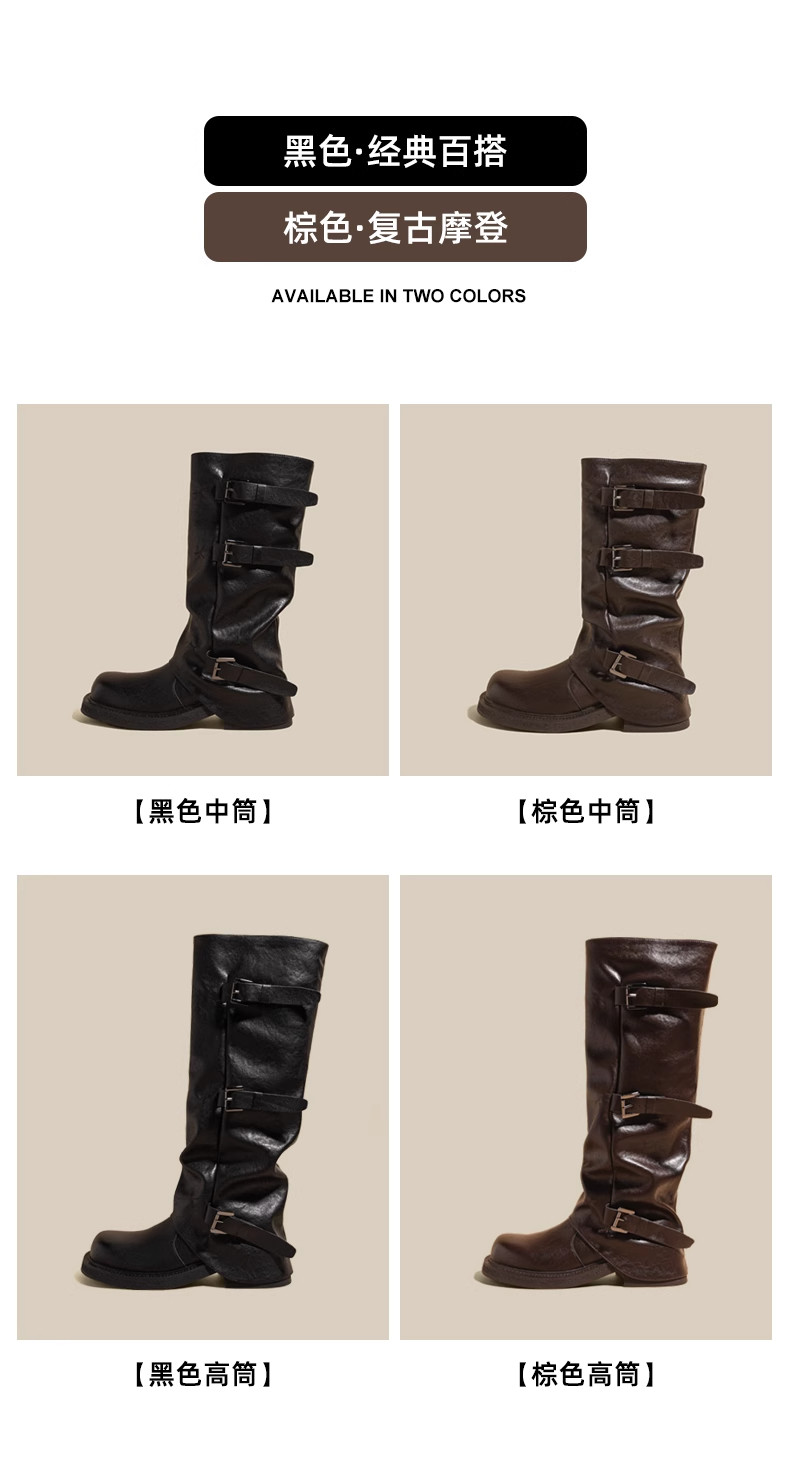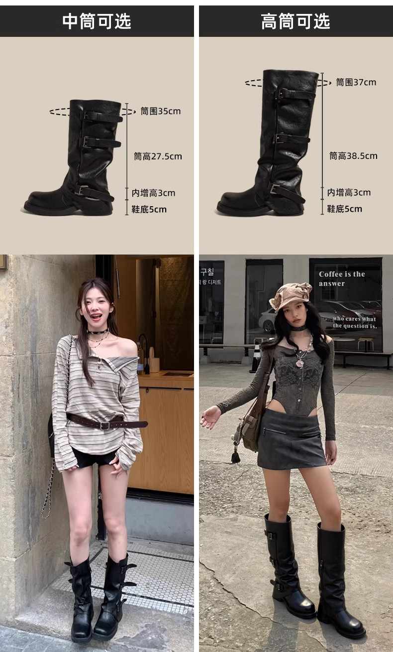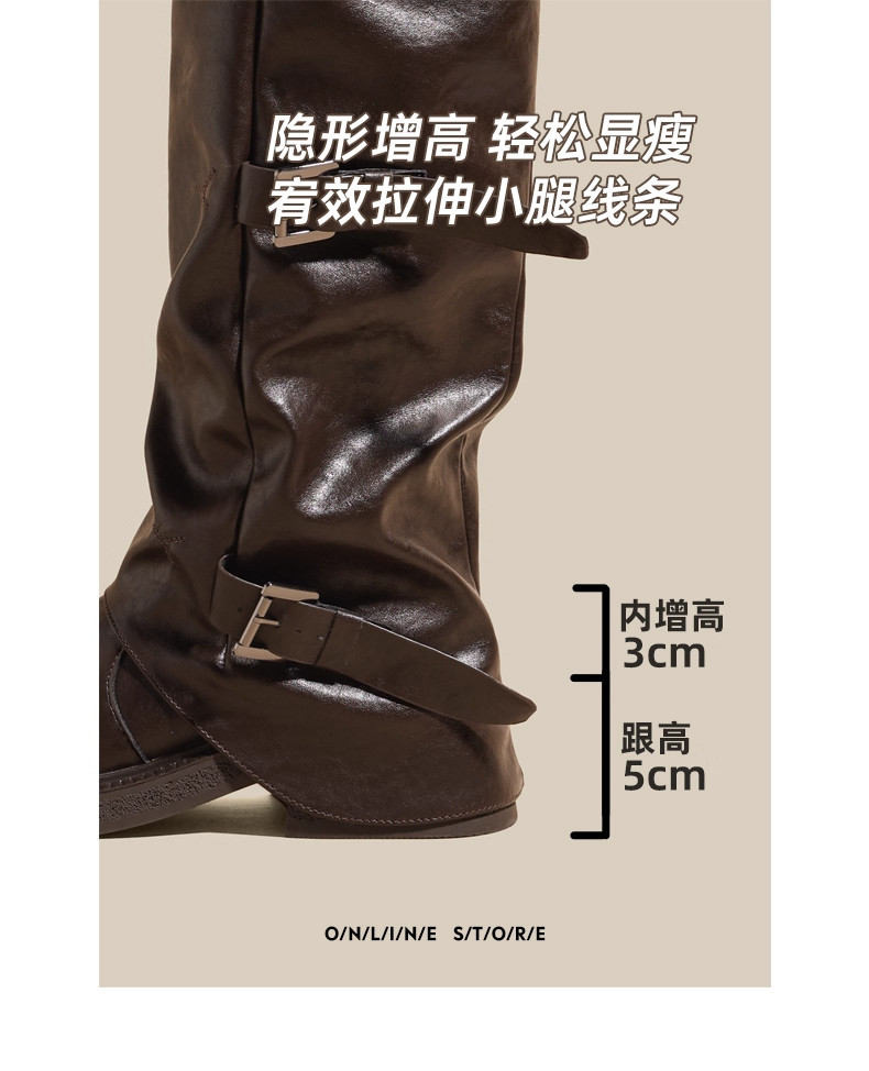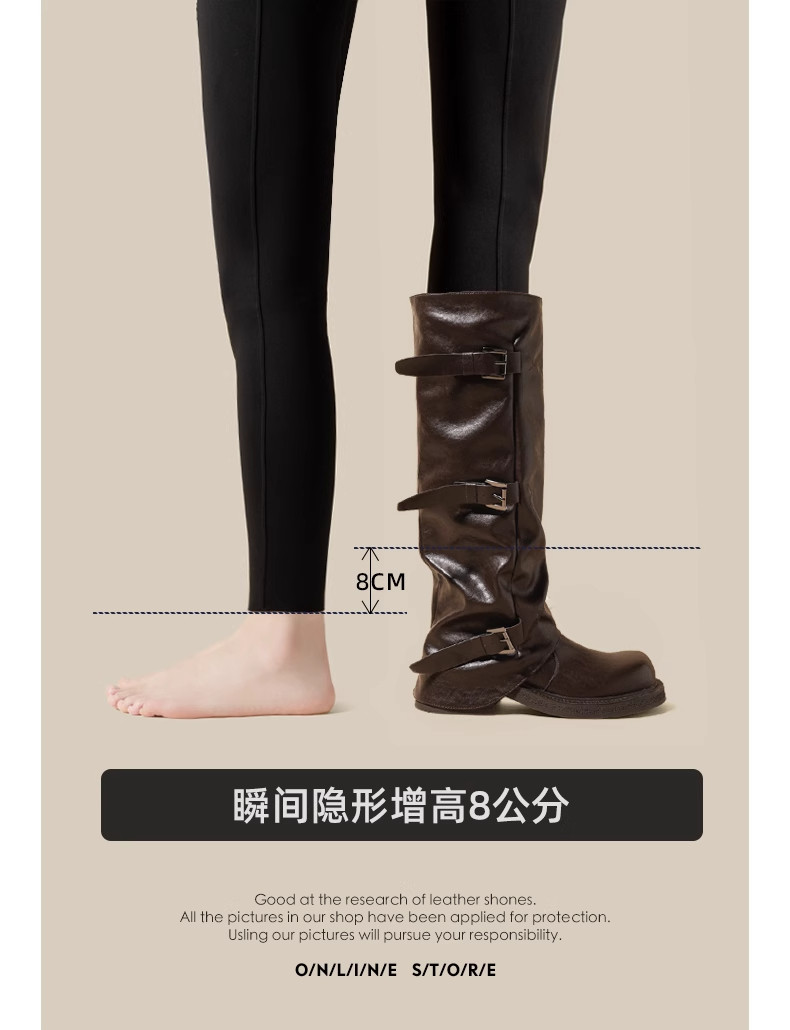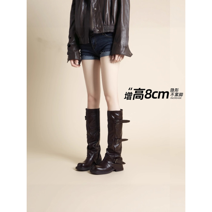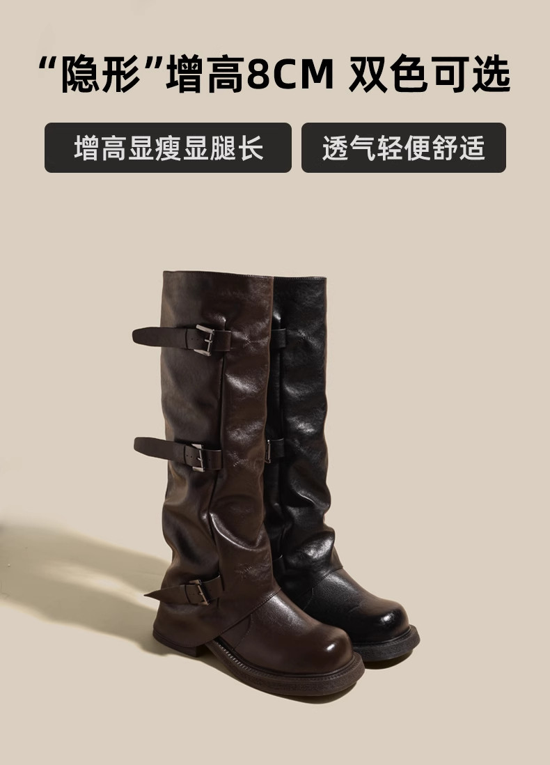 8cm內增高騎士靴女2026新款秋冬厚底皮帶釦褲琯褶皺堆堆長筒靴子
