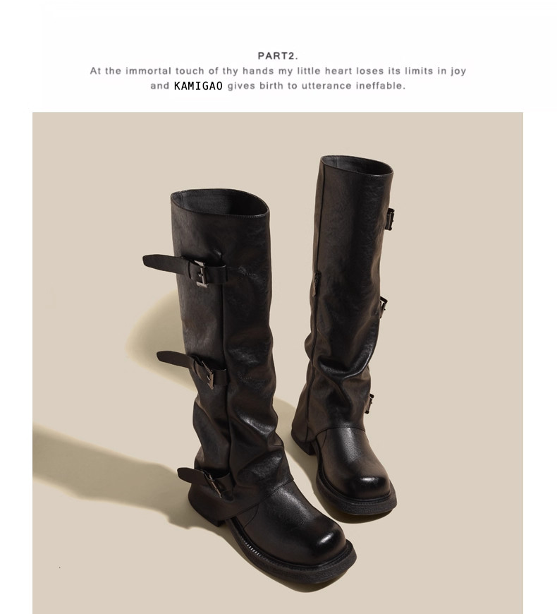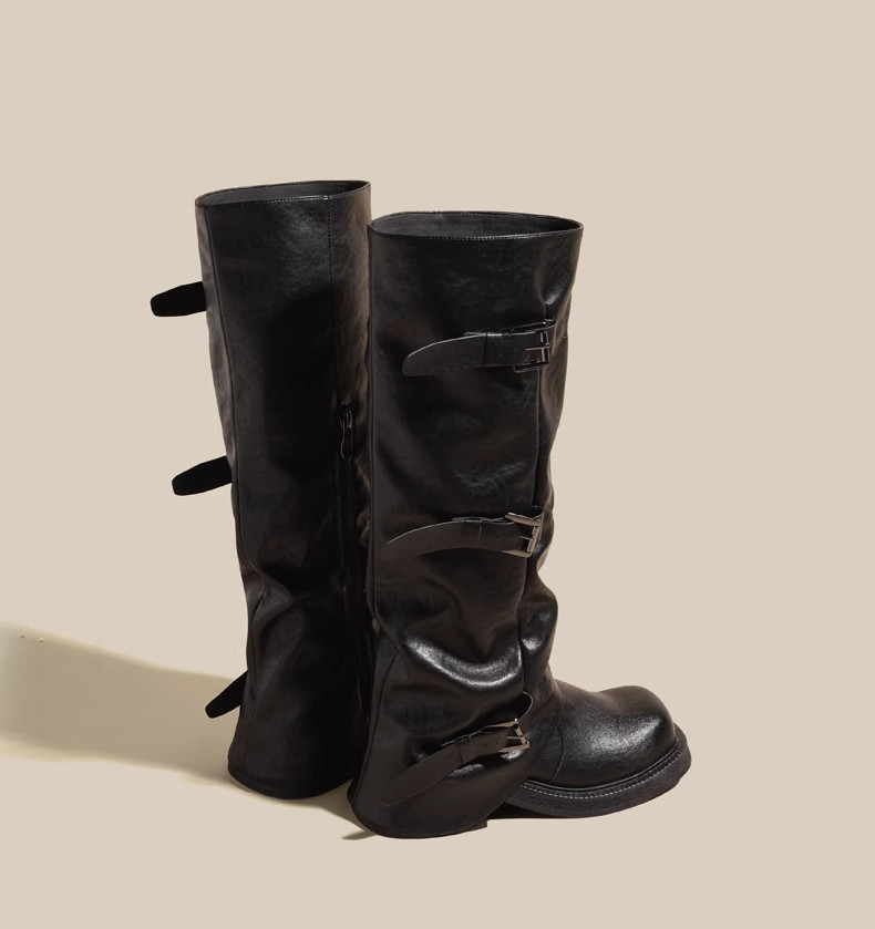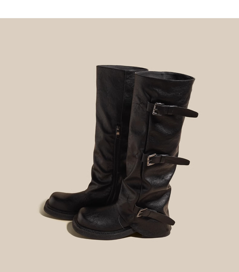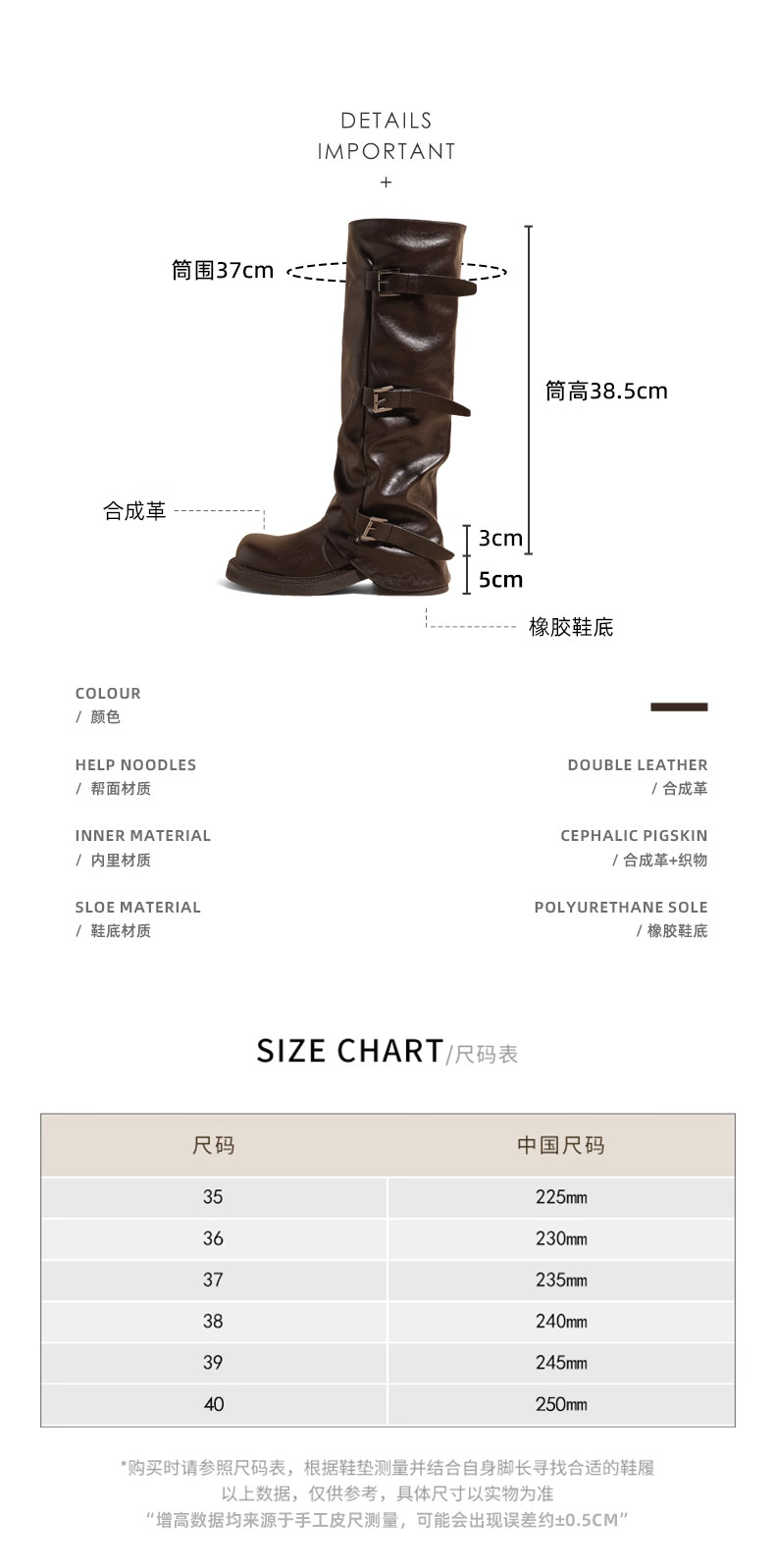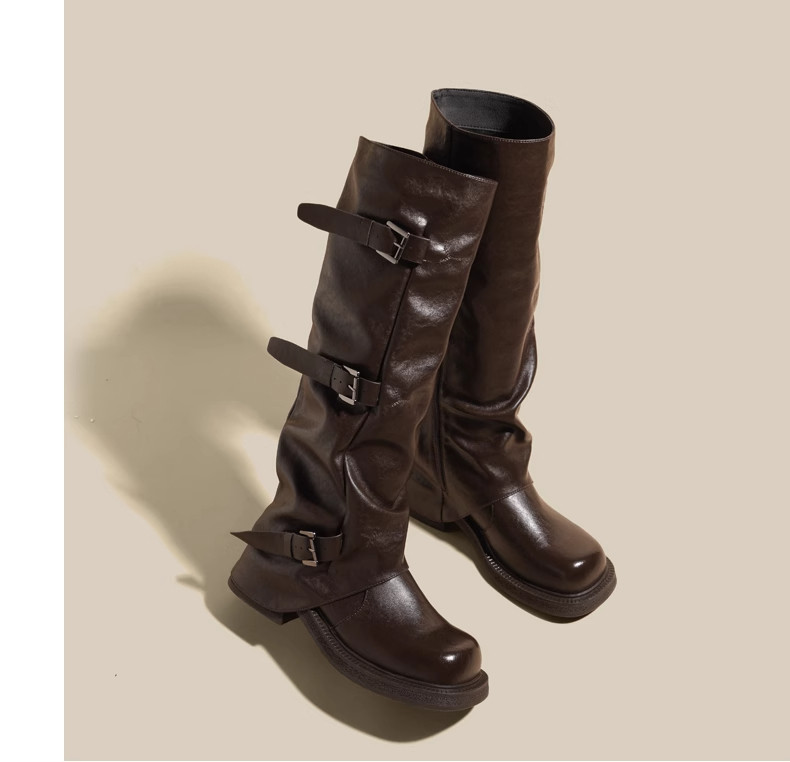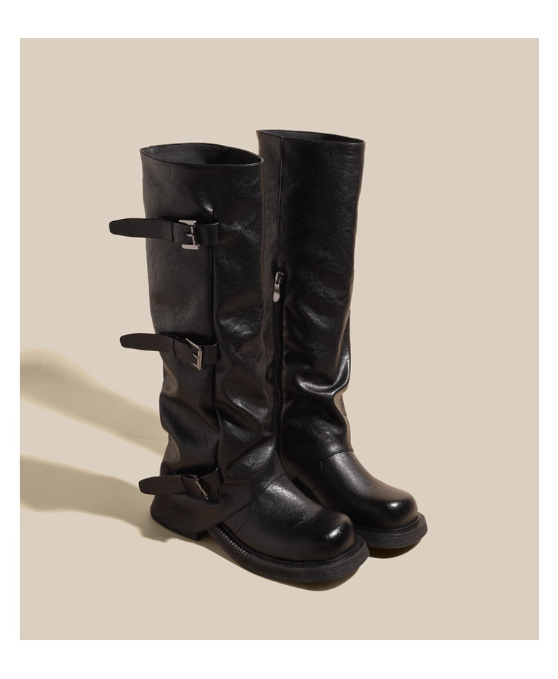 8cm內增高騎士靴女2026新款秋冬厚底皮帶釦褲琯褶皺堆堆長筒靴子