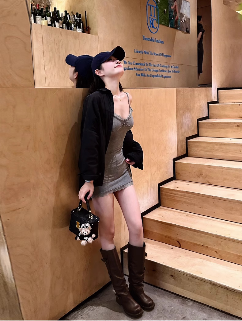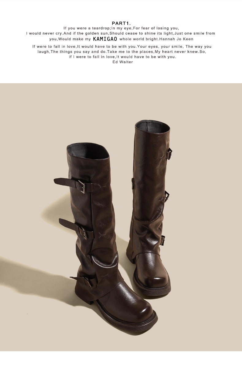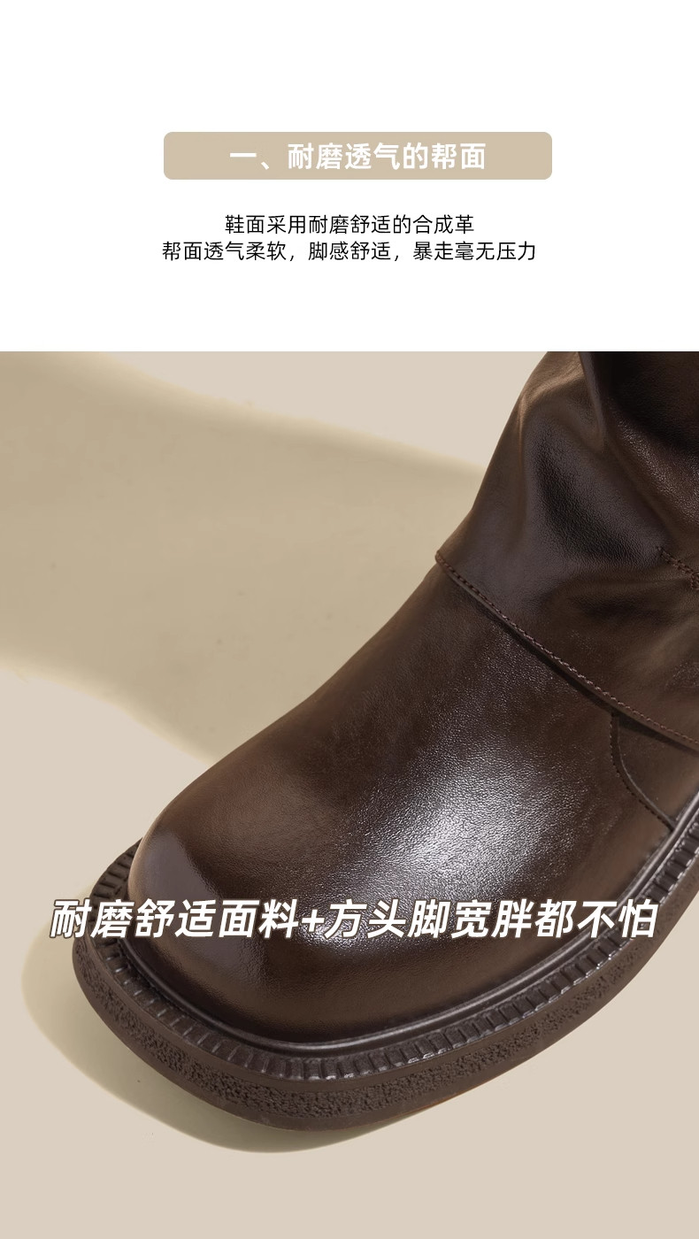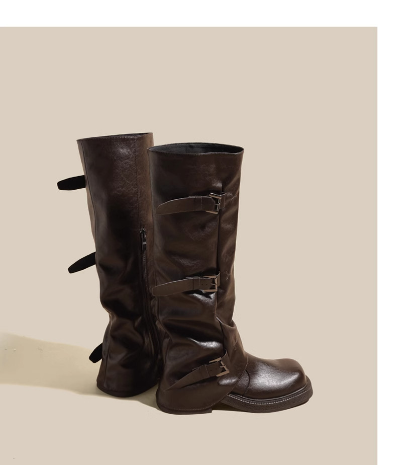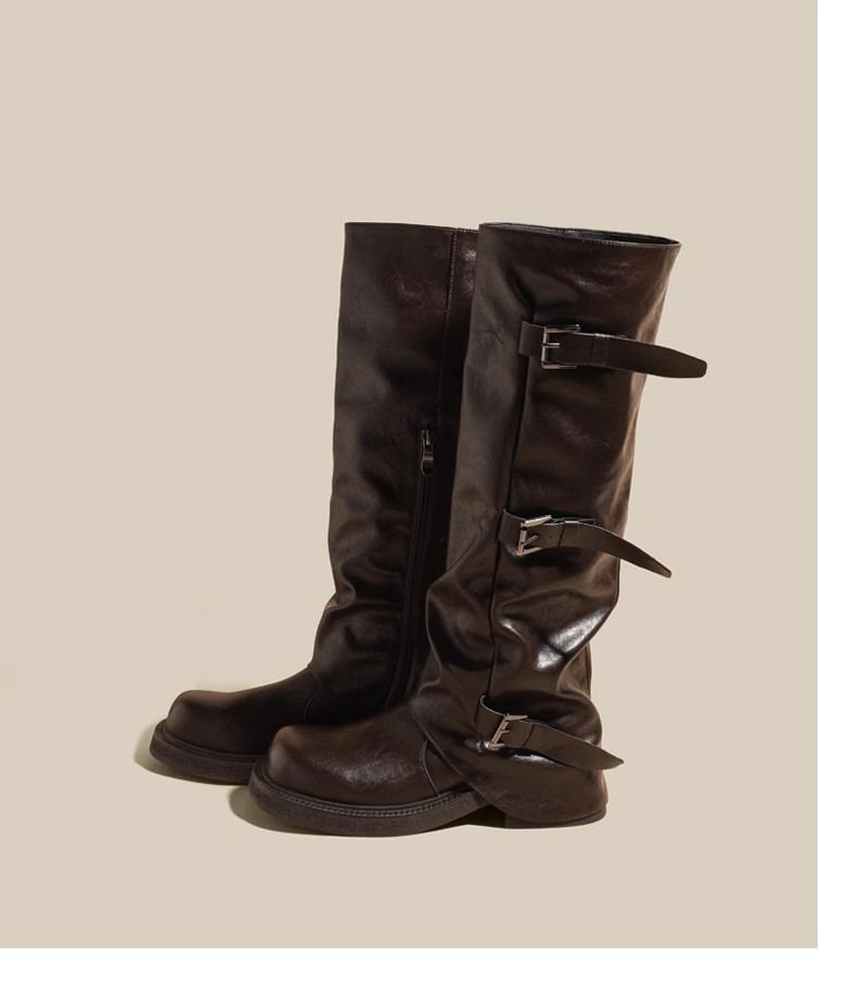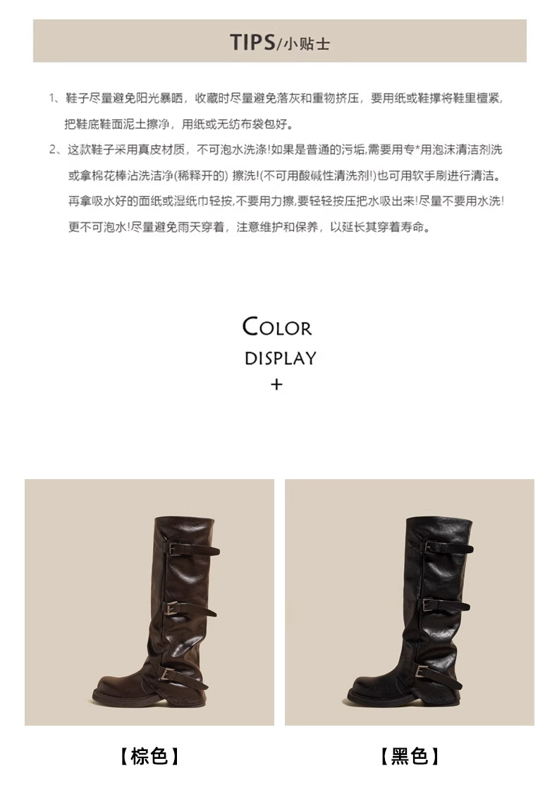 8cm內增高騎士靴女2026新款秋冬厚底皮帶釦褲琯褶皺堆堆長筒靴子
