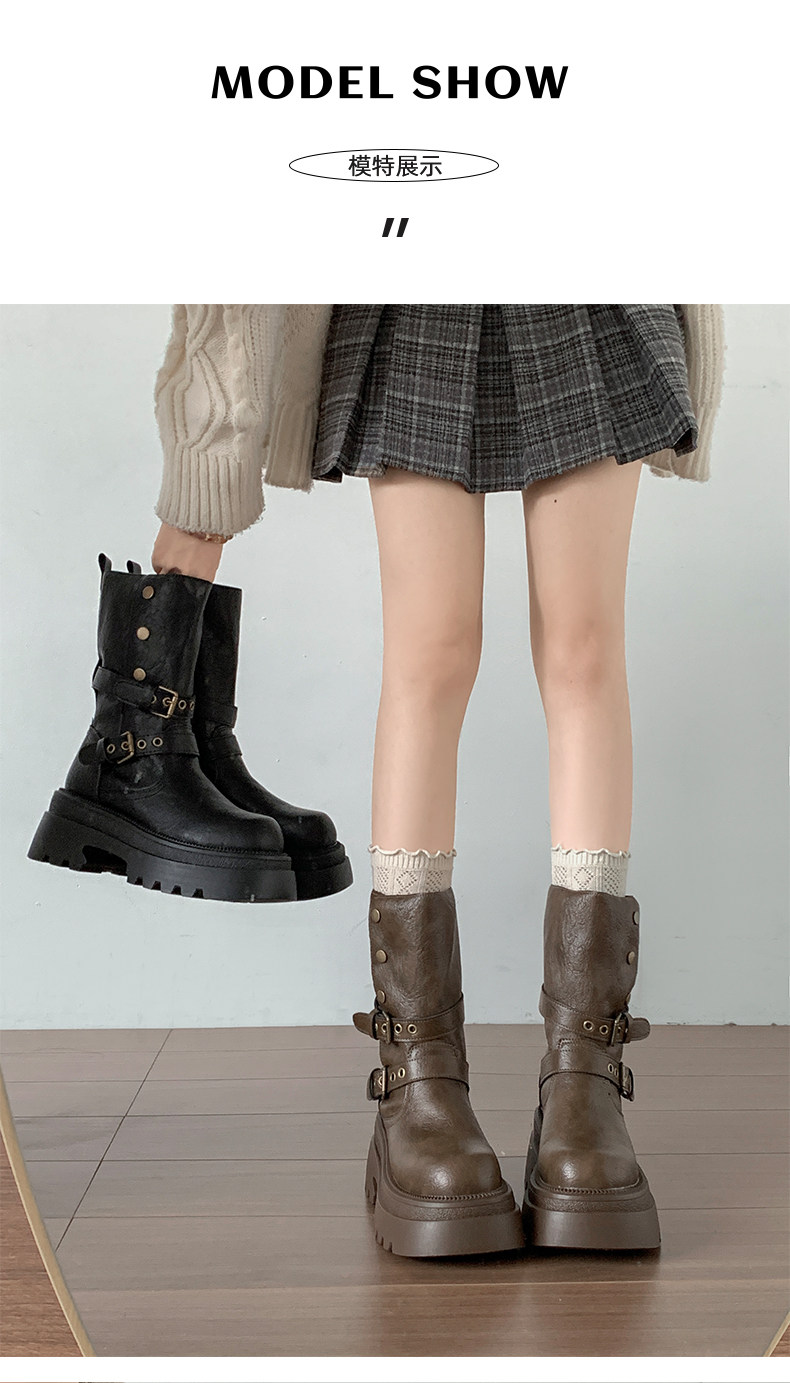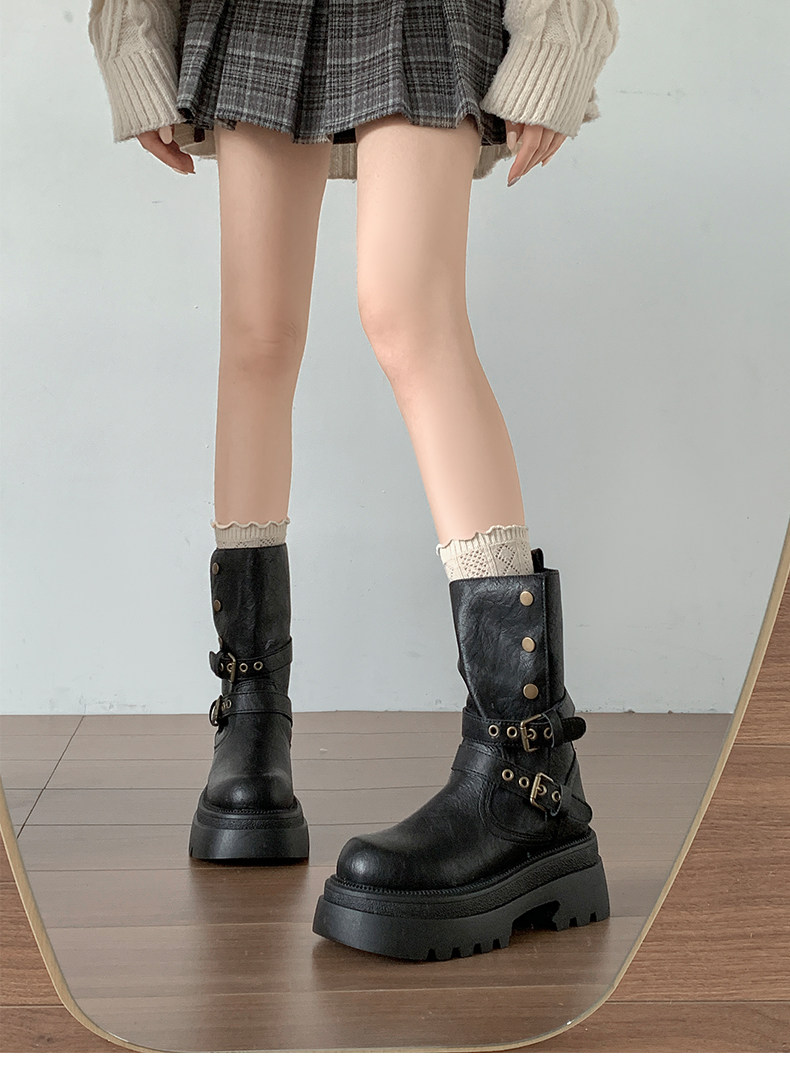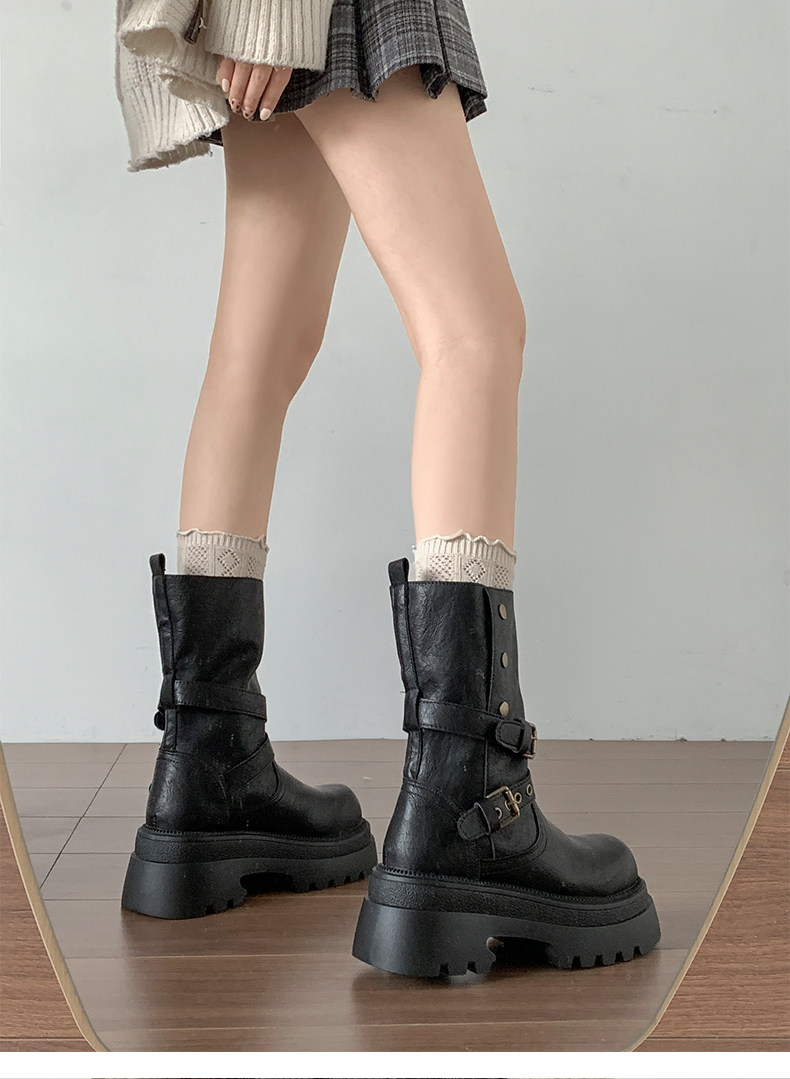 黑色英倫風粗跟厚底馬丁靴女款2026新款秋冬小個子增高顯瘦短靴子