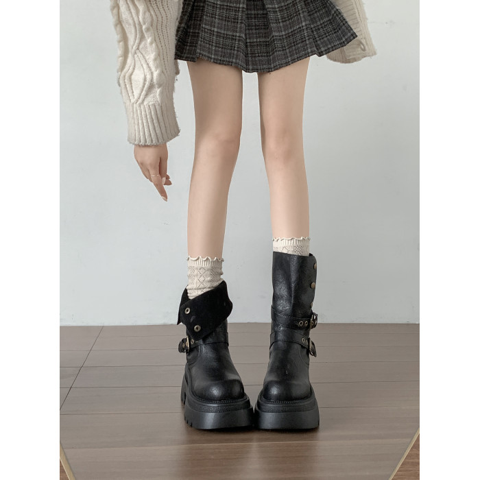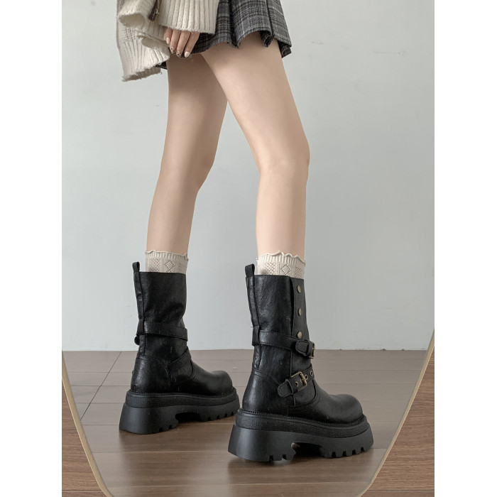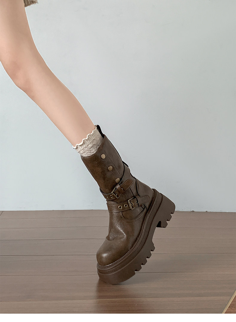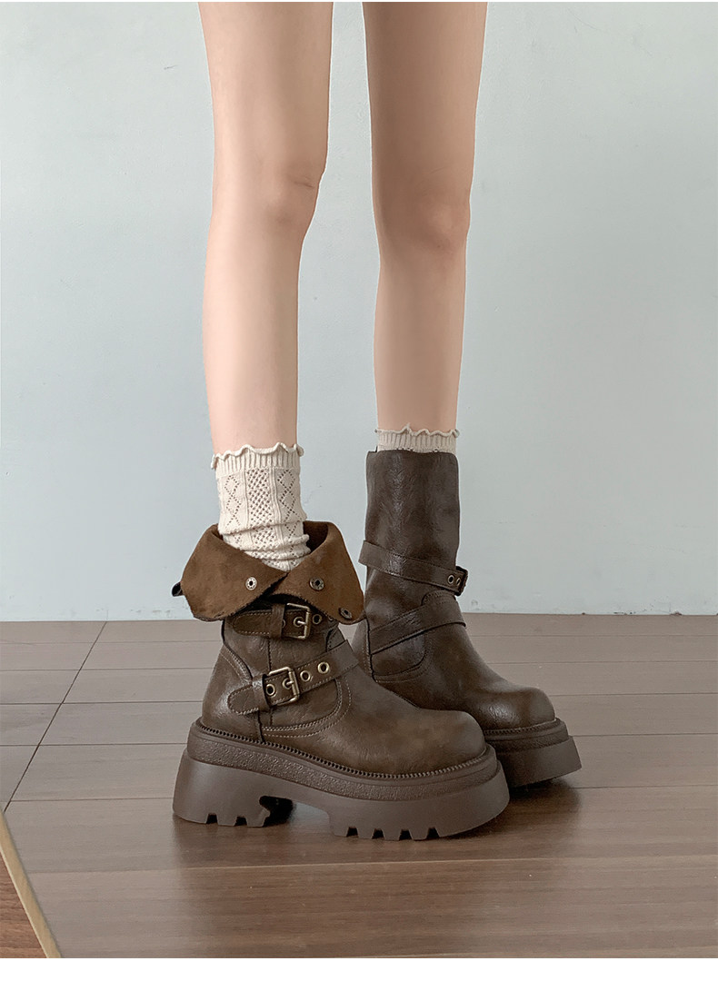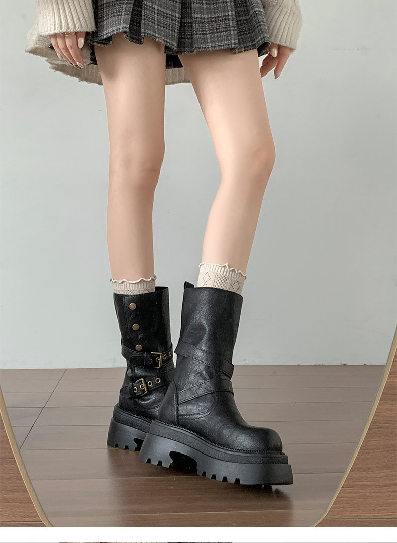 黑色英倫風粗跟厚底馬丁靴女款2026新款秋冬小個子增高顯瘦短靴子