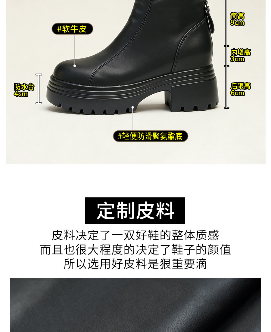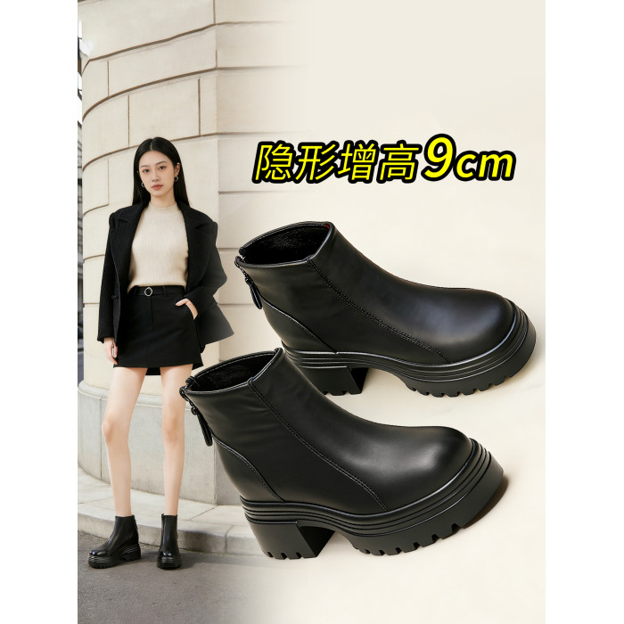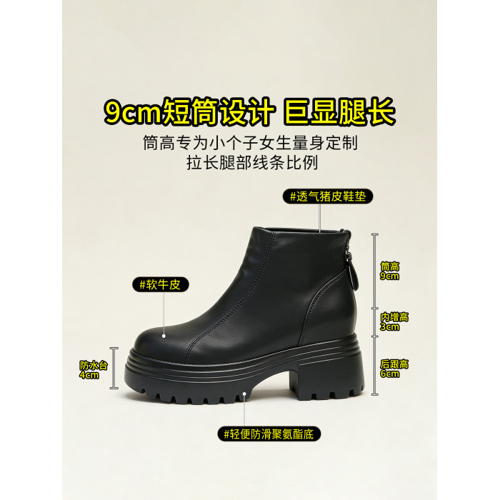 內增高短靴厚底鞋絕美高跟粗跟瘦瘦靴不累腳小個子時尚靴子女鞋冬