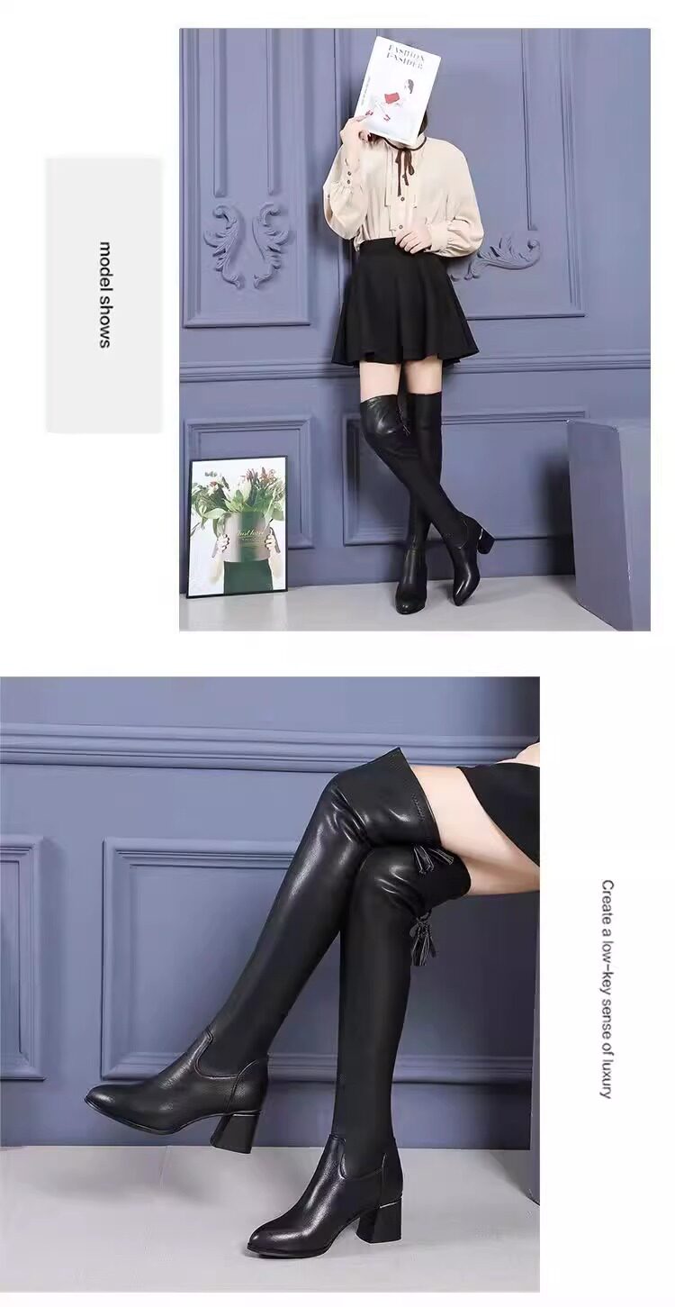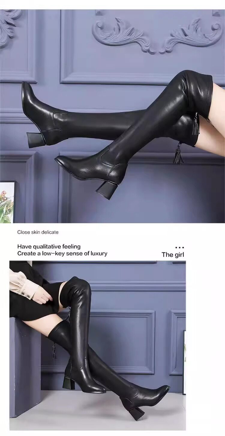 真軟皮長筒靴女2025秋冬季新款瘦瘦靴子高筒過膝彈力時尚顯瘦長靴