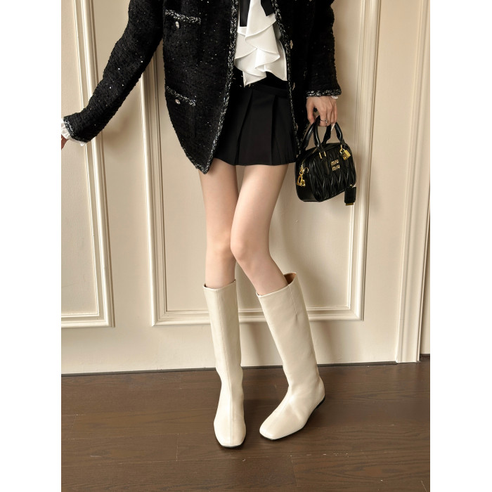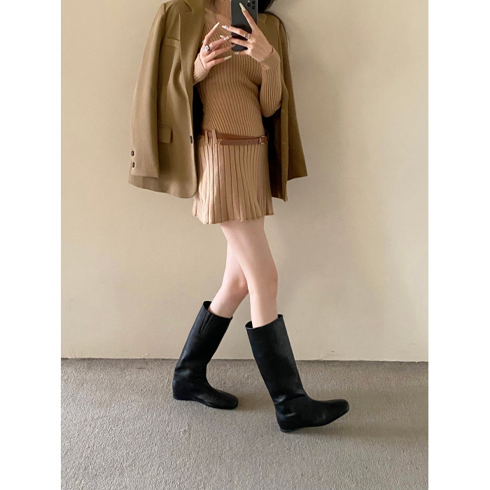 2026早春新款直筒騎士靴方頭內增高4cm不過膝高筒長靴西部牛仔靴