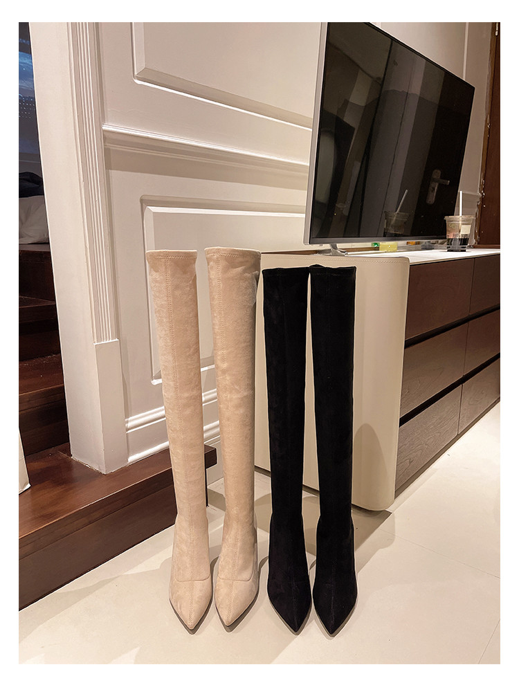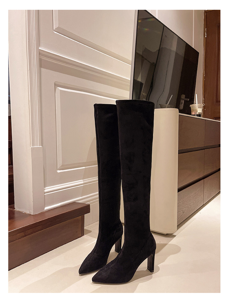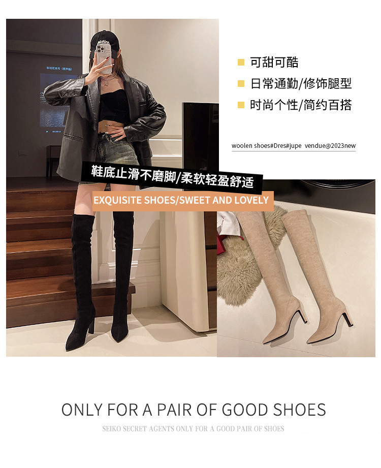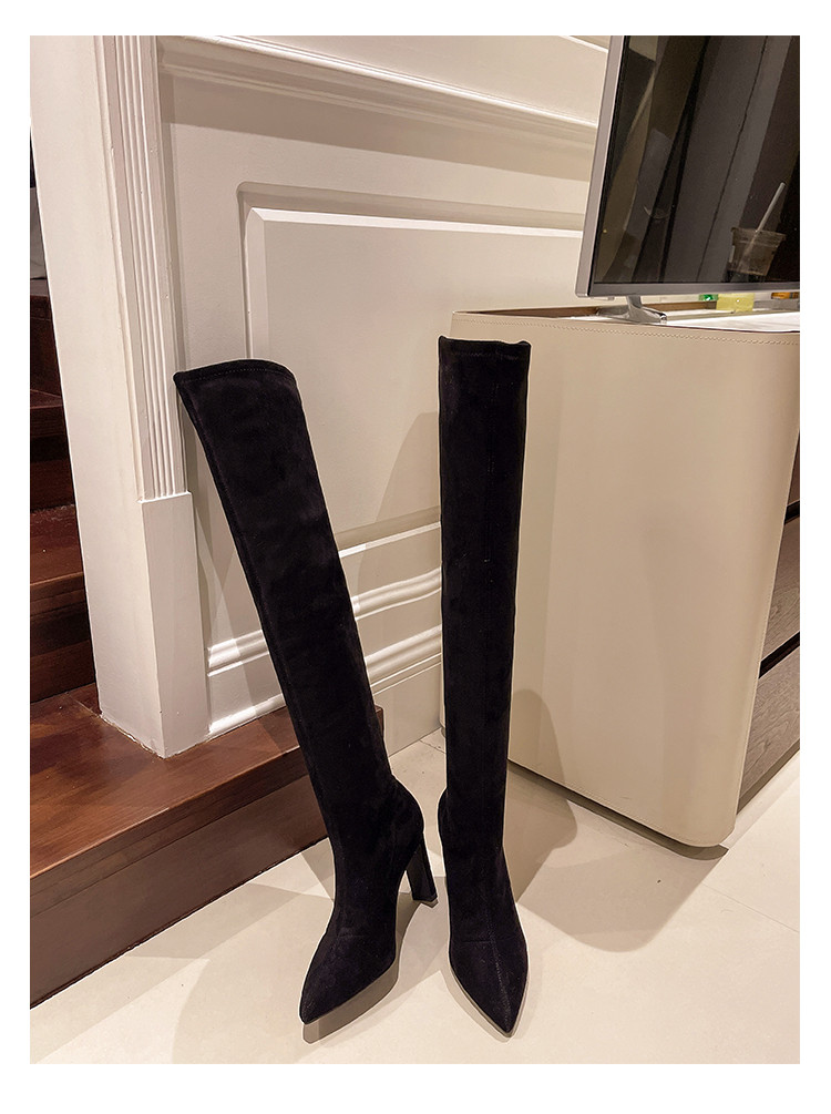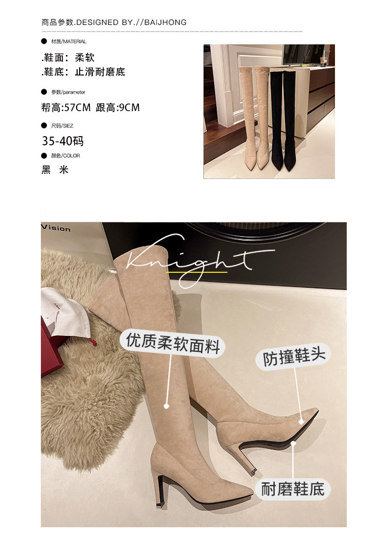 2026新款秋冬顯瘦黑色過膝長靴女彈力瘦瘦靴高筒靴長筒尖頭高跟鞋