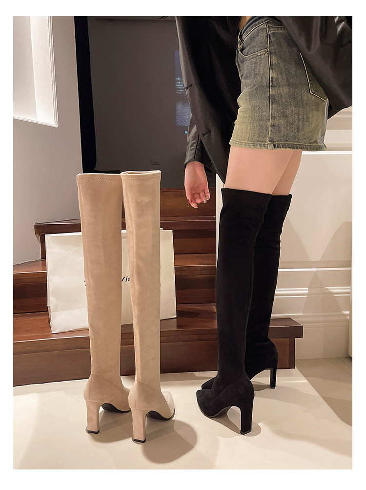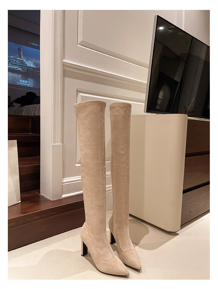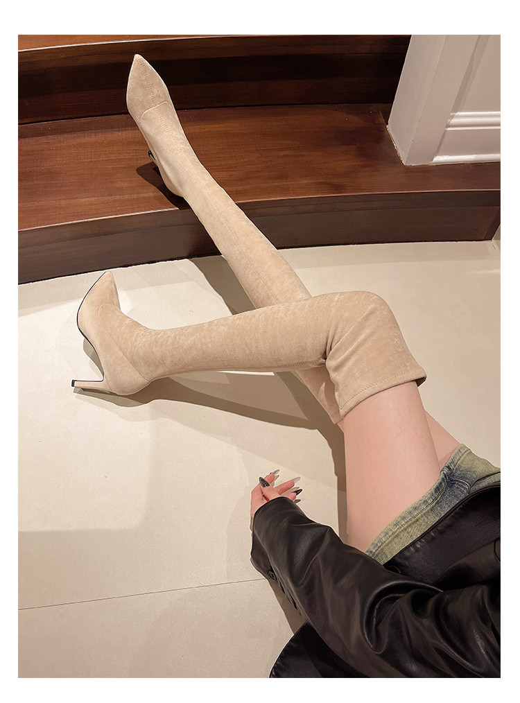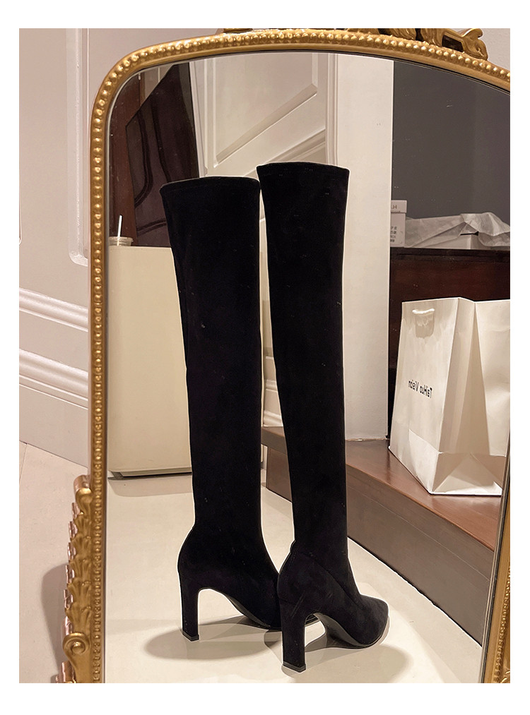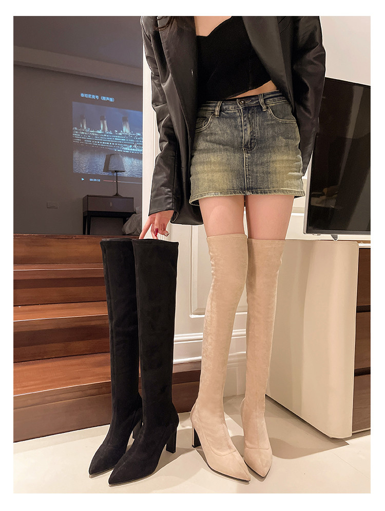 2026新款秋冬顯瘦黑色過膝長靴女彈力瘦瘦靴高筒靴長筒尖頭高跟鞋