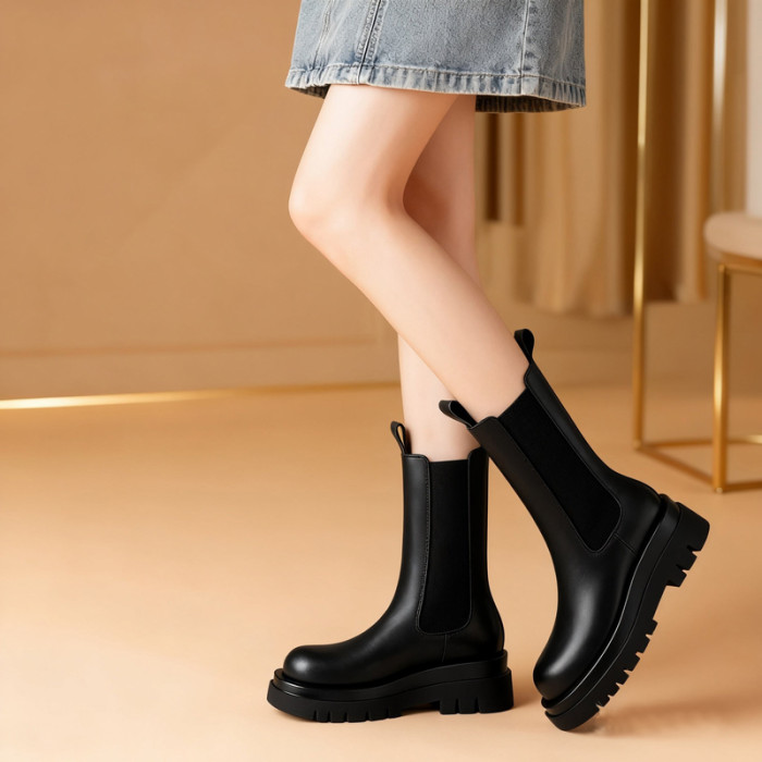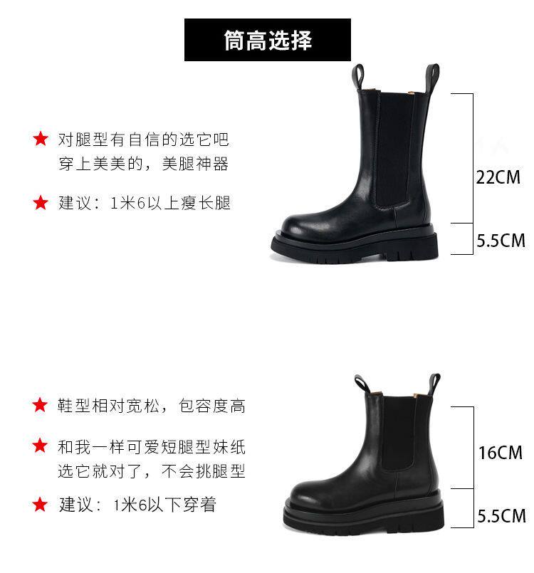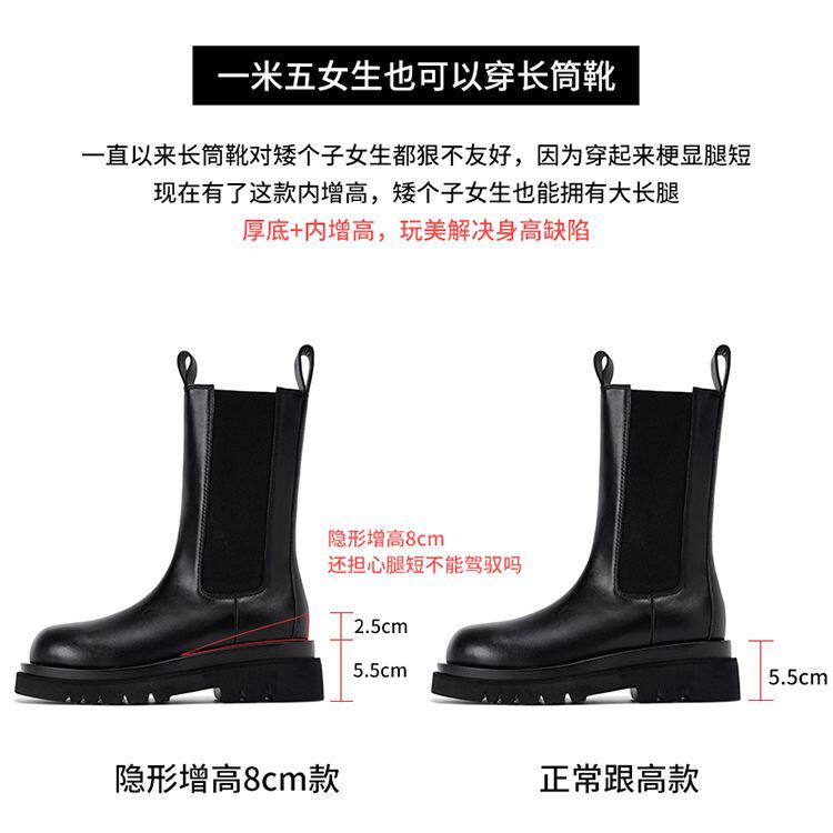 全牛皮mona內增高馬丁靴女英倫風真皮厚底顯瘦菸筒靴切爾西短靴子