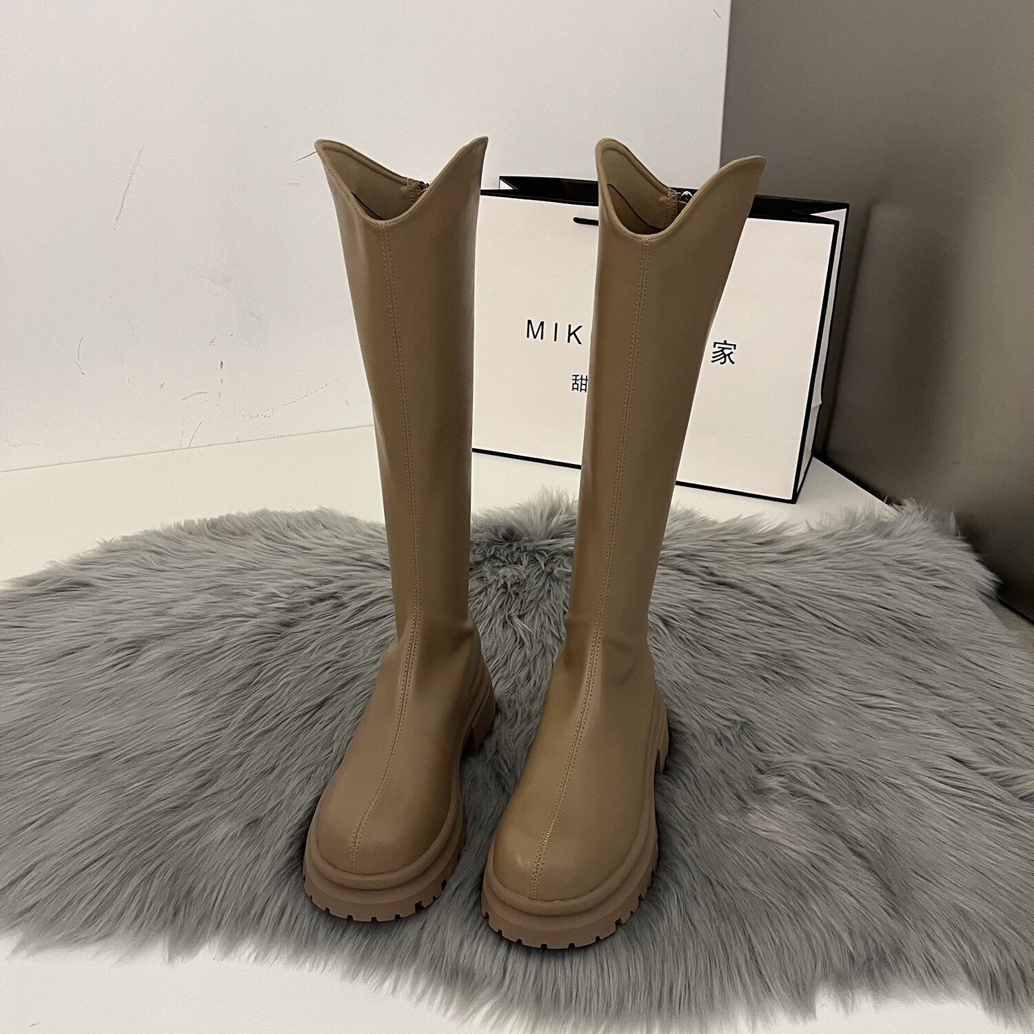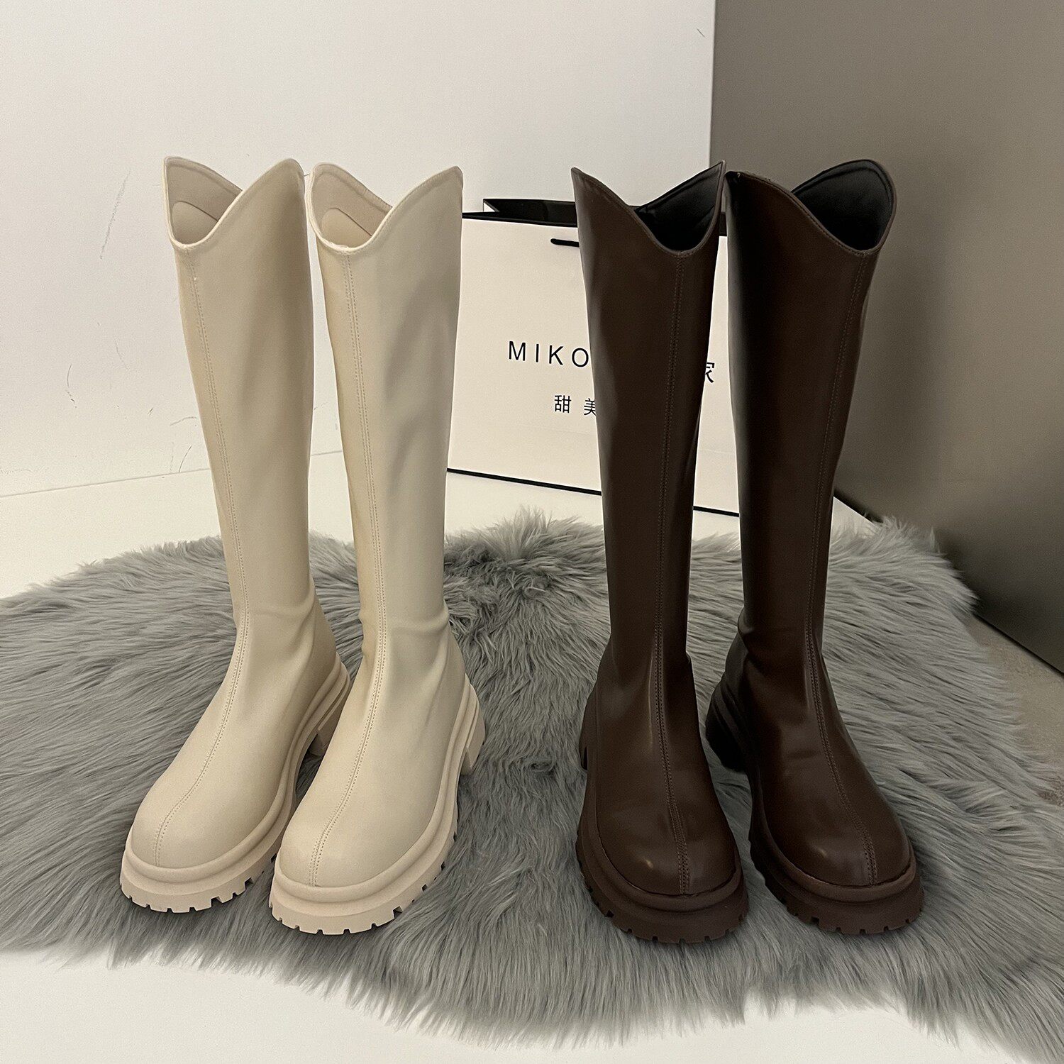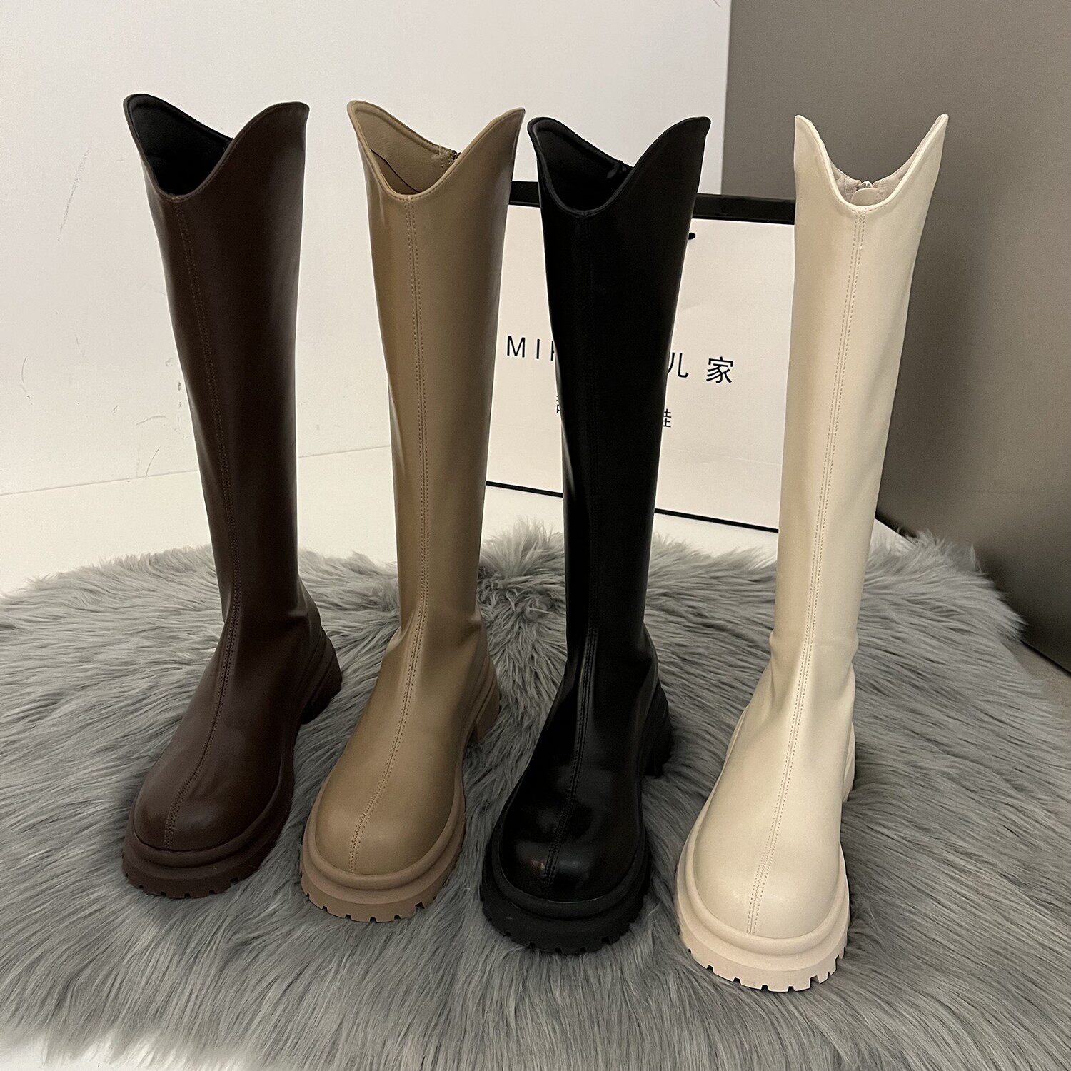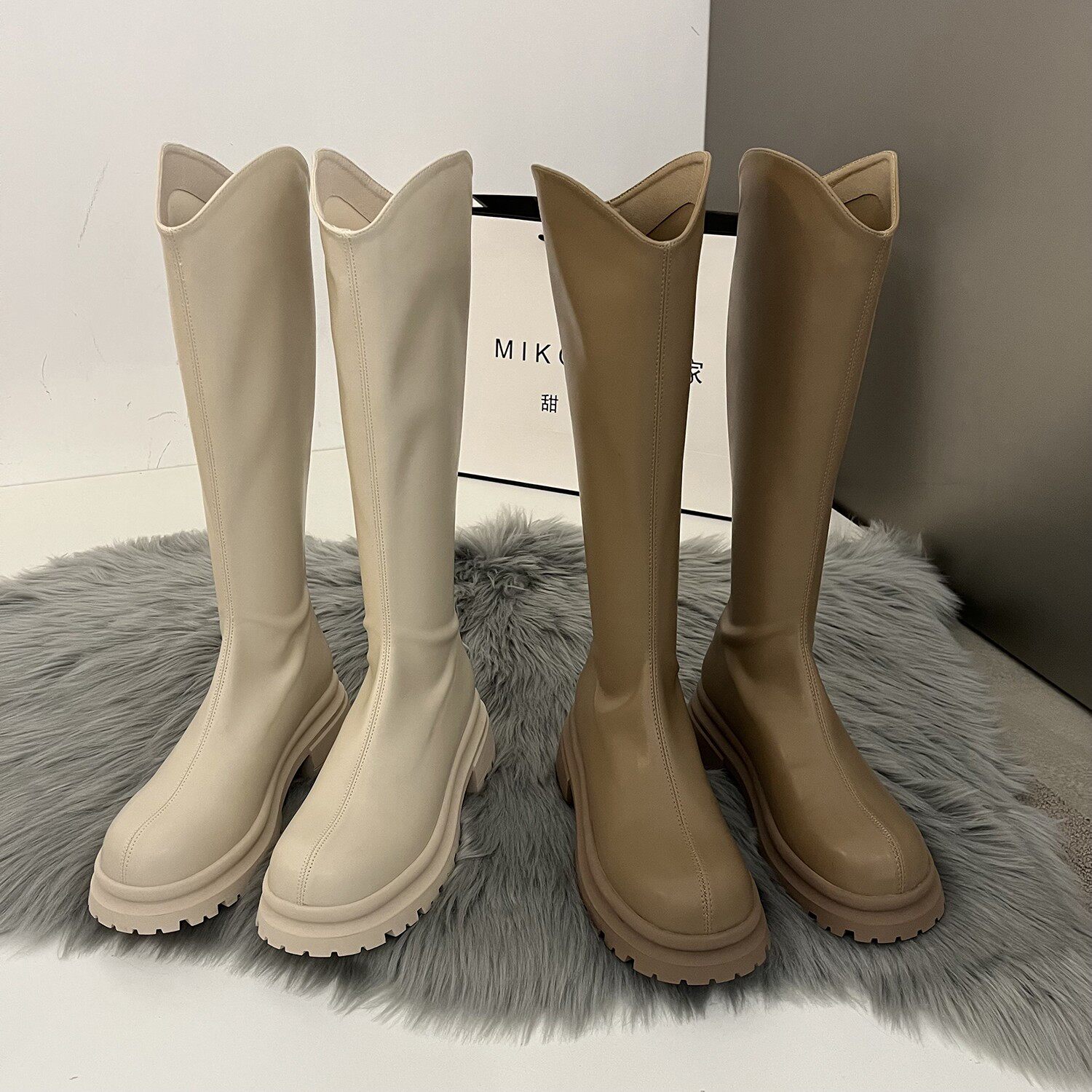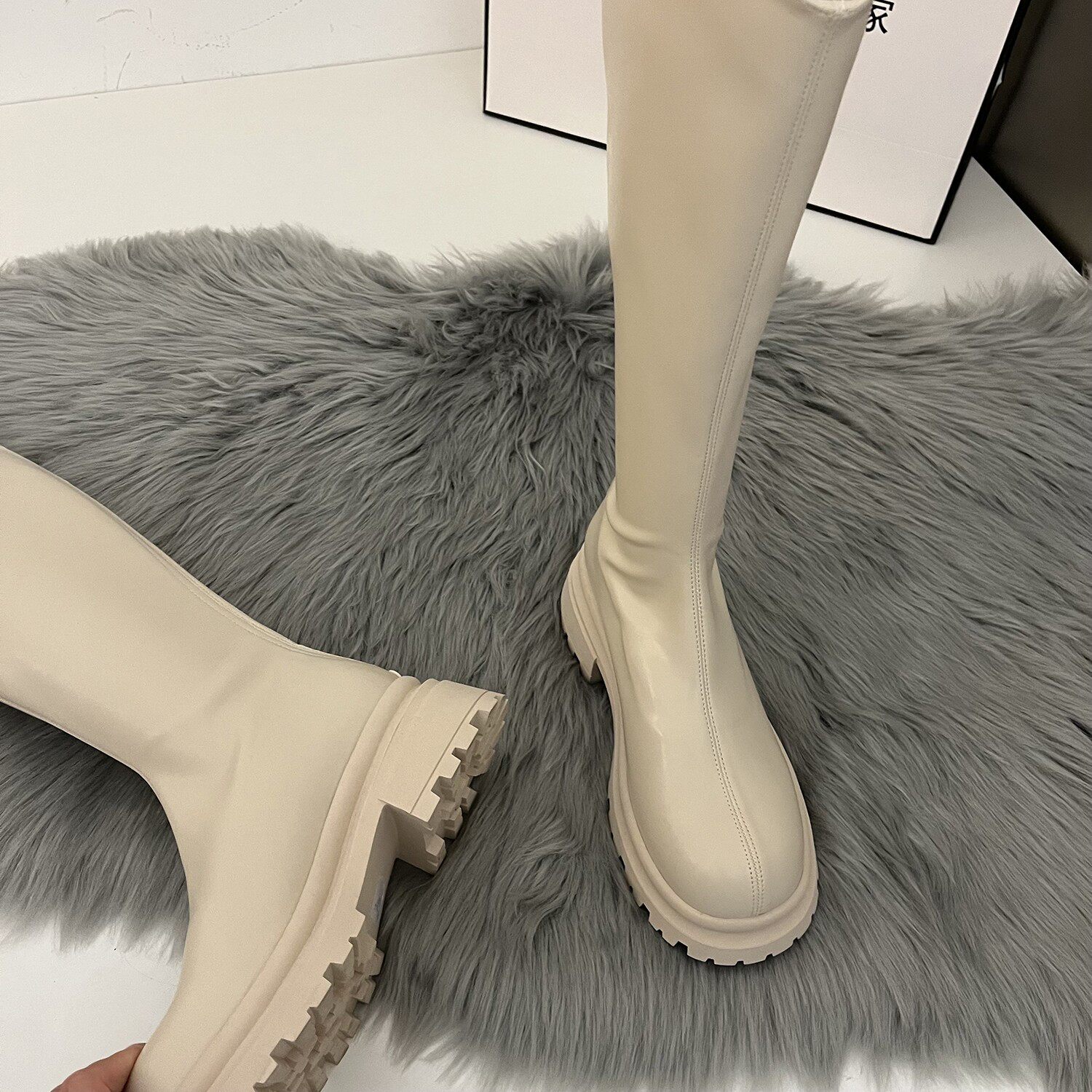 厚底馬丁靴鞋子女爆款2026年新款白色高筒騎士靴INS潮瘦瘦長筒靴