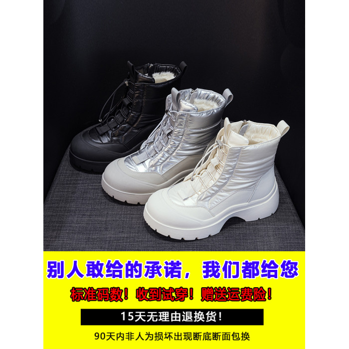 厚底羽絨雪地靴女2025新款冬季保暖東北加絨加厚防水防滑高幫棉鞋
