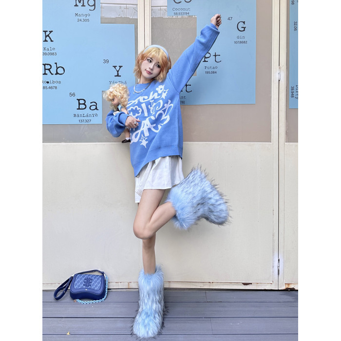 gal系冬季新款可愛小衆澁穀辣妹毛毛靴子保暖長筒靴個性雪地靴女