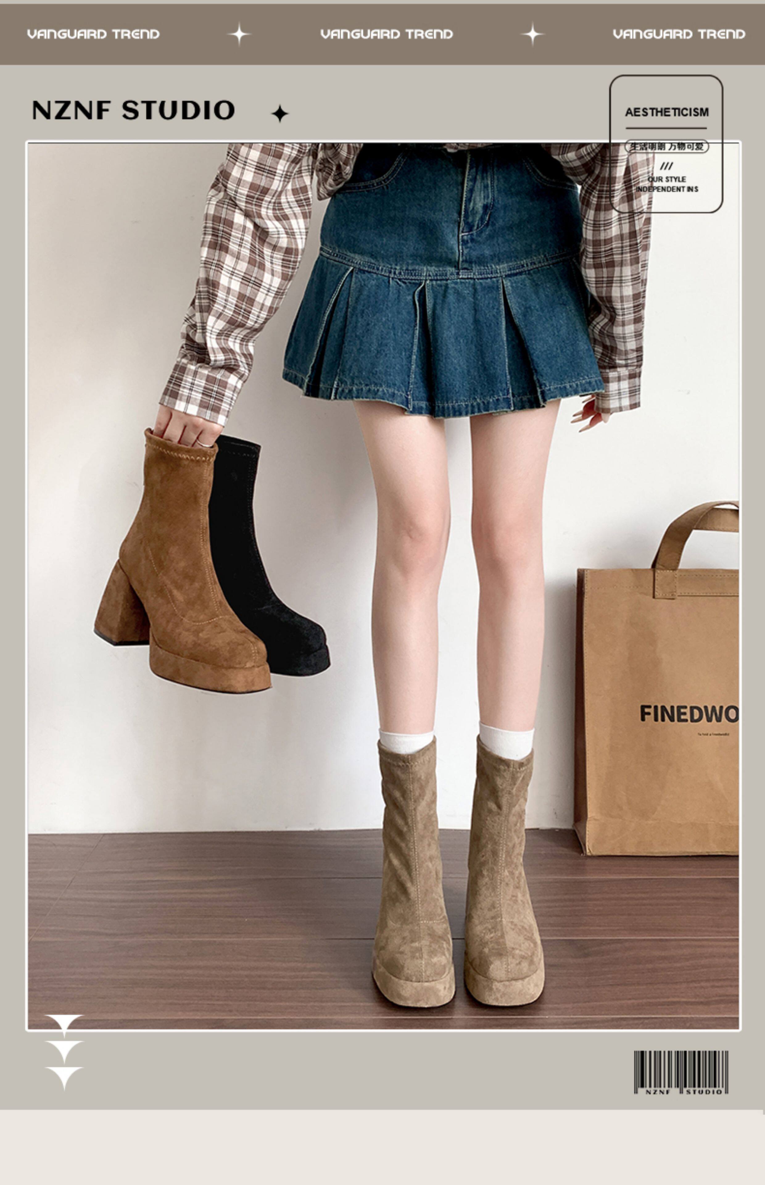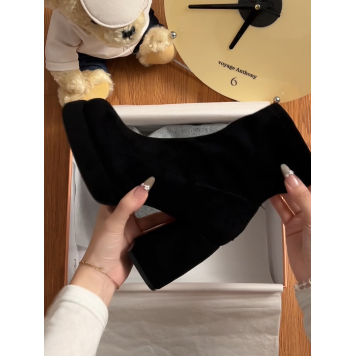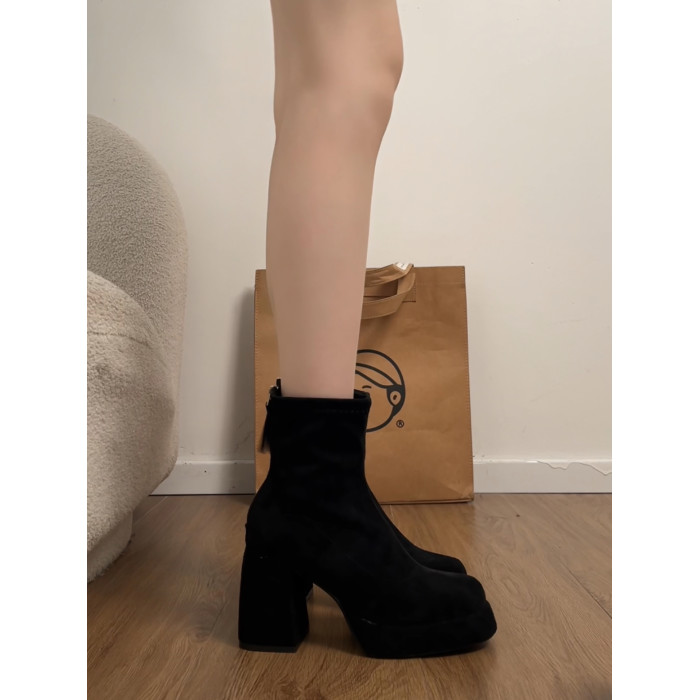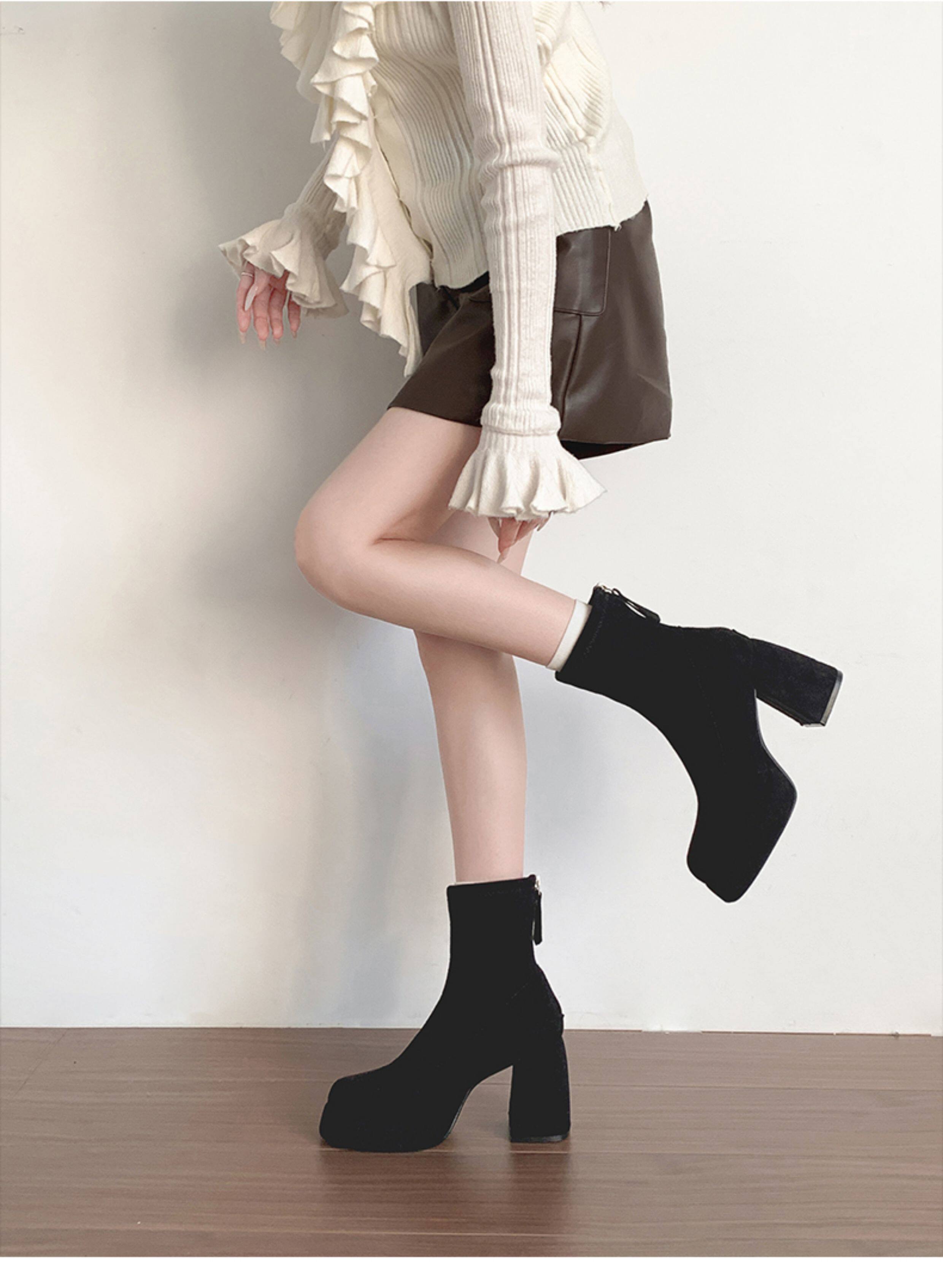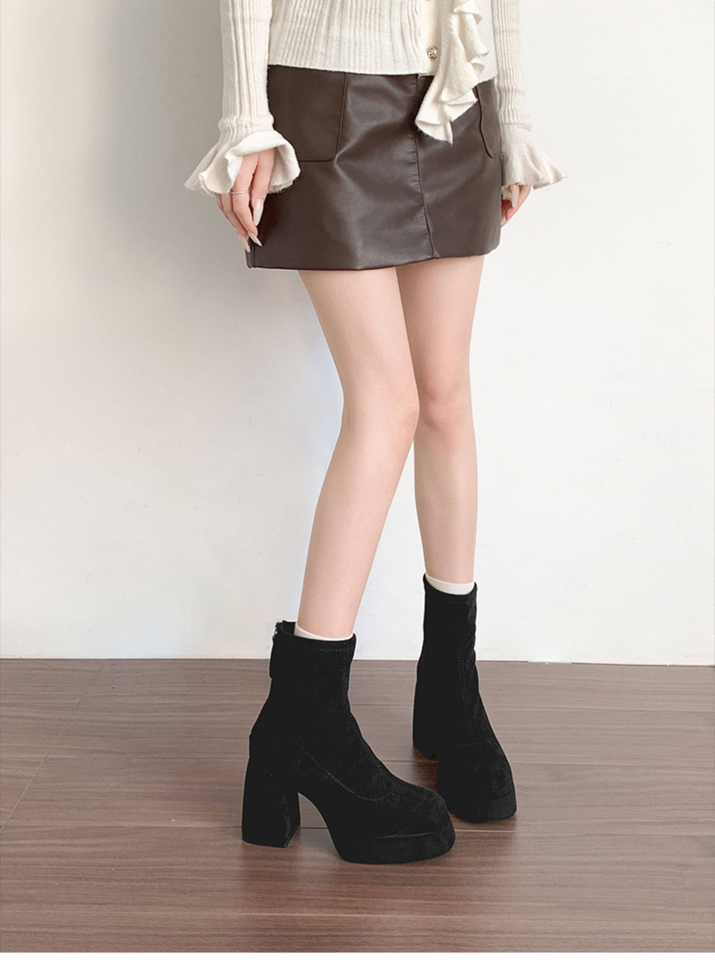 黑色英倫風增高厚底粗高跟馬丁靴女款2025新款秋冬復古顯瘦短靴子