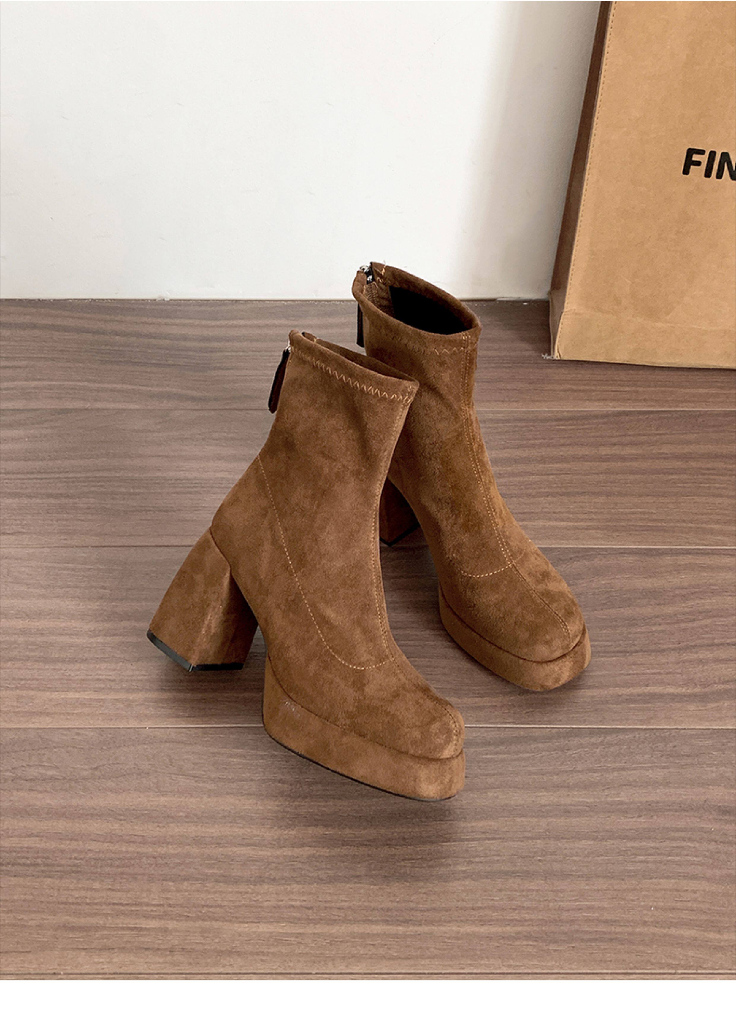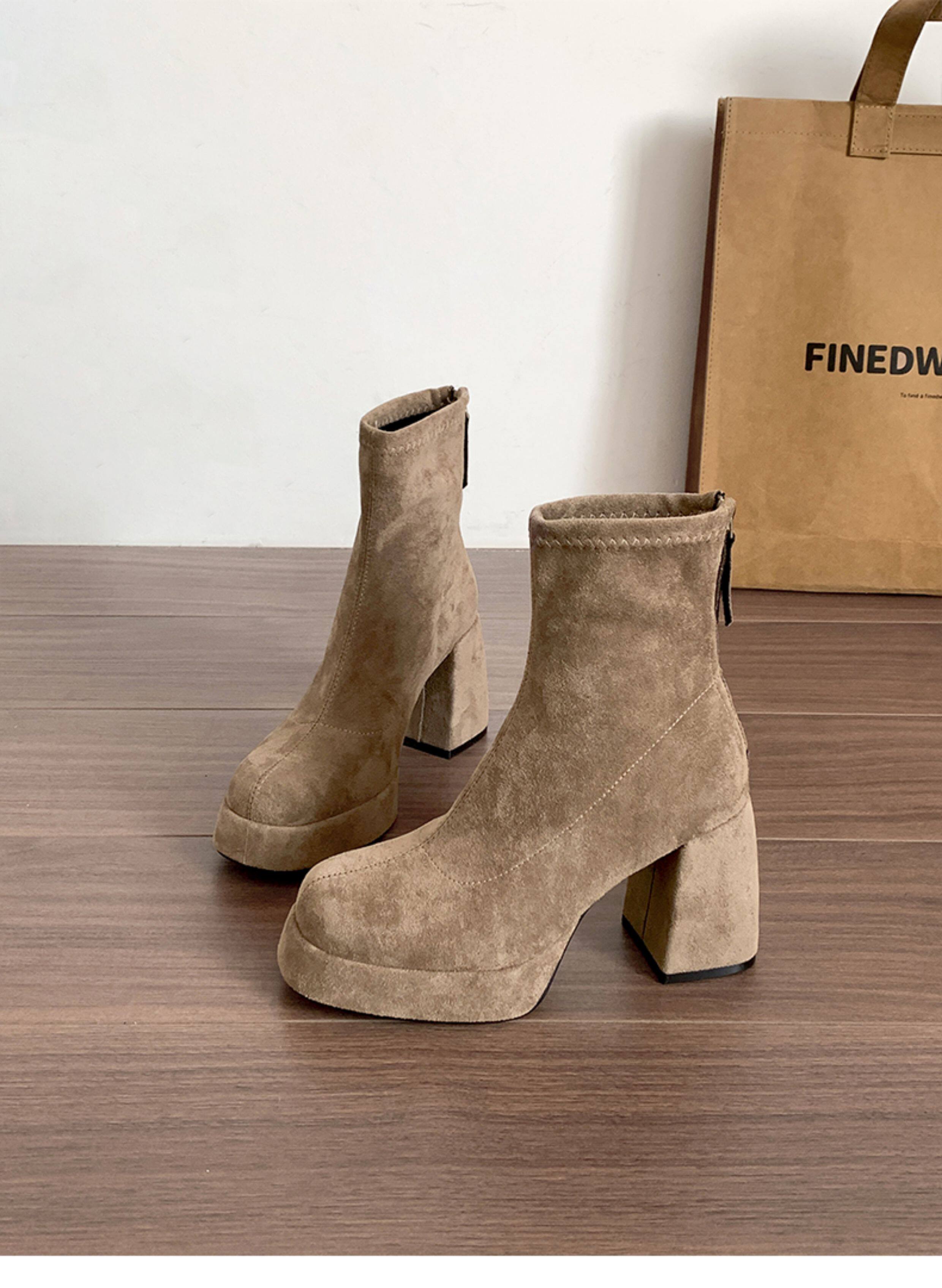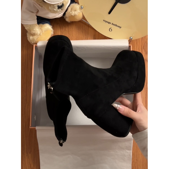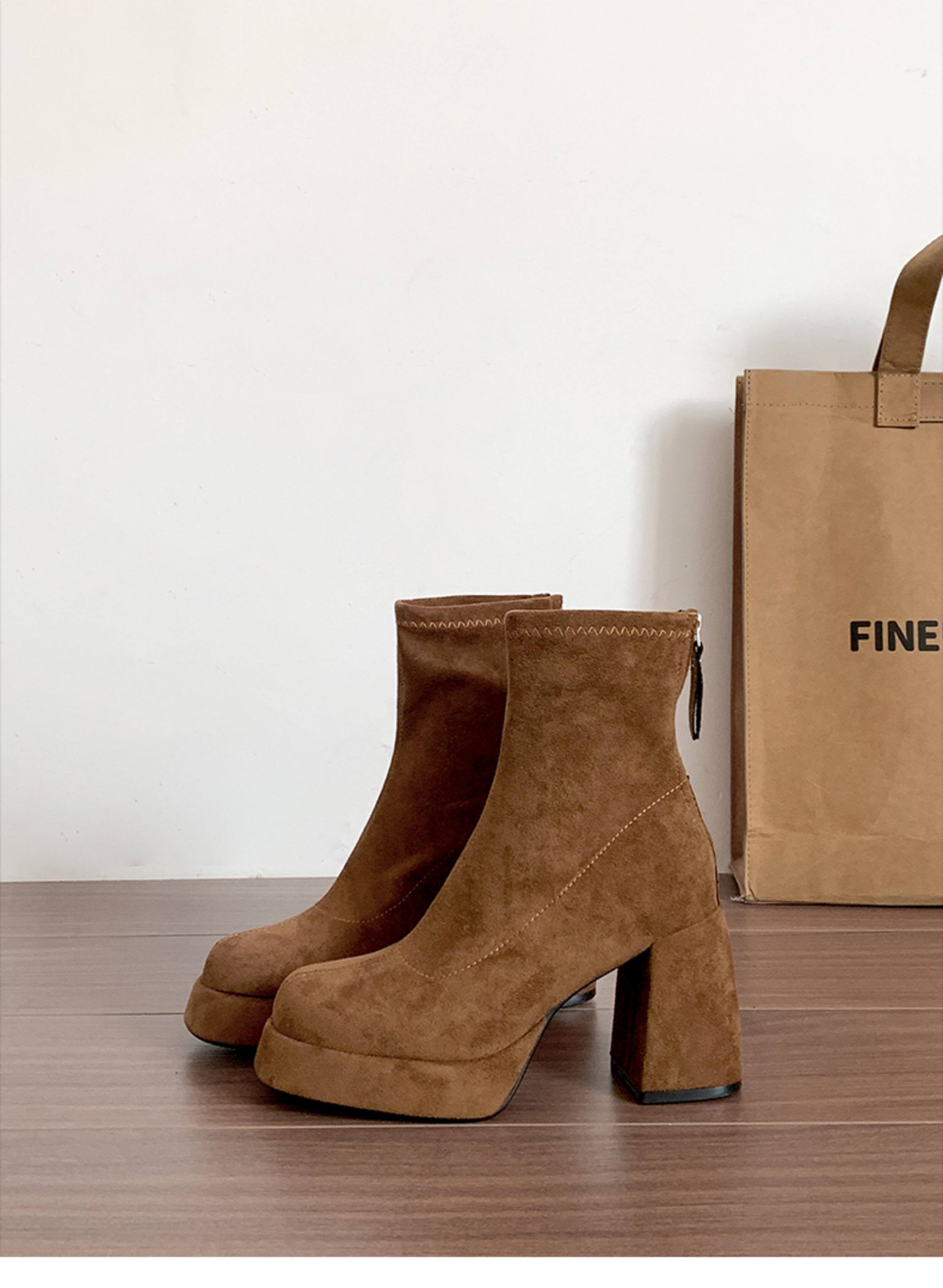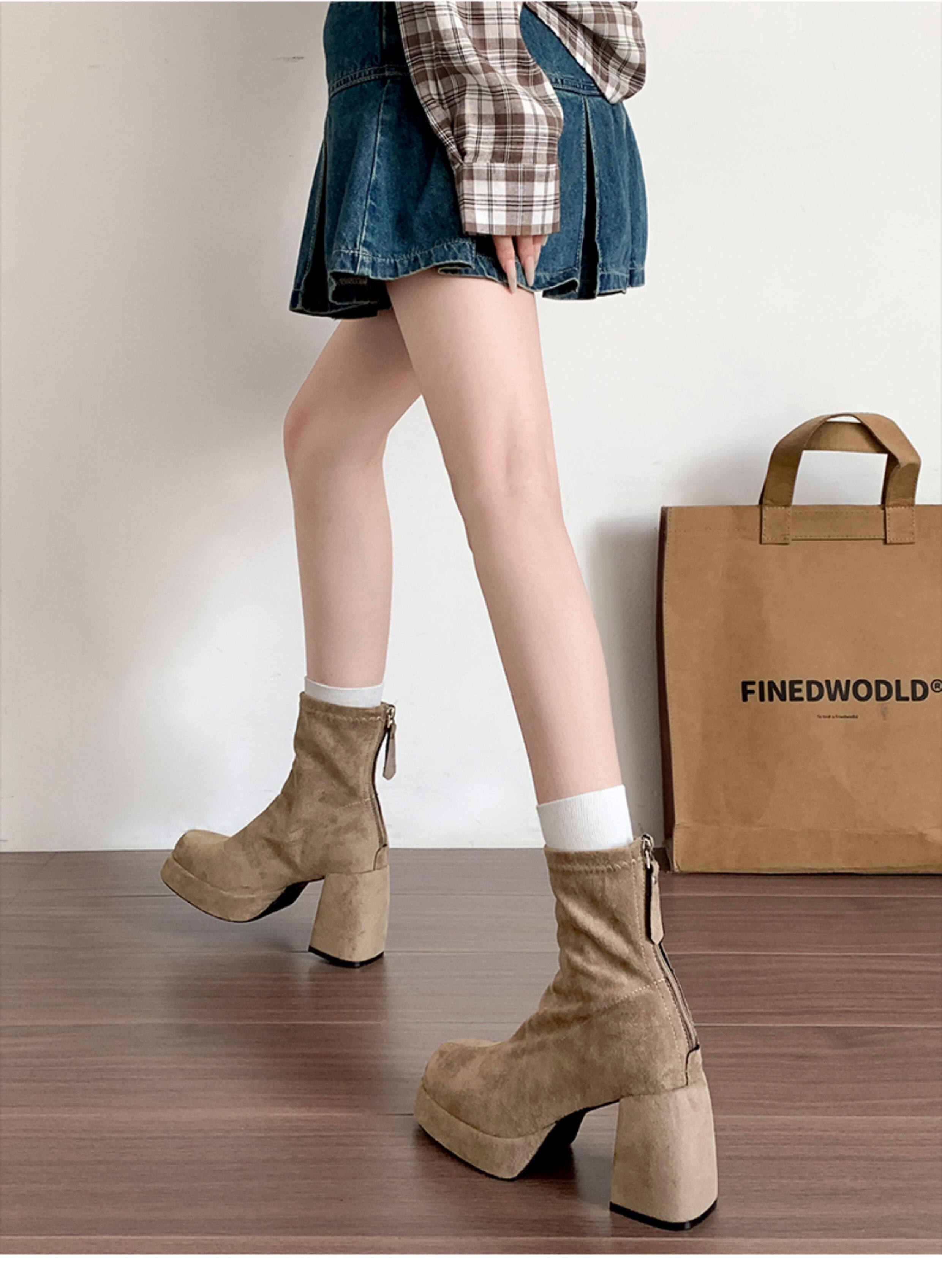 黑色英倫風增高厚底粗高跟馬丁靴女款2025新款秋冬復古顯瘦短靴子